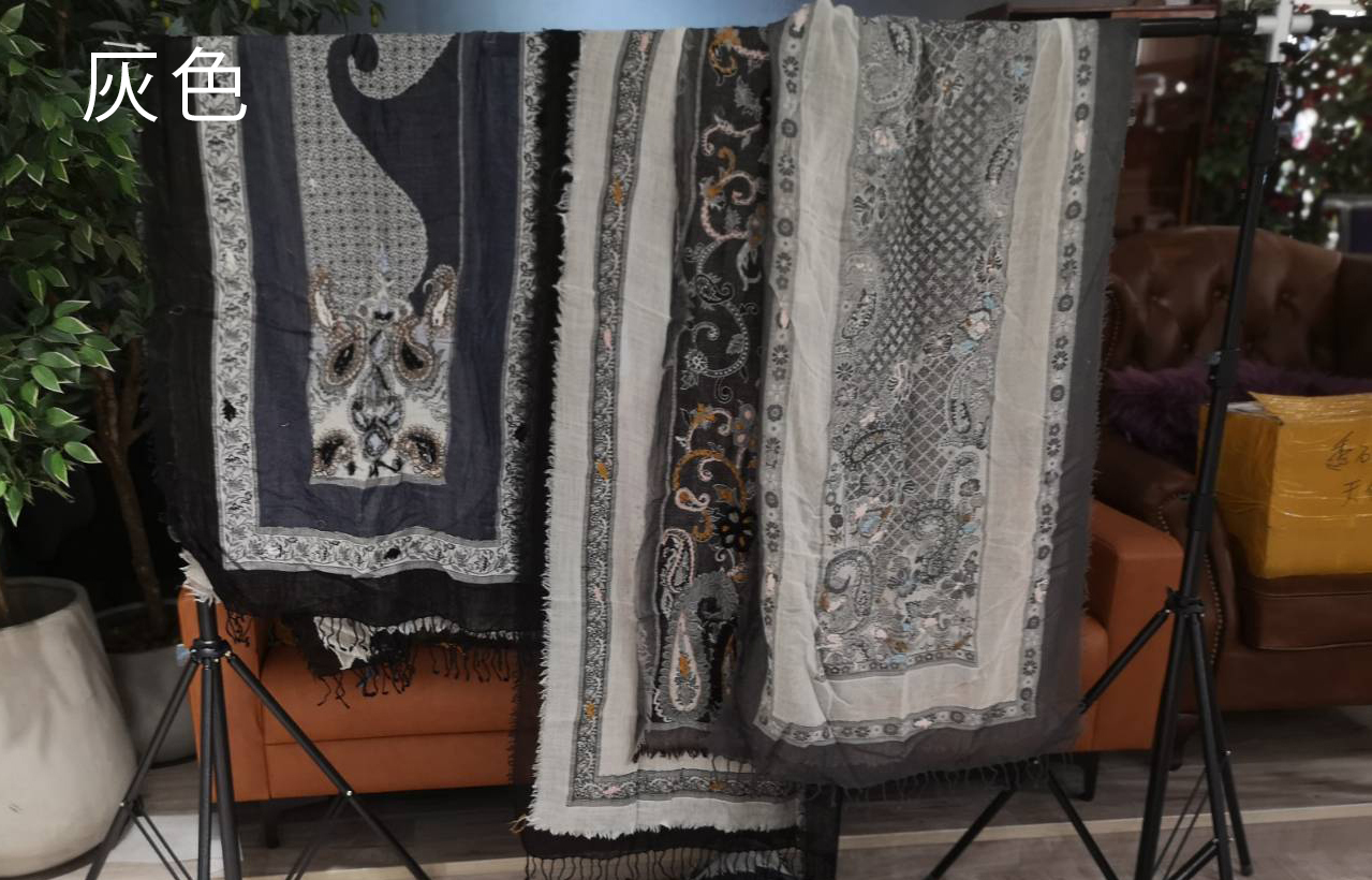 喀什米爾Cashmere手織水煮羊毛花巾