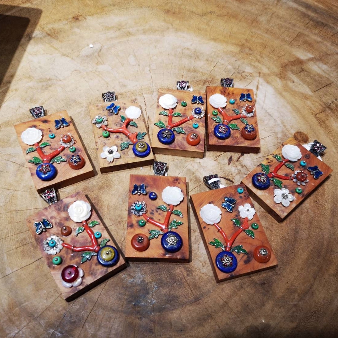 【材質】925銀、崖柏、貝殼、青金石、紅珊瑚…
