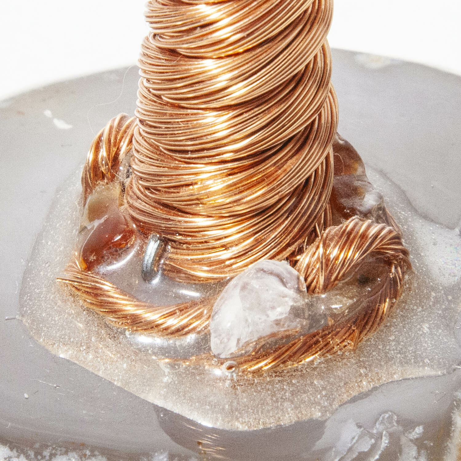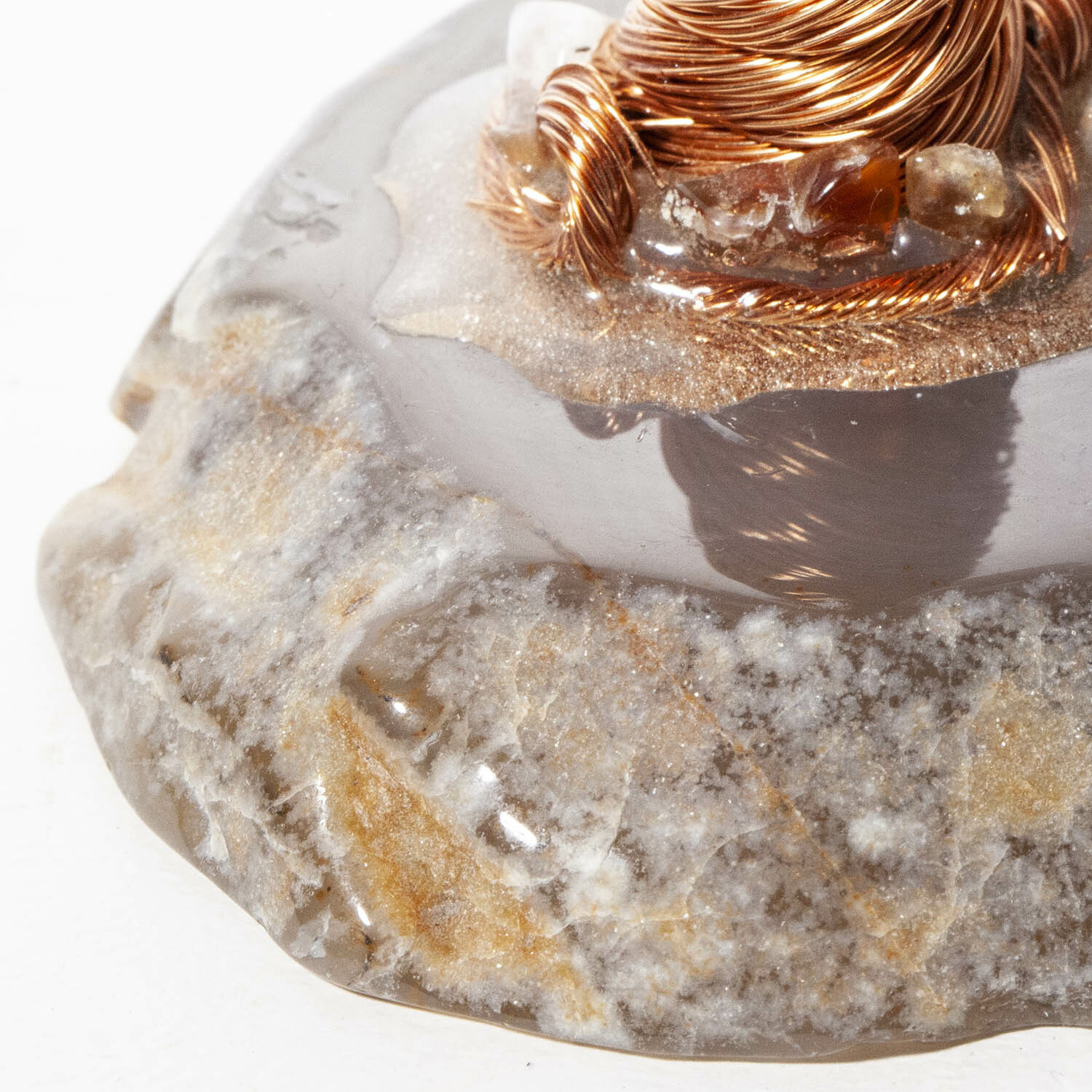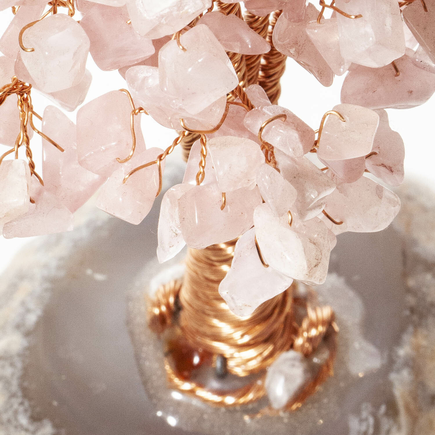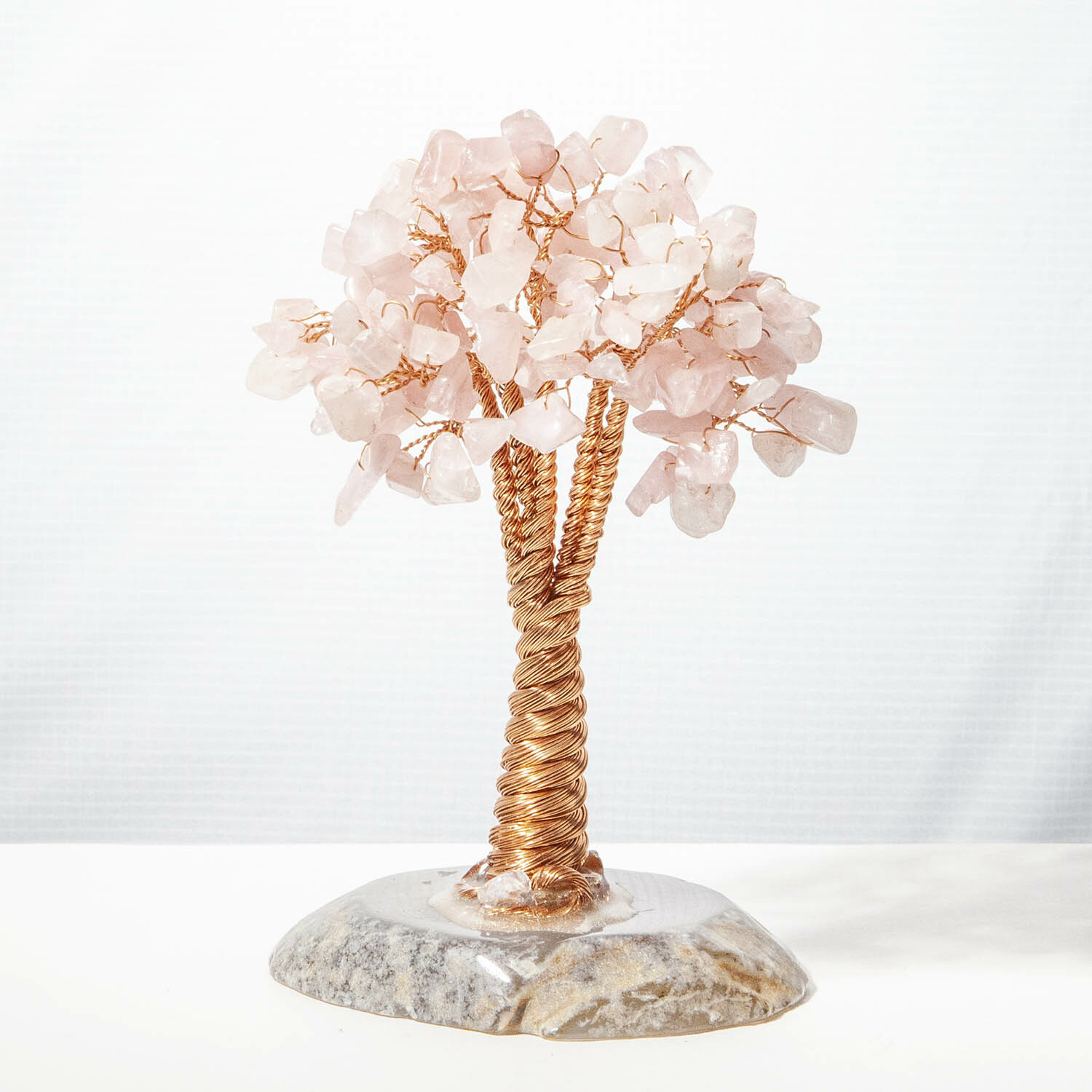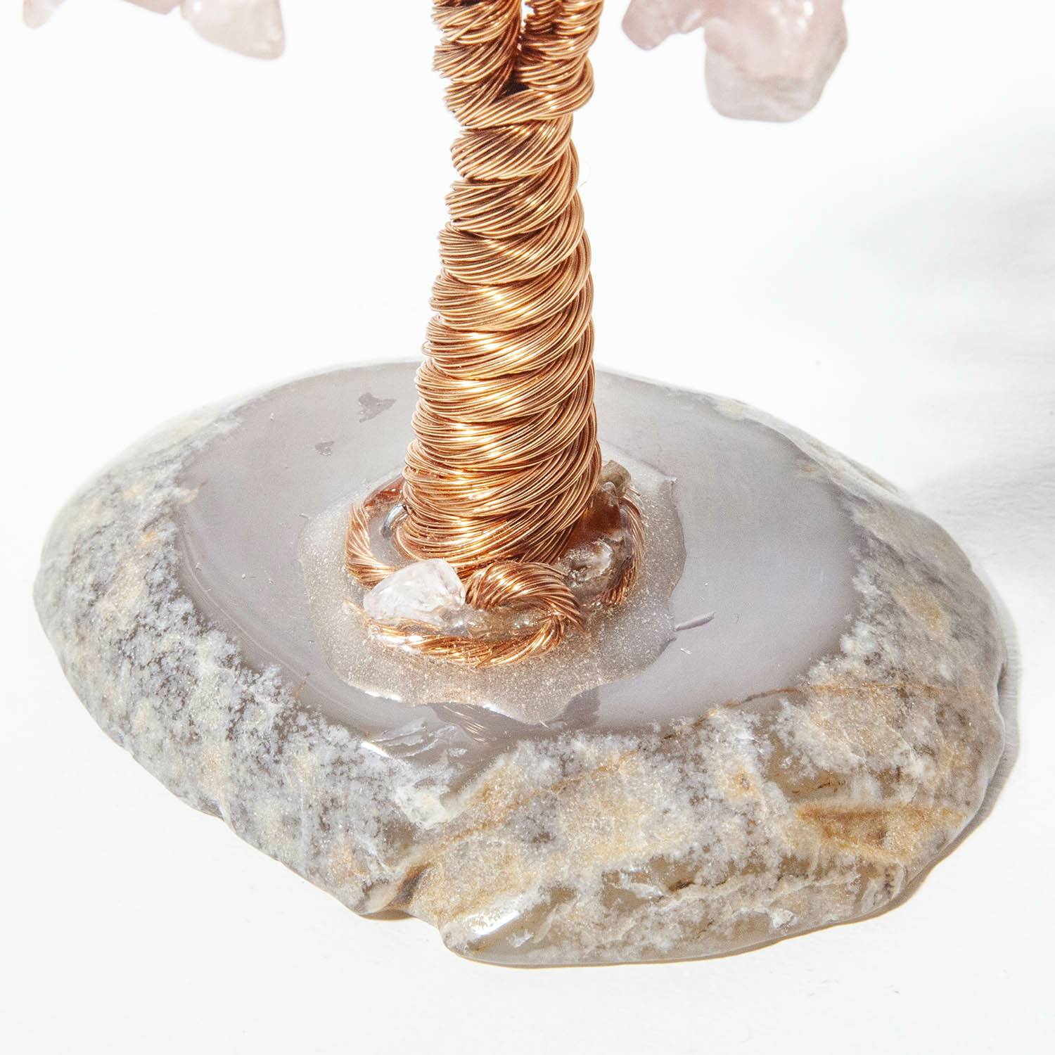 粉晶招財寶石樹,底座瑪瑙片鑲嵌