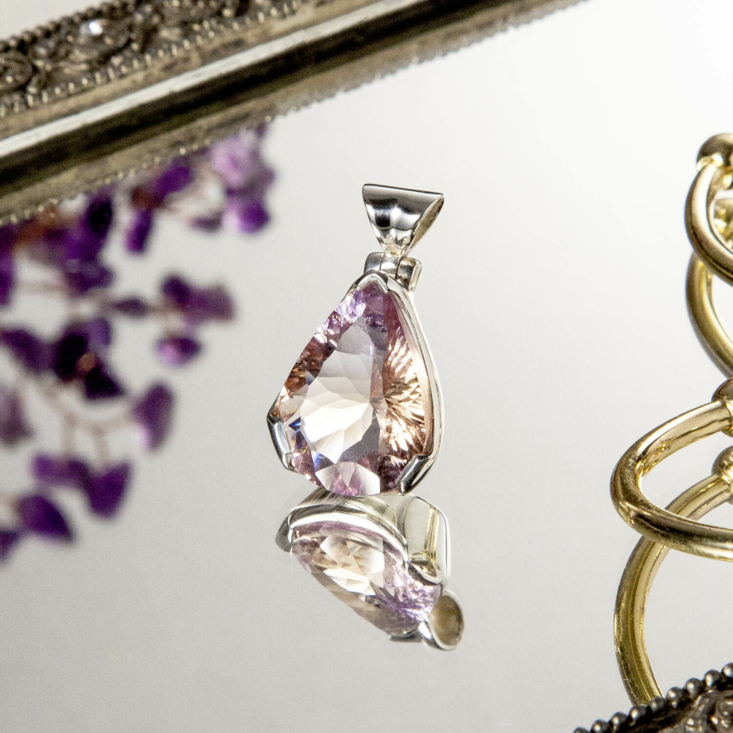 天然紫黃晶切割面鑲嵌墜飾