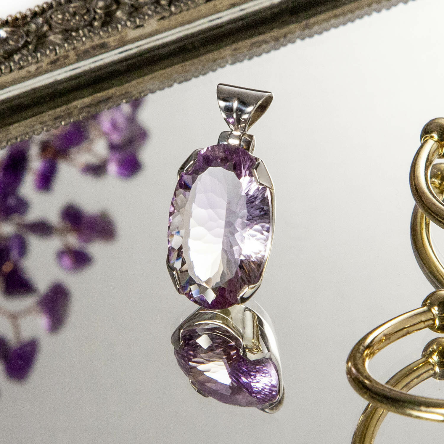 天然紫黃晶切割面鑲嵌墜飾
