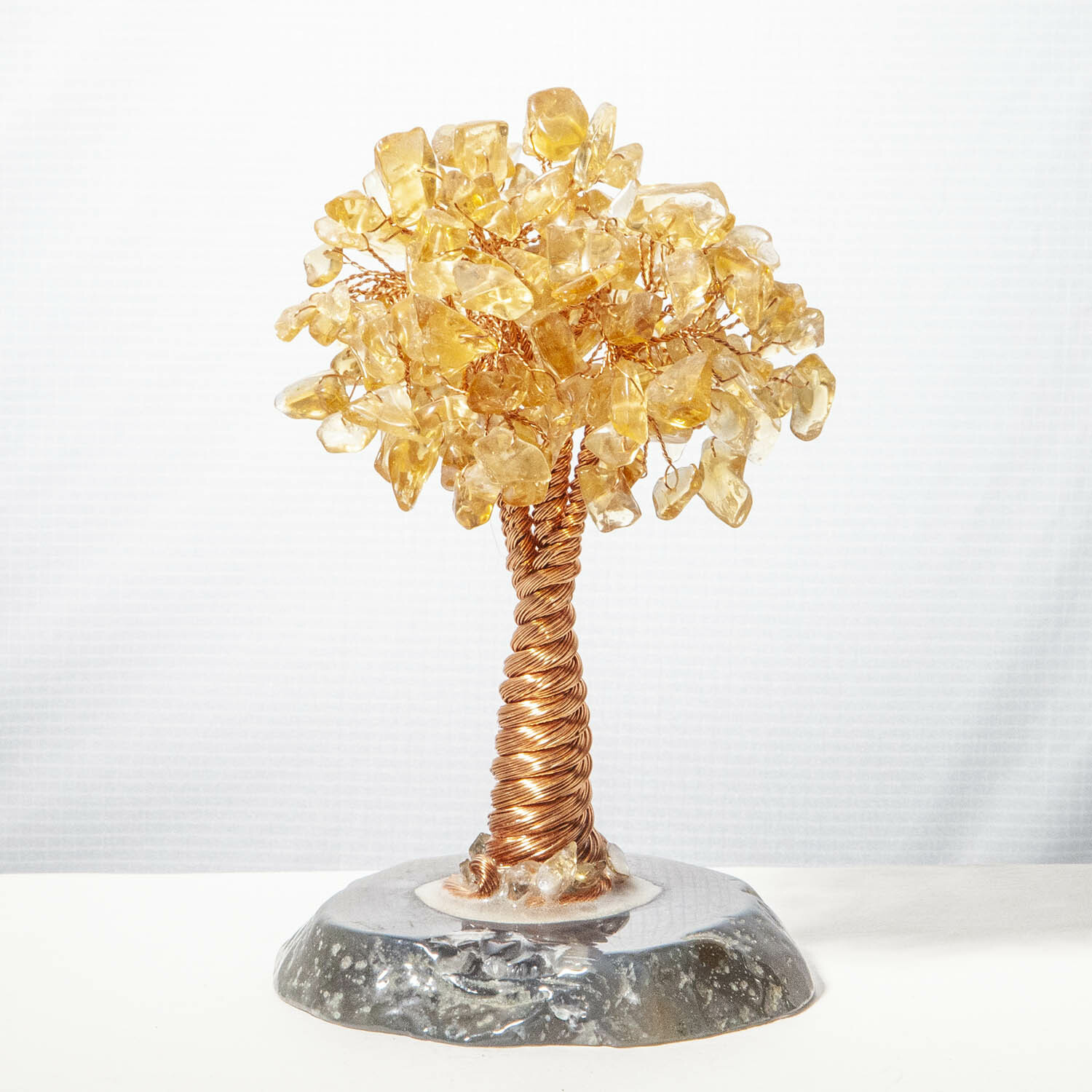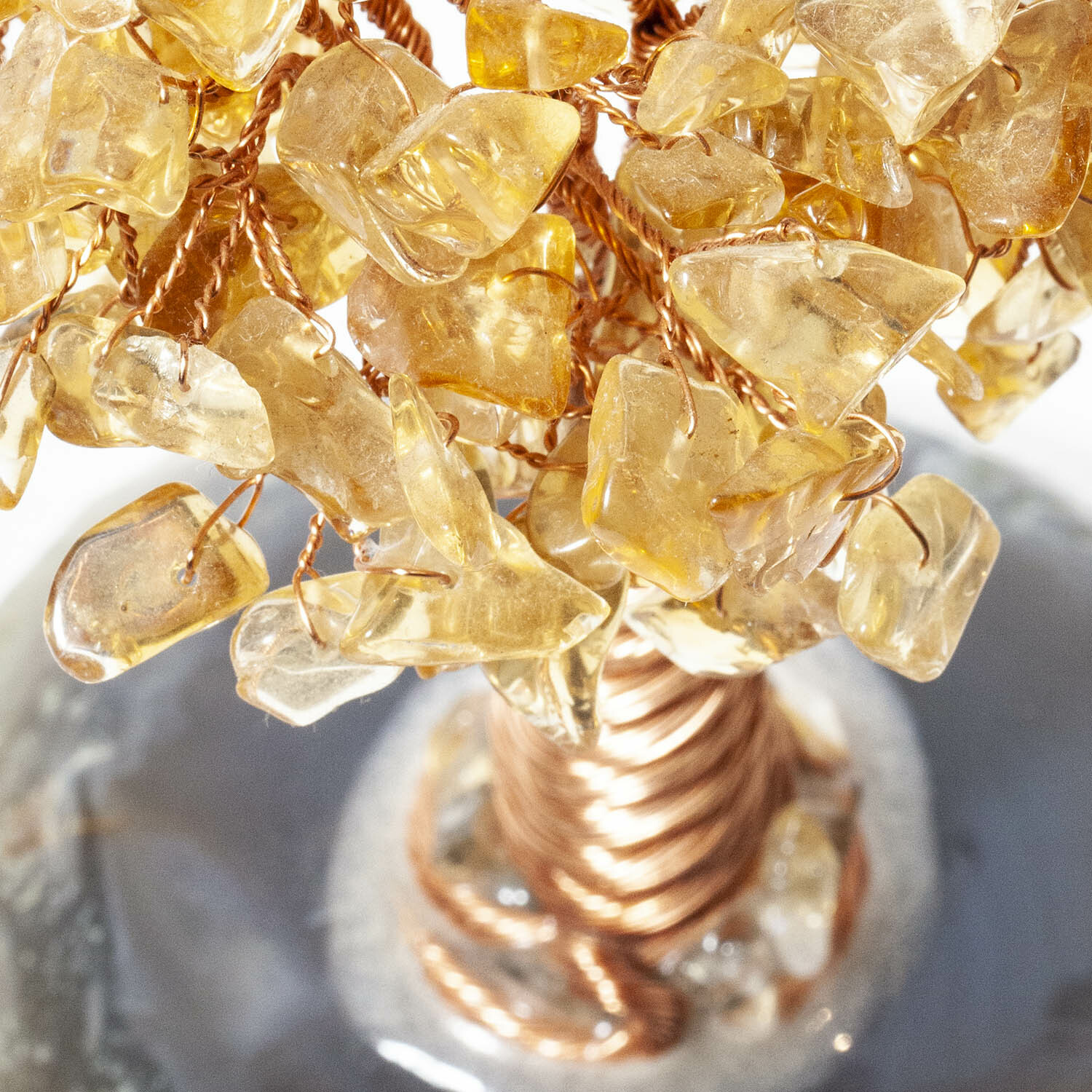 黃水晶招財寶石樹,底座瑪瑙片鑲嵌