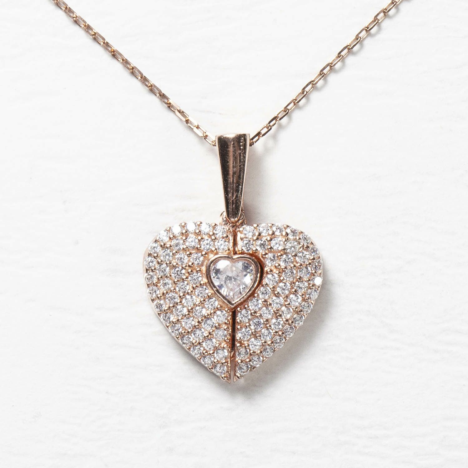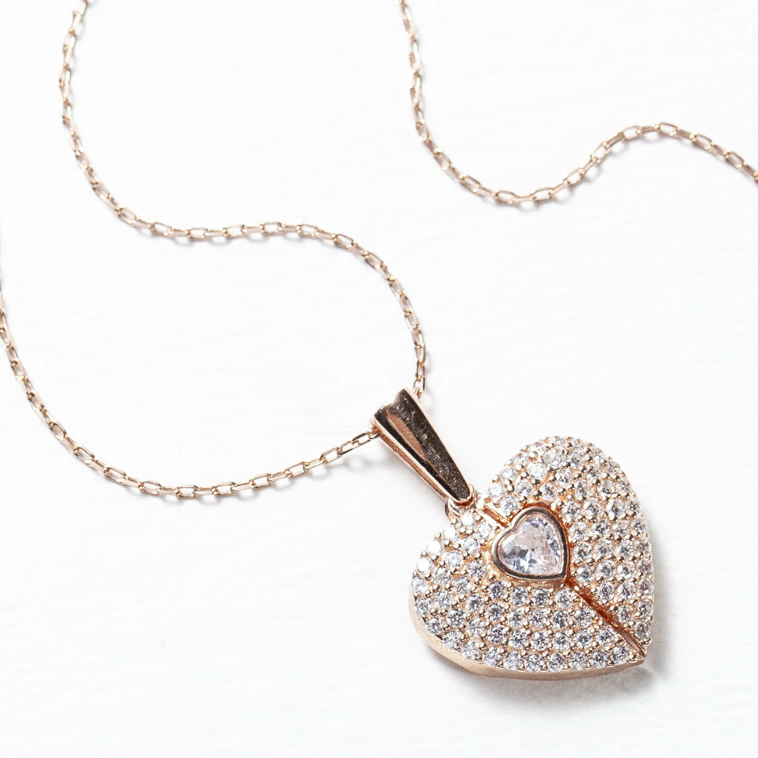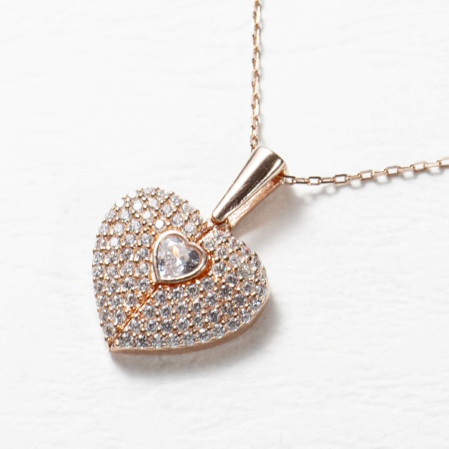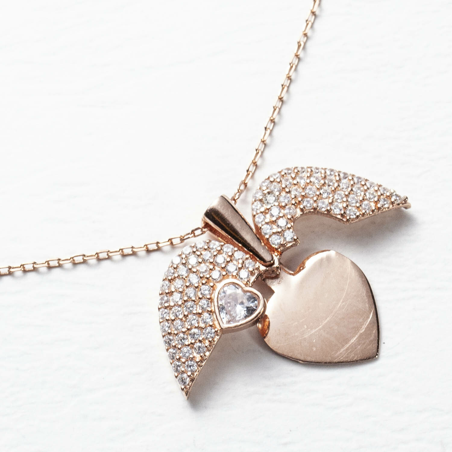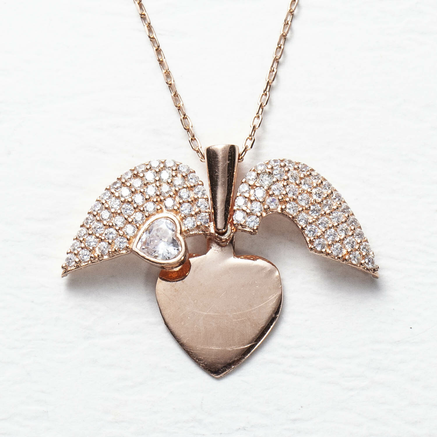 925銀愛心翅膀白水鑽銀鍍玫瑰金鎖骨鍊