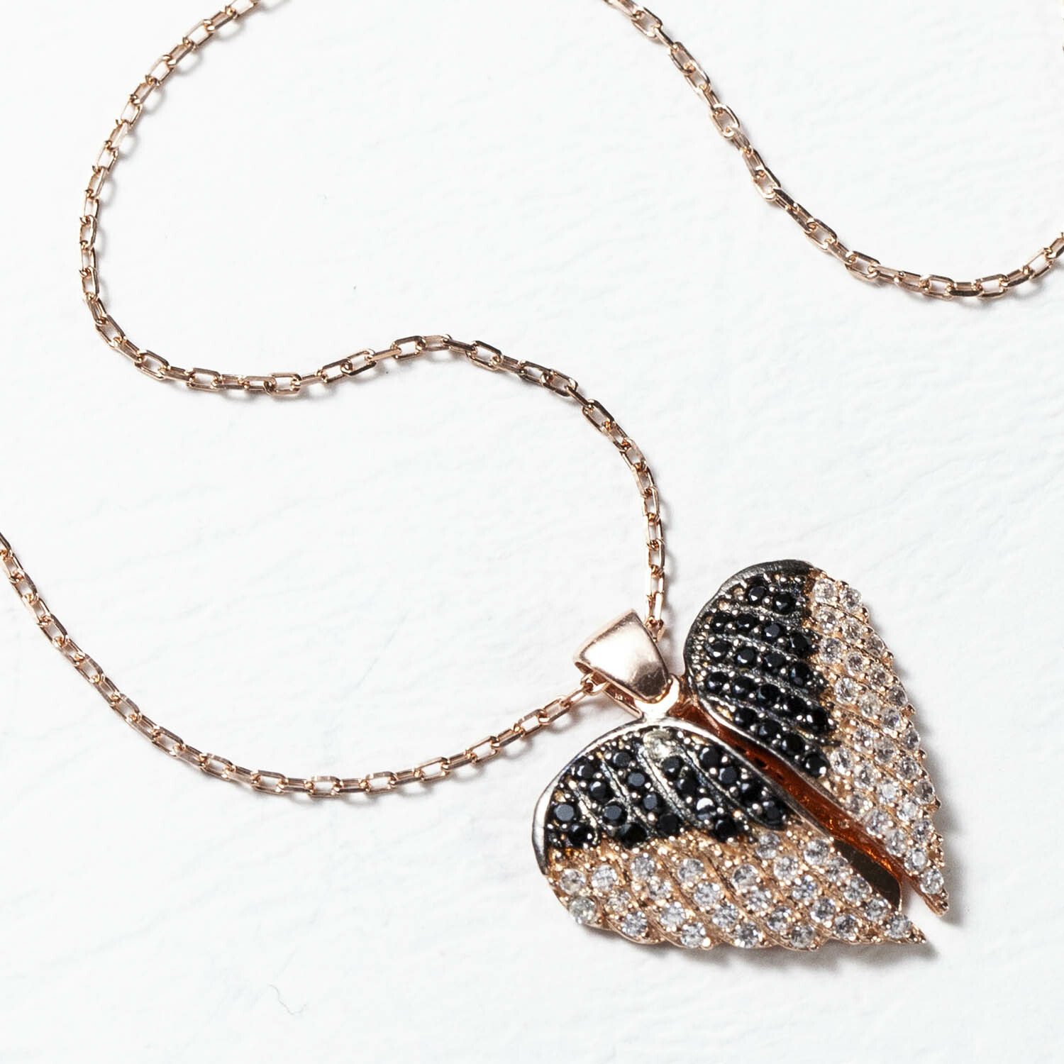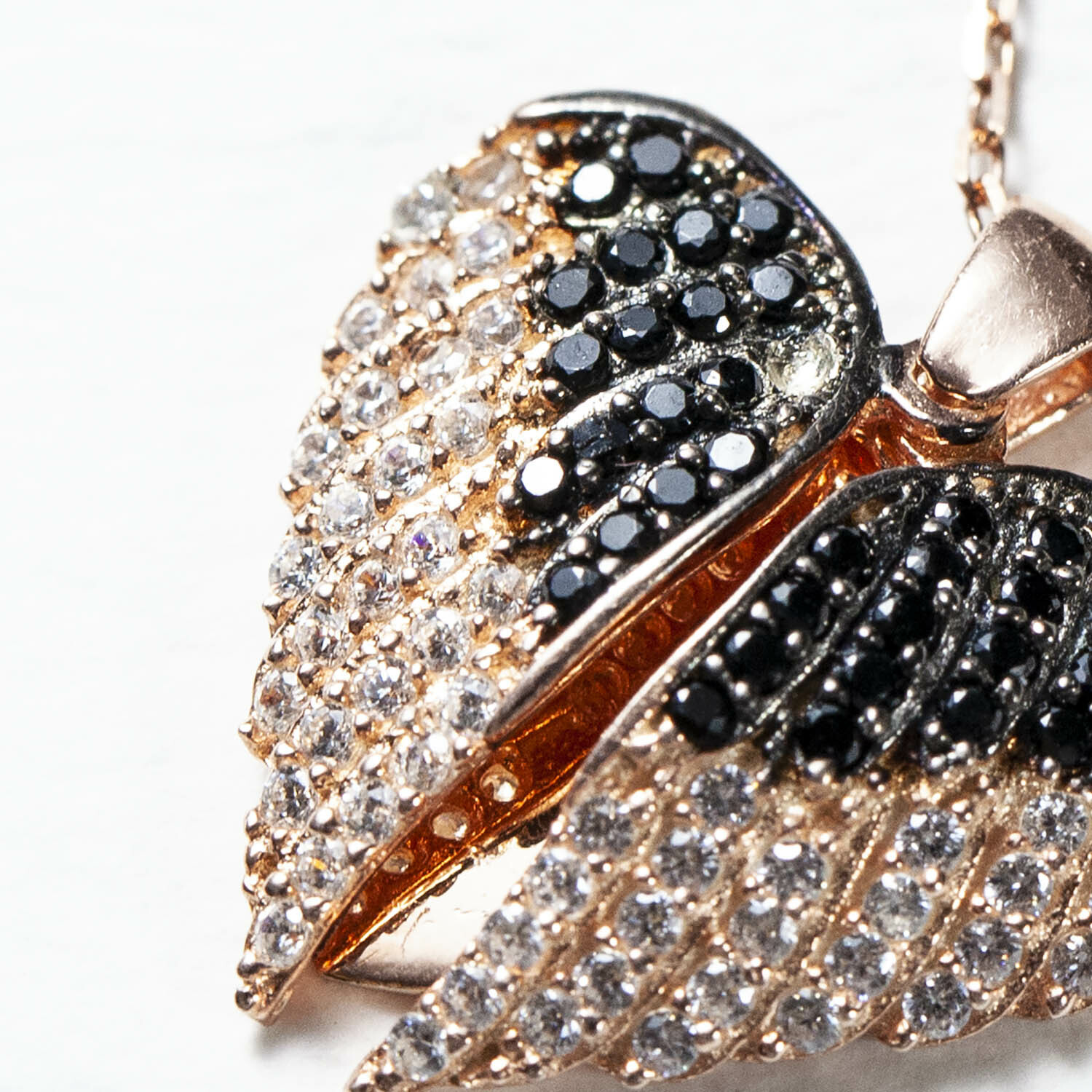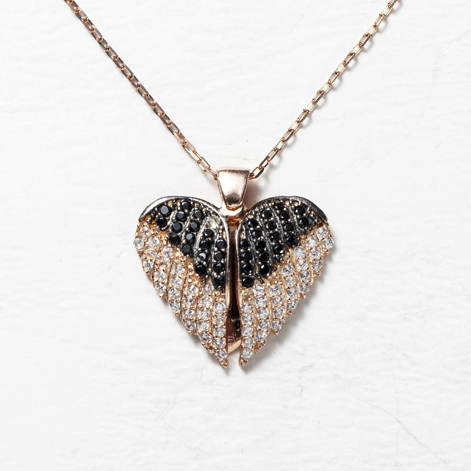 925銀愛心翅膀黑白水鑽銀鍍玫瑰金鎖骨鍊