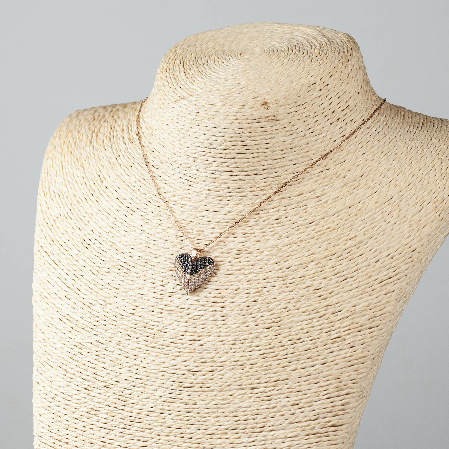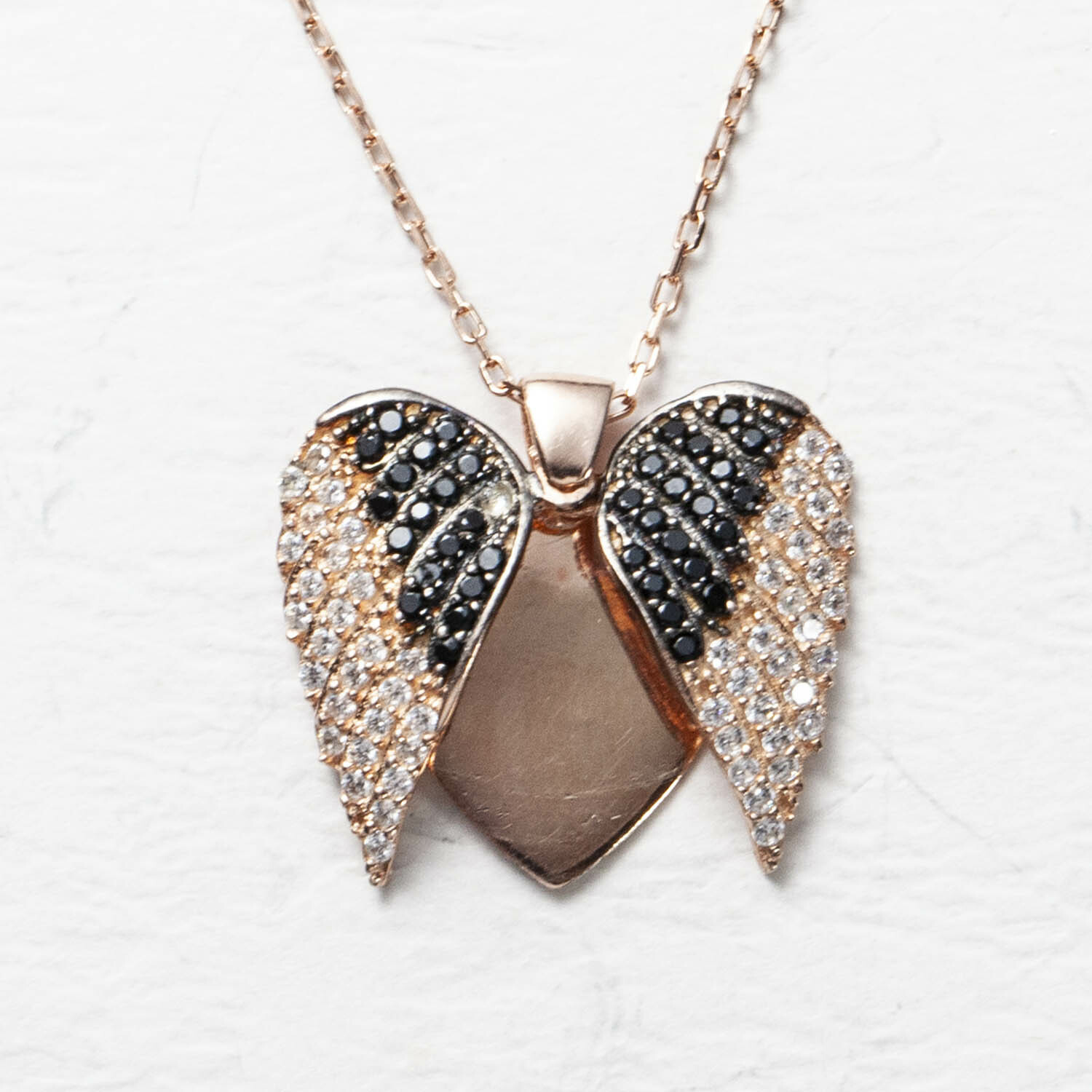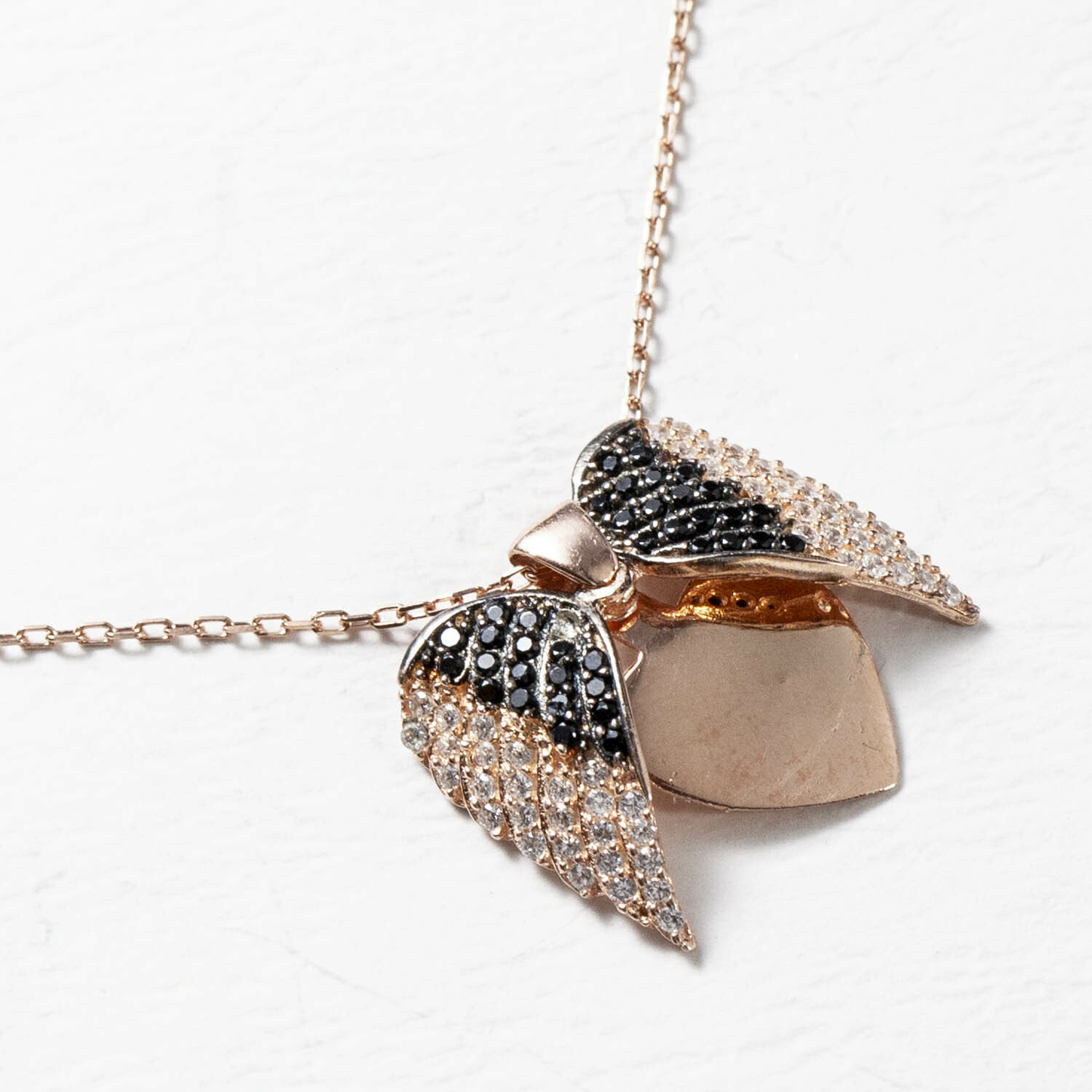 925銀愛心翅膀黑白水鑽銀鍍玫瑰金鎖骨鍊
