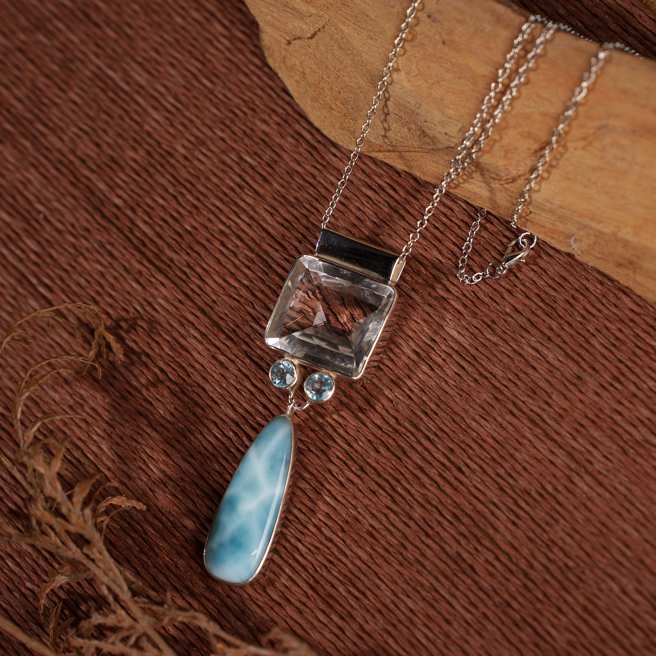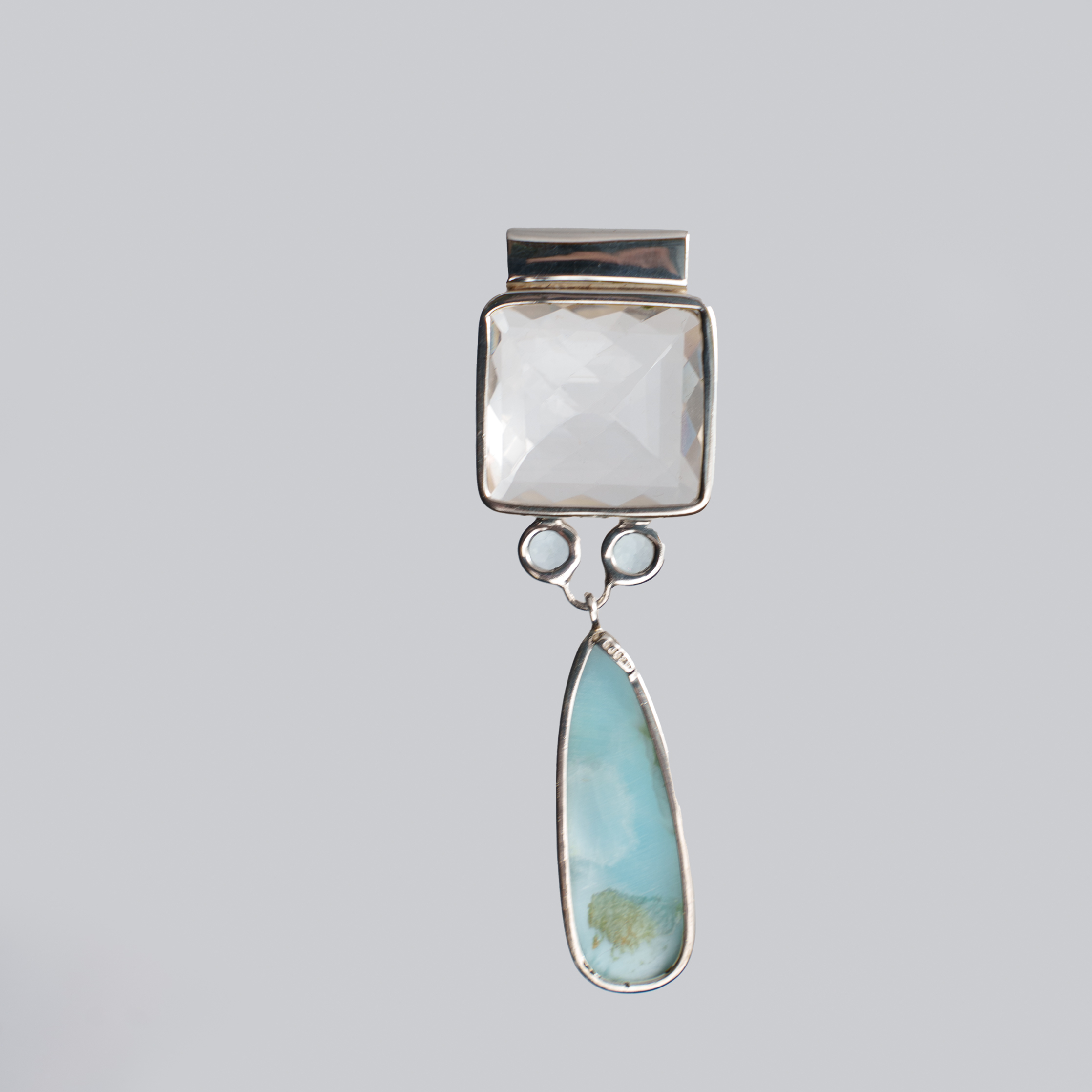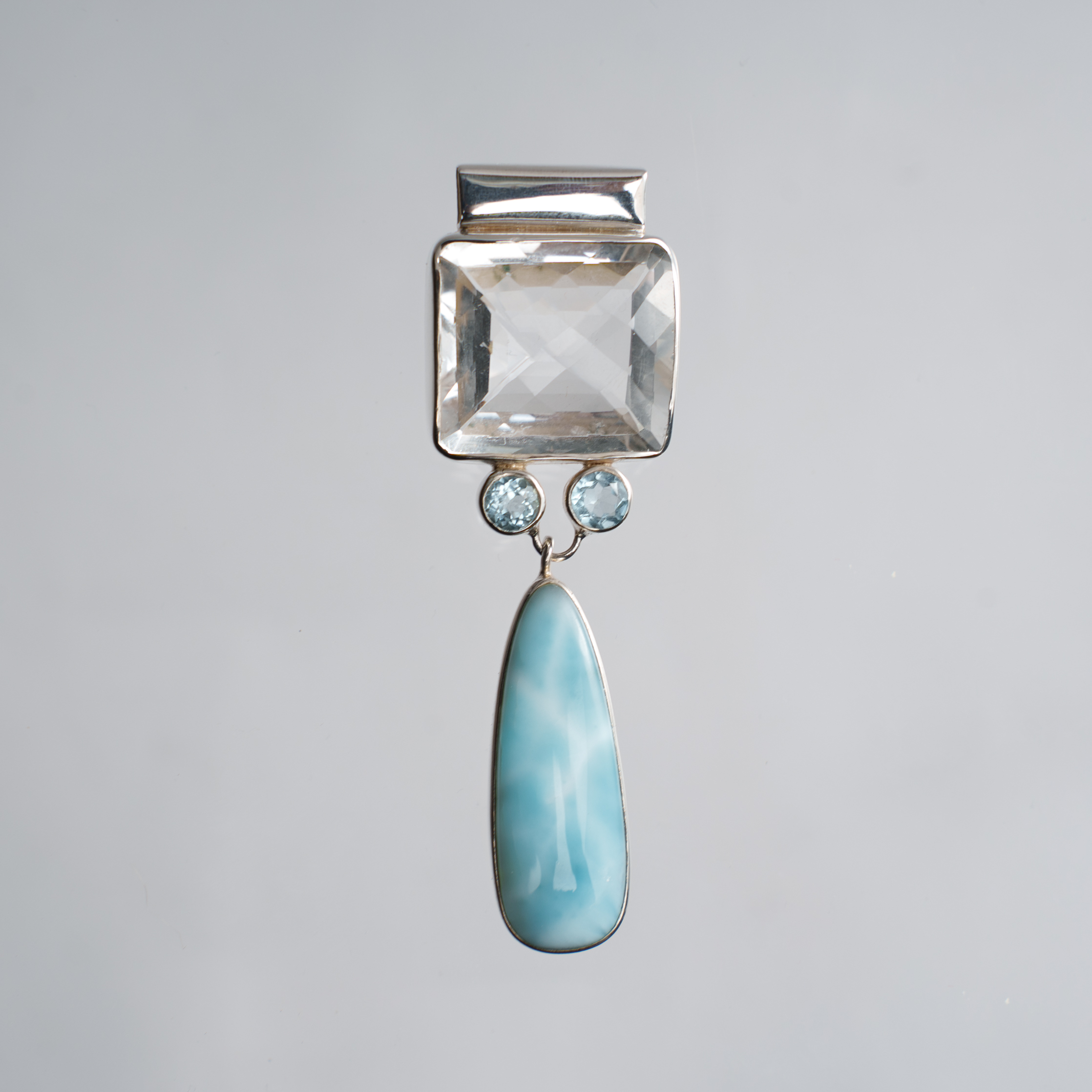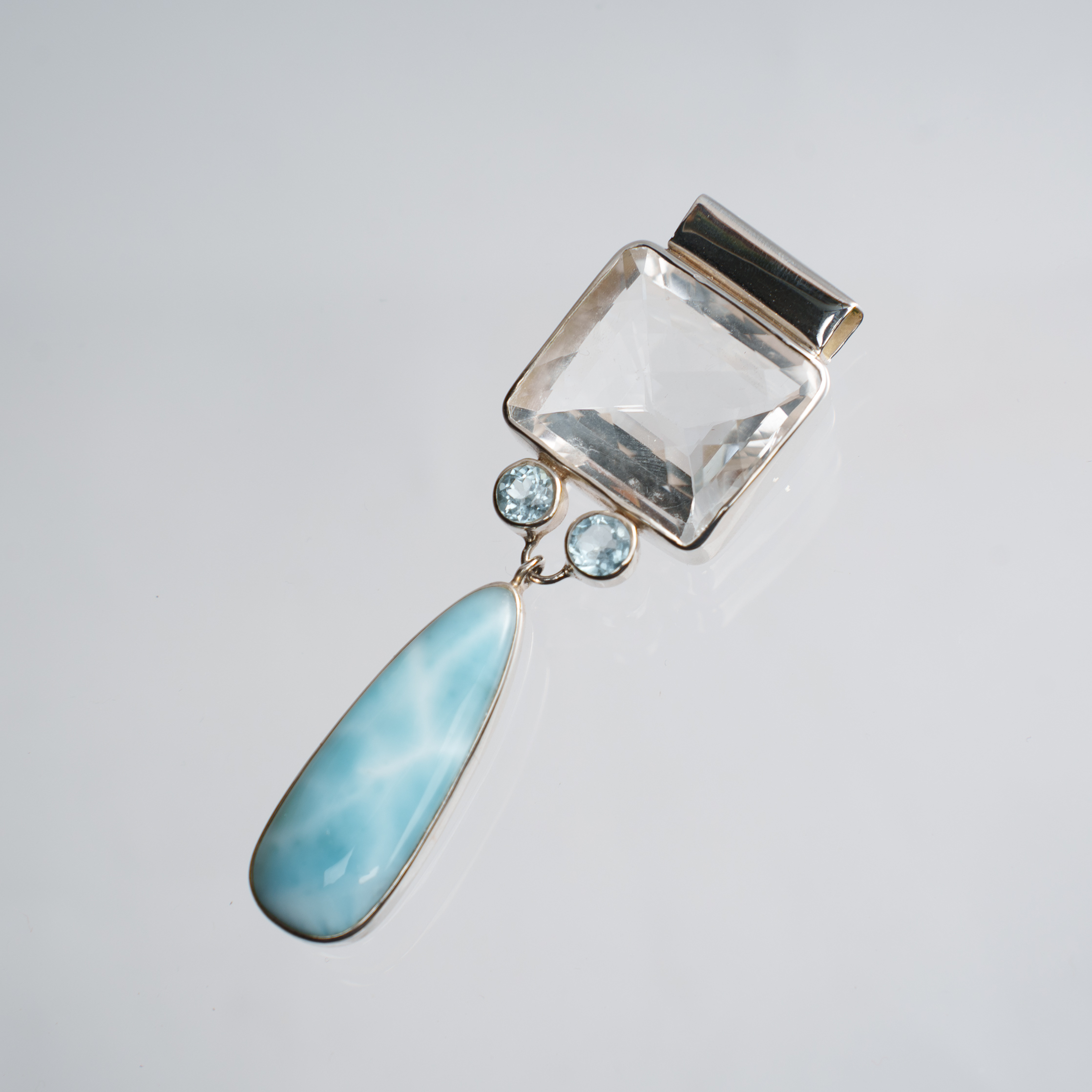 925銀拉利瑪白水晶拓帕石造型墜飾