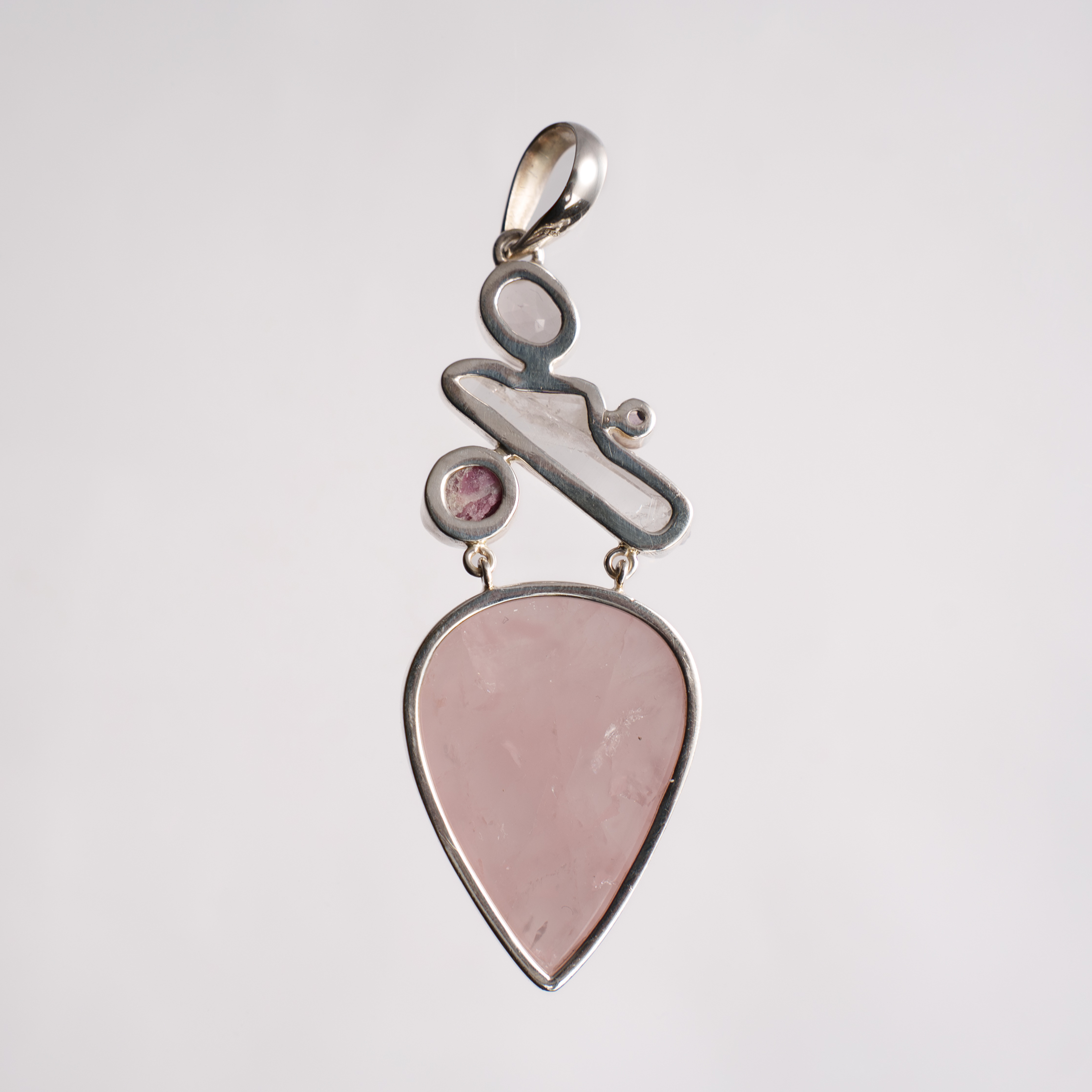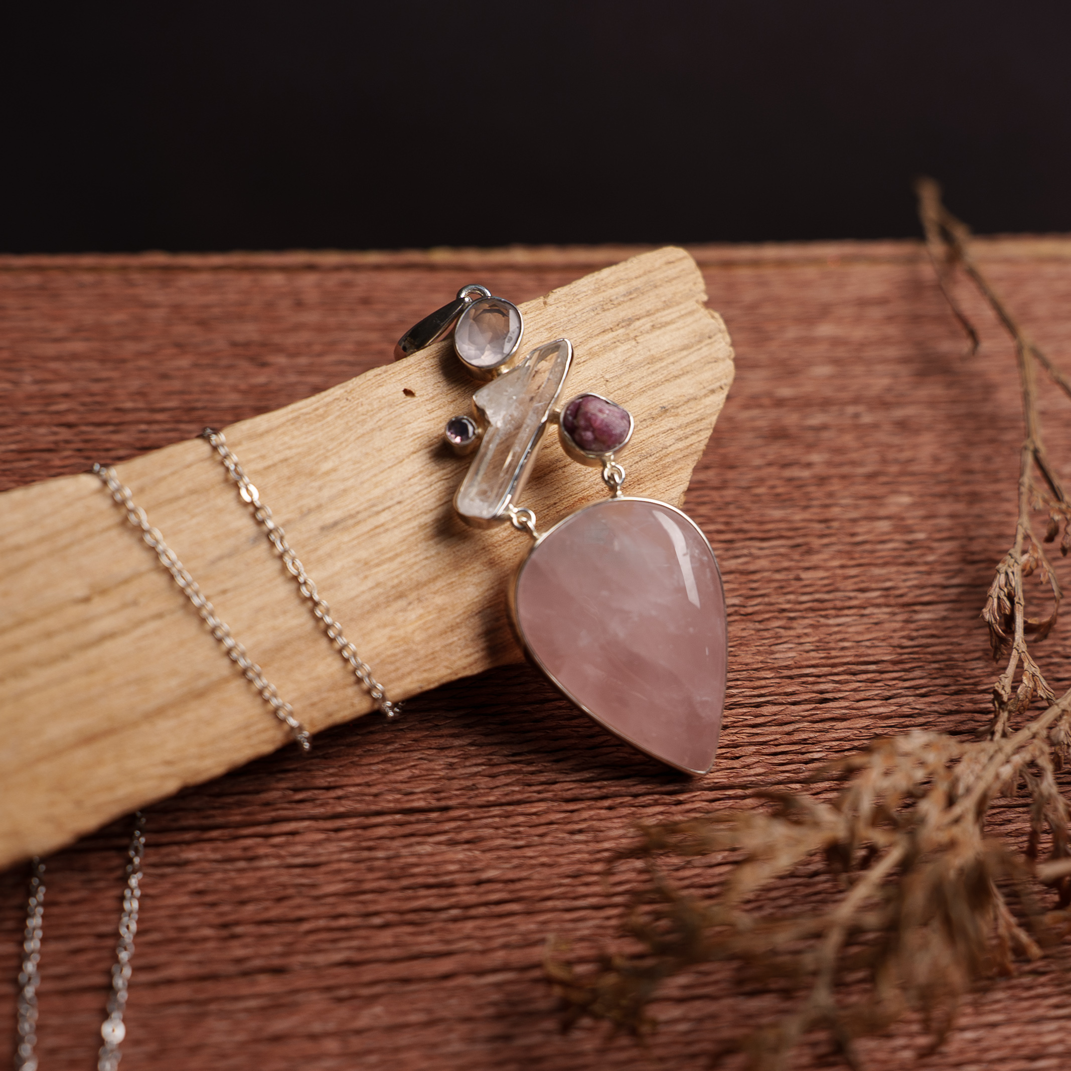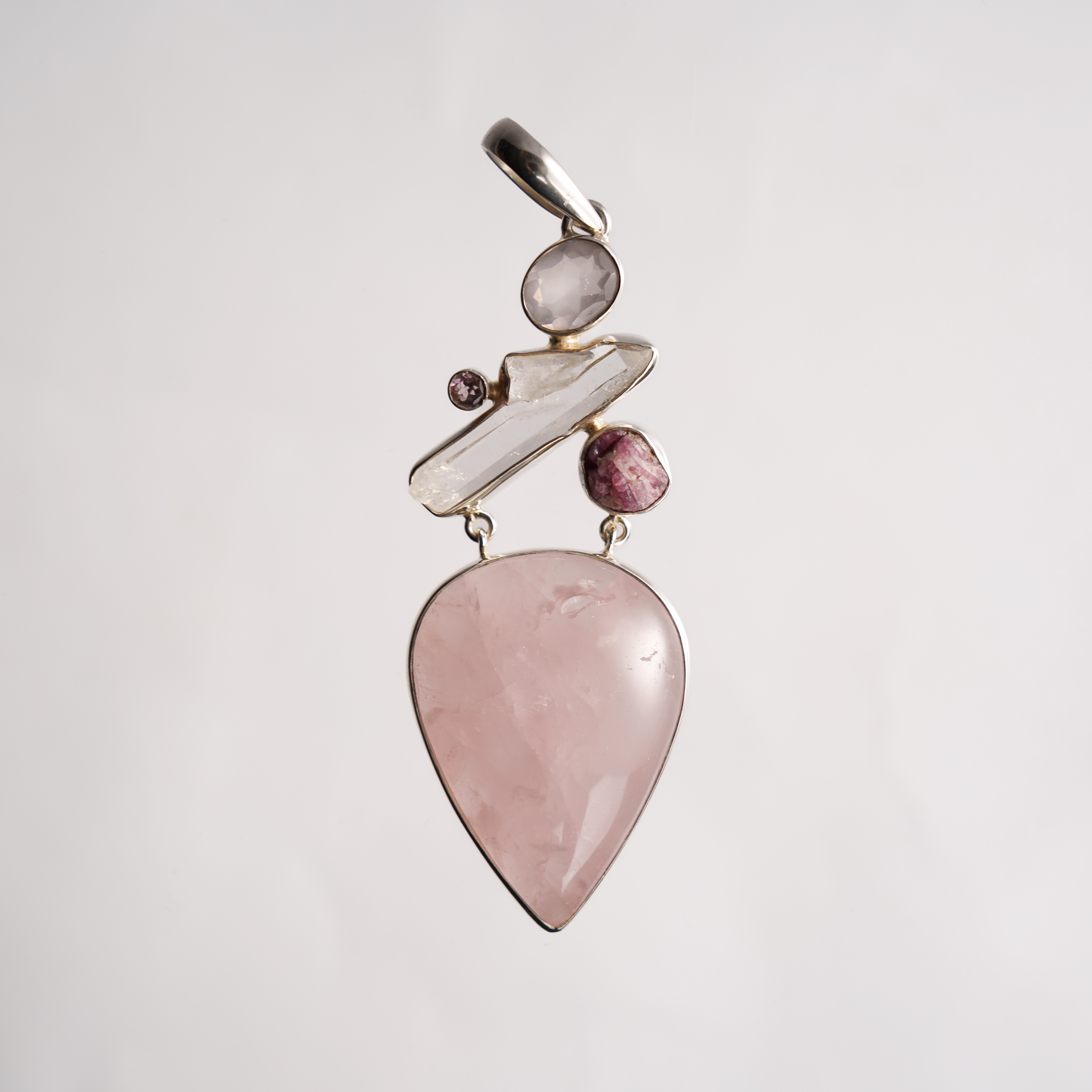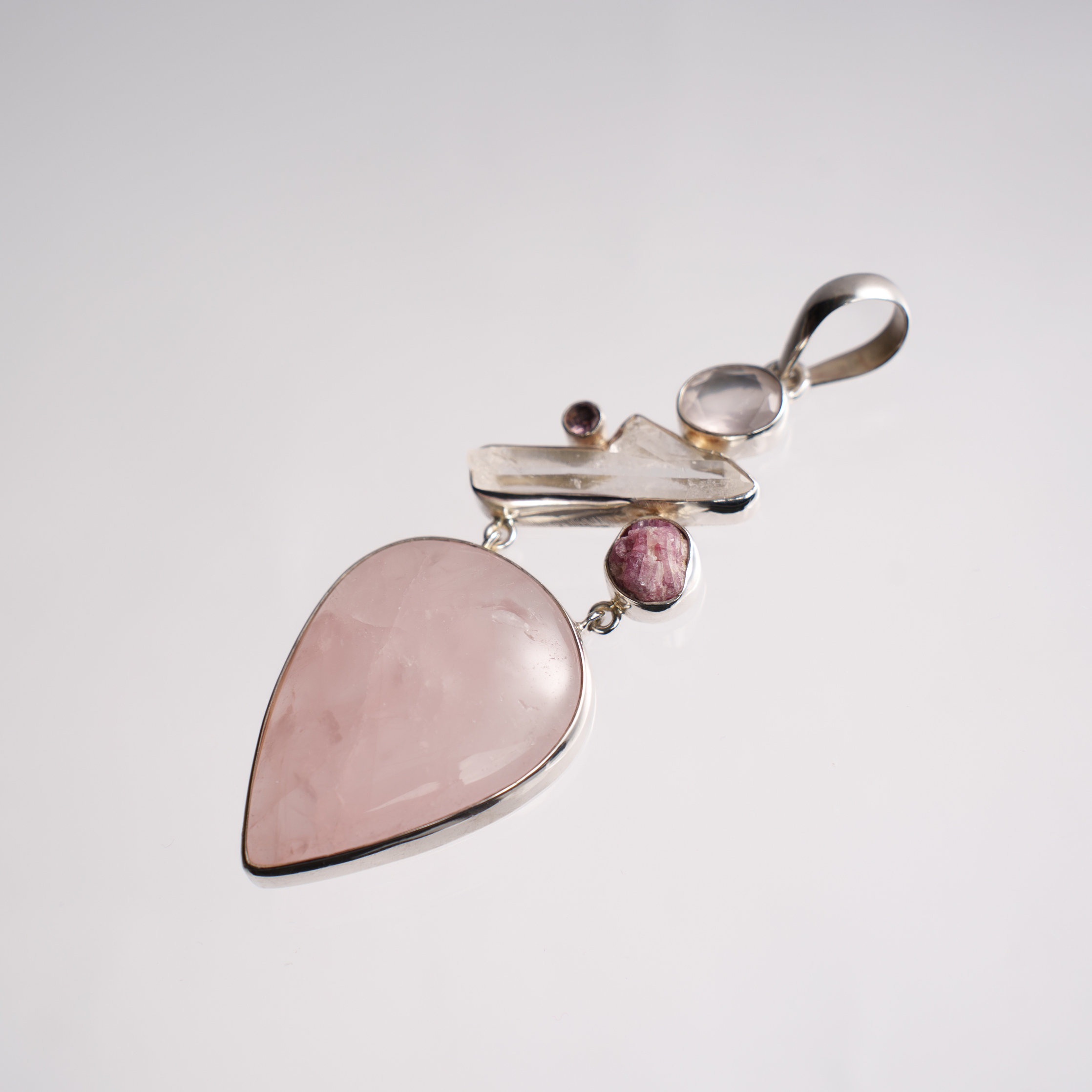 925銀白水晶蛋白石紅碧璽粉晶鑲框造型墜飾