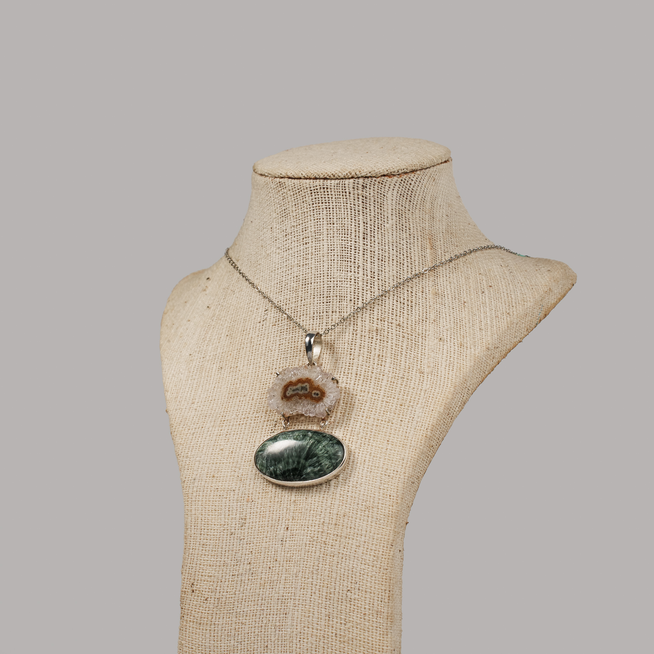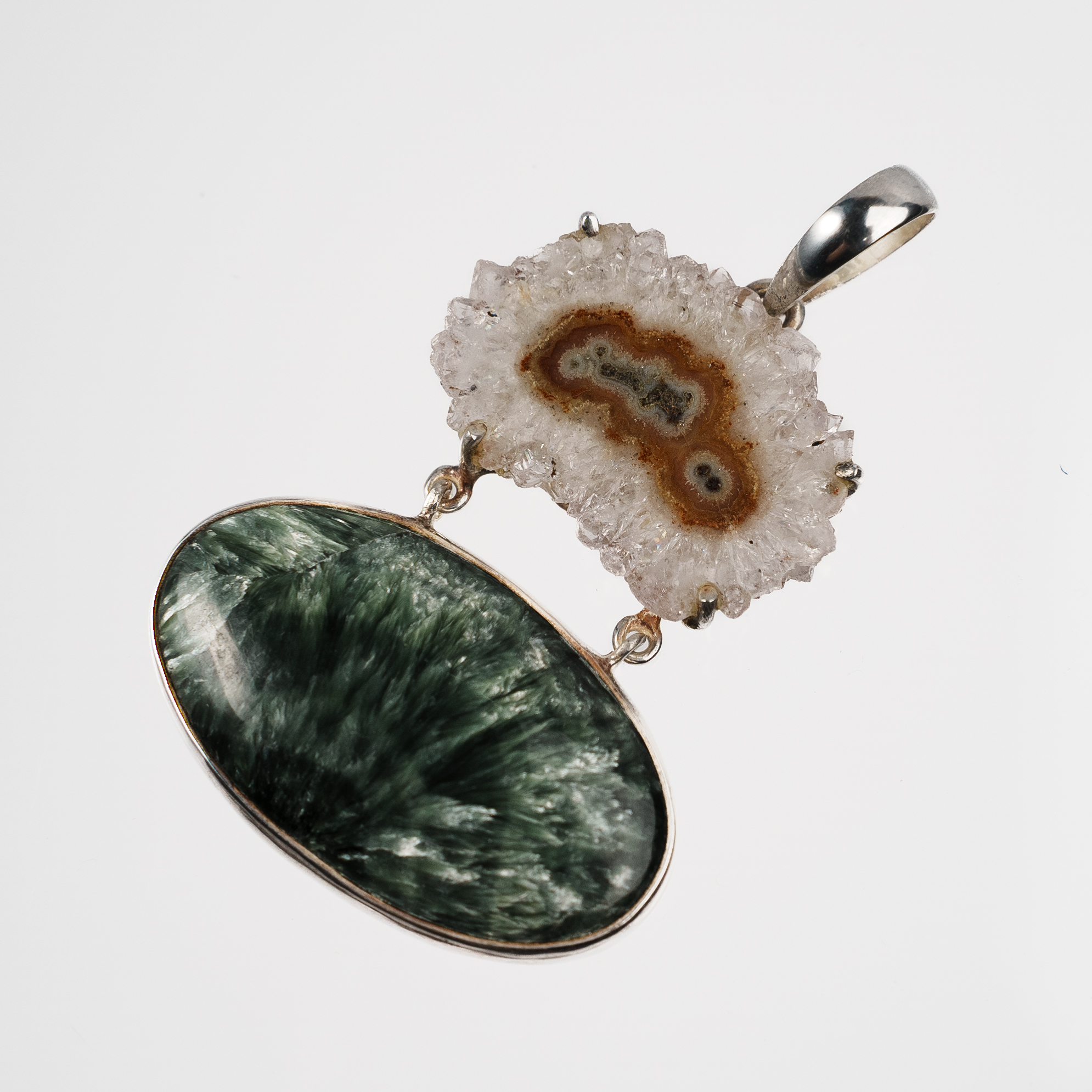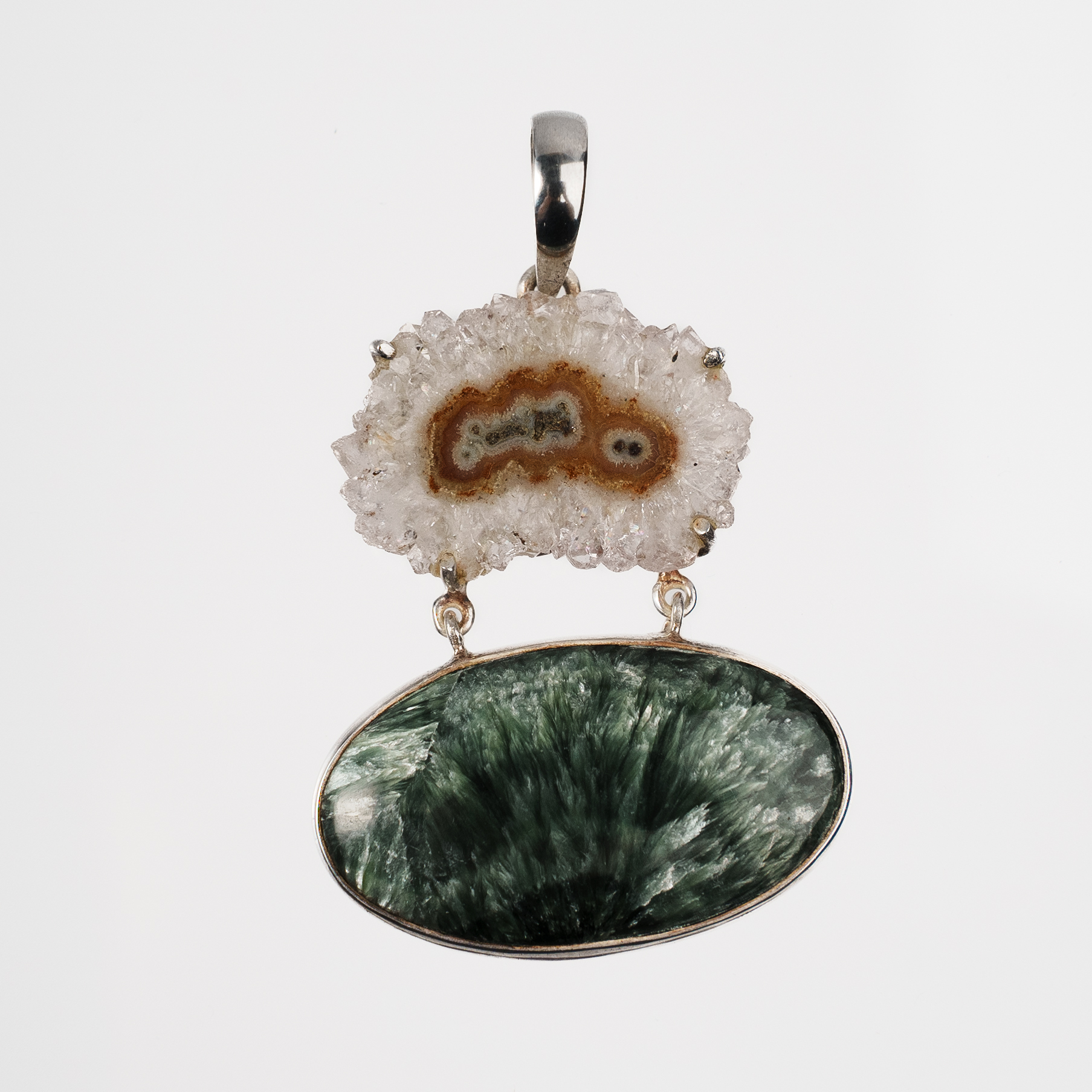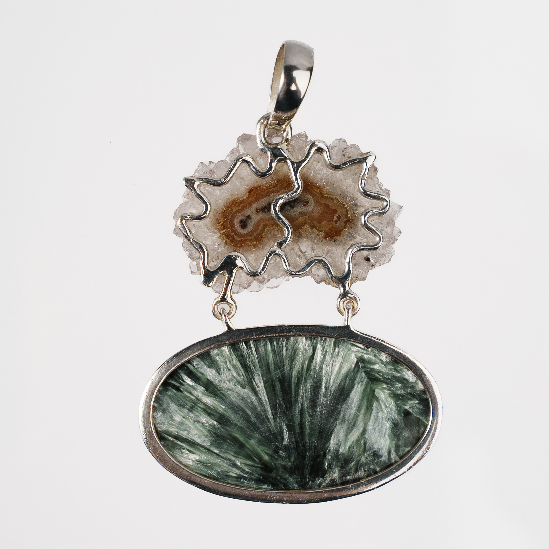 925銀晶簇切片(綠龍晶)鑲框墜飾