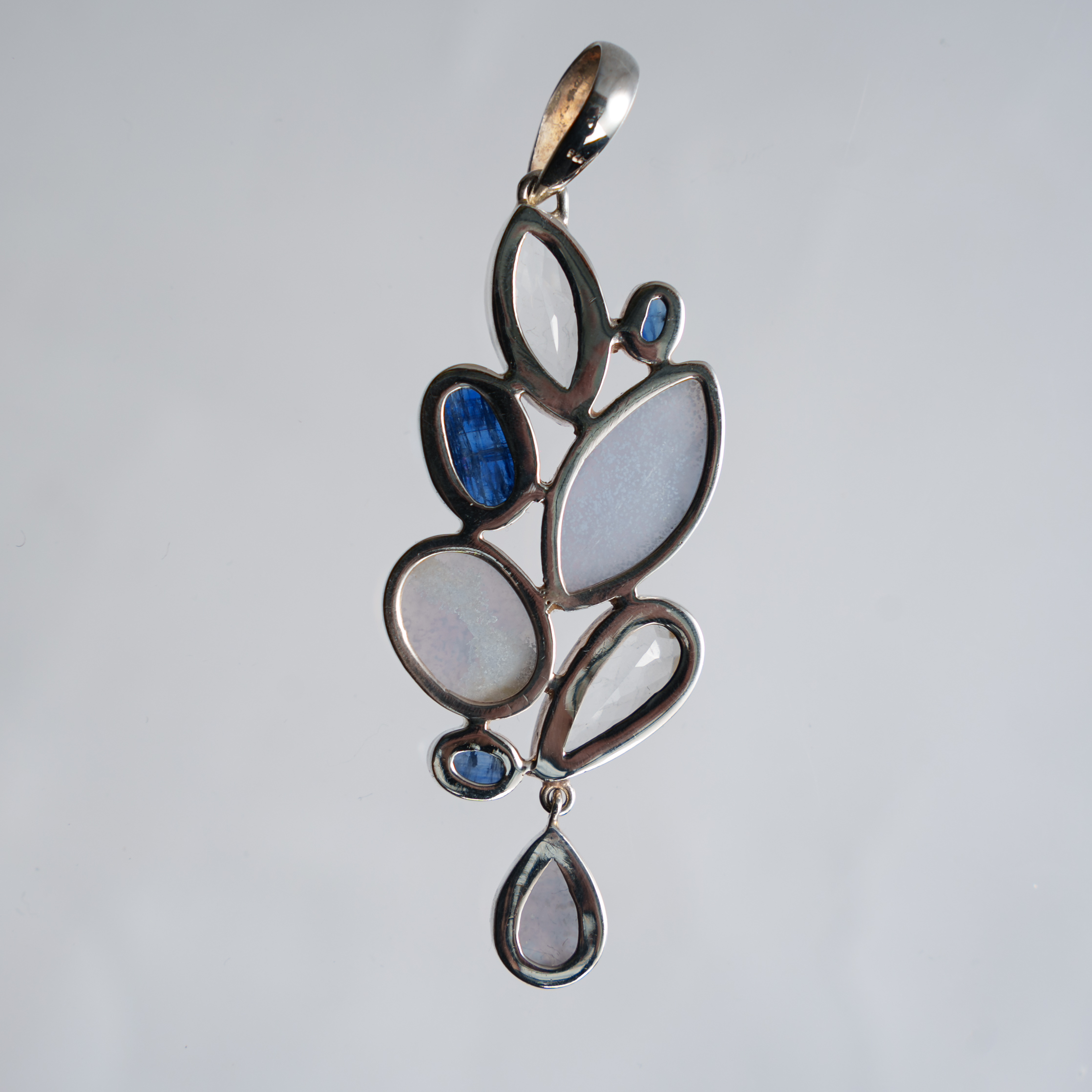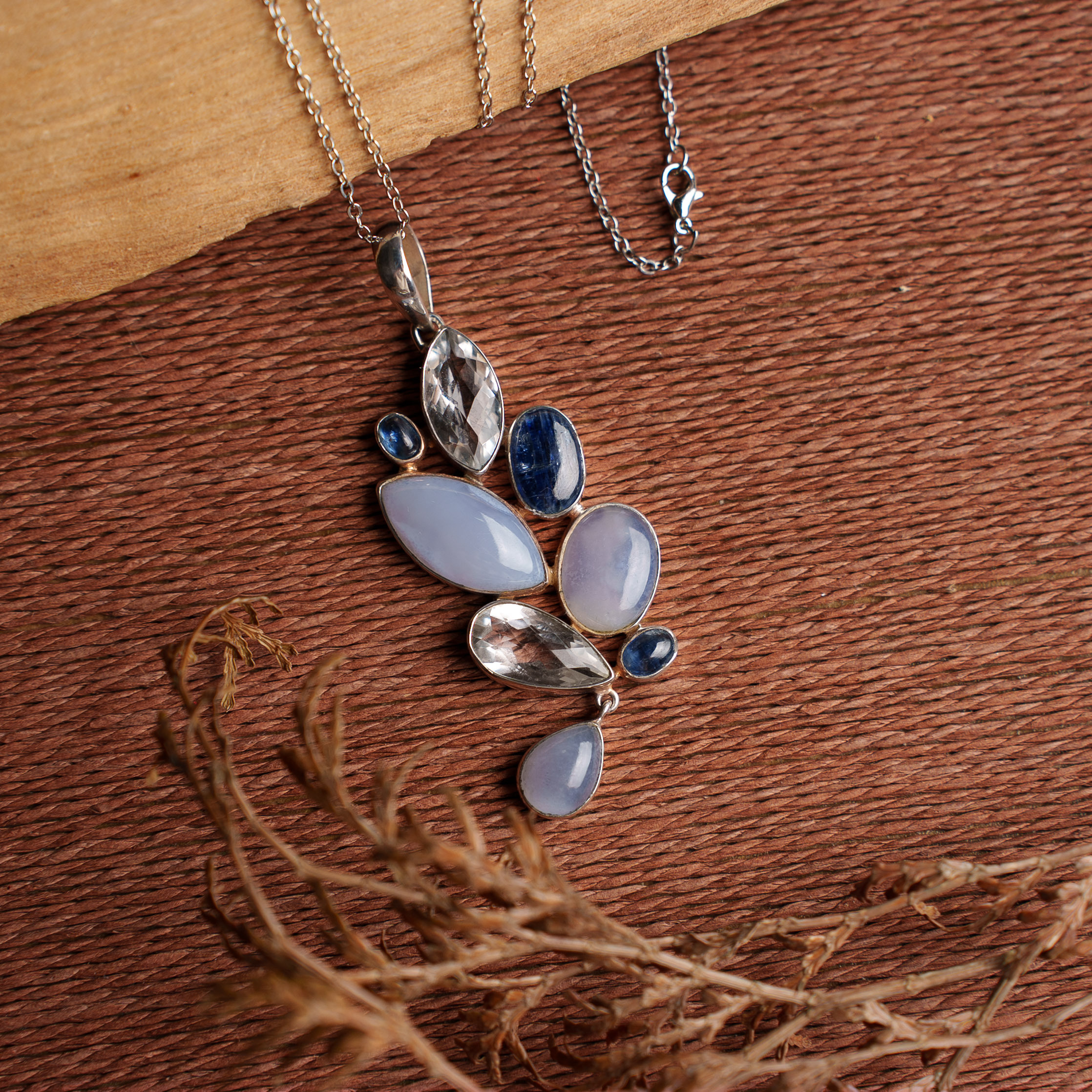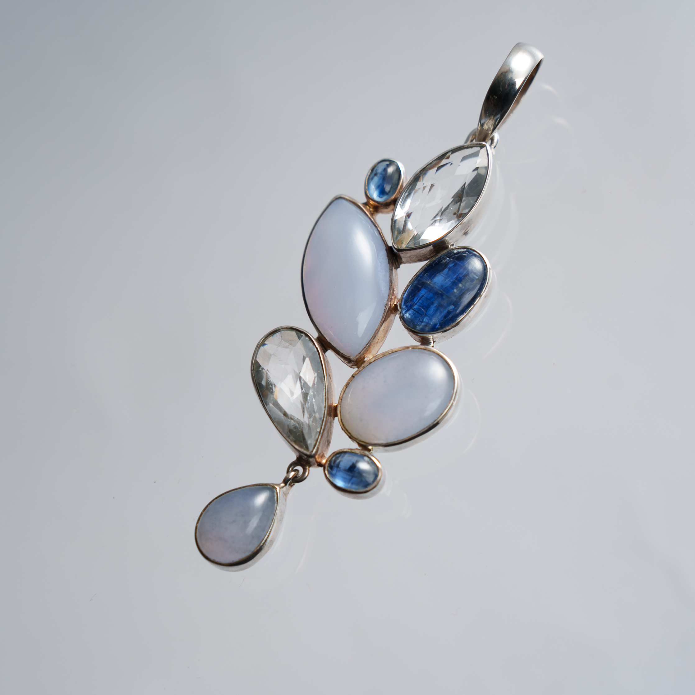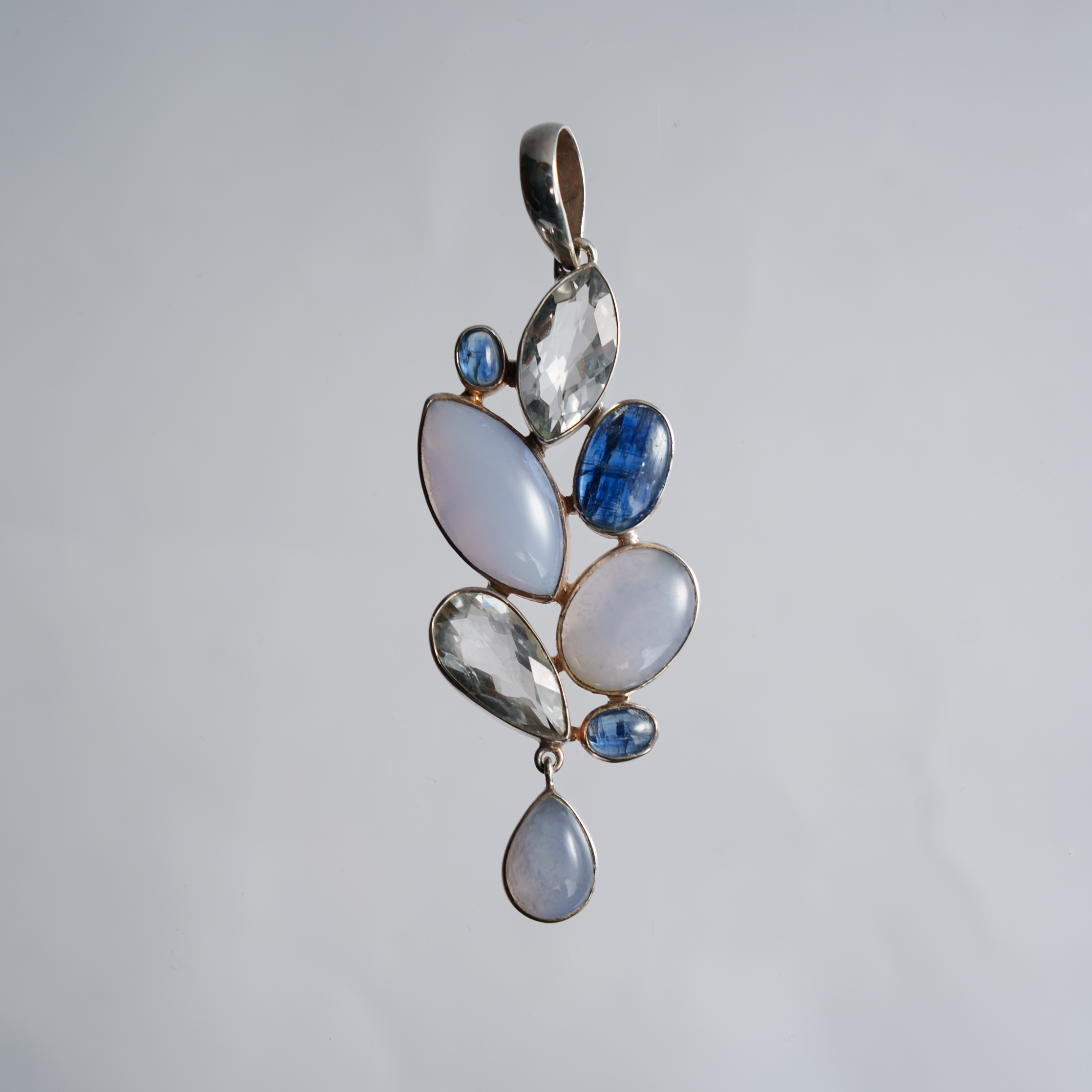 925銀白水晶藍玉髓藍晶造型鑲嵌墜飾