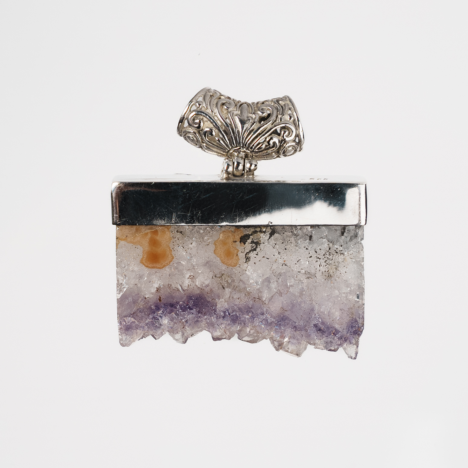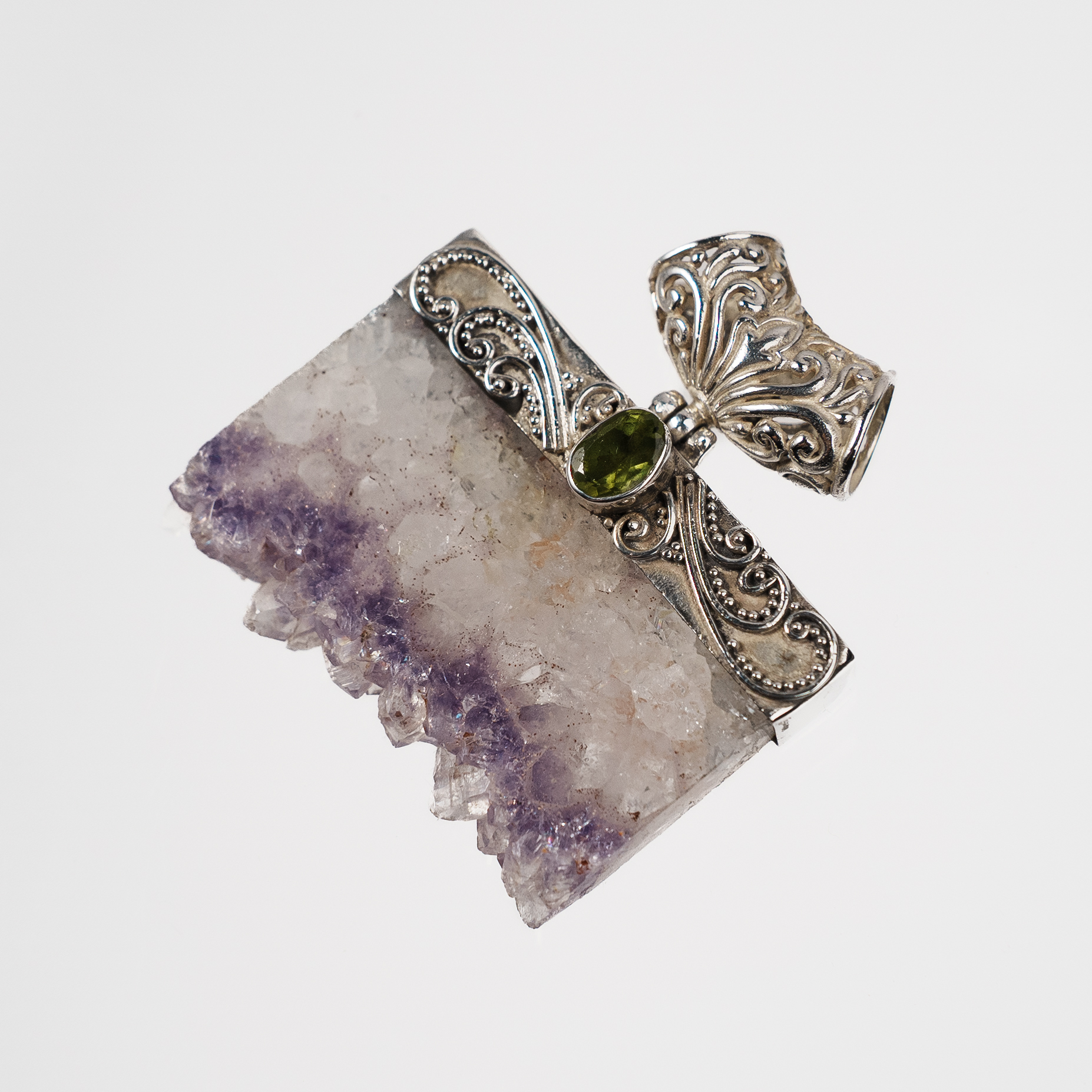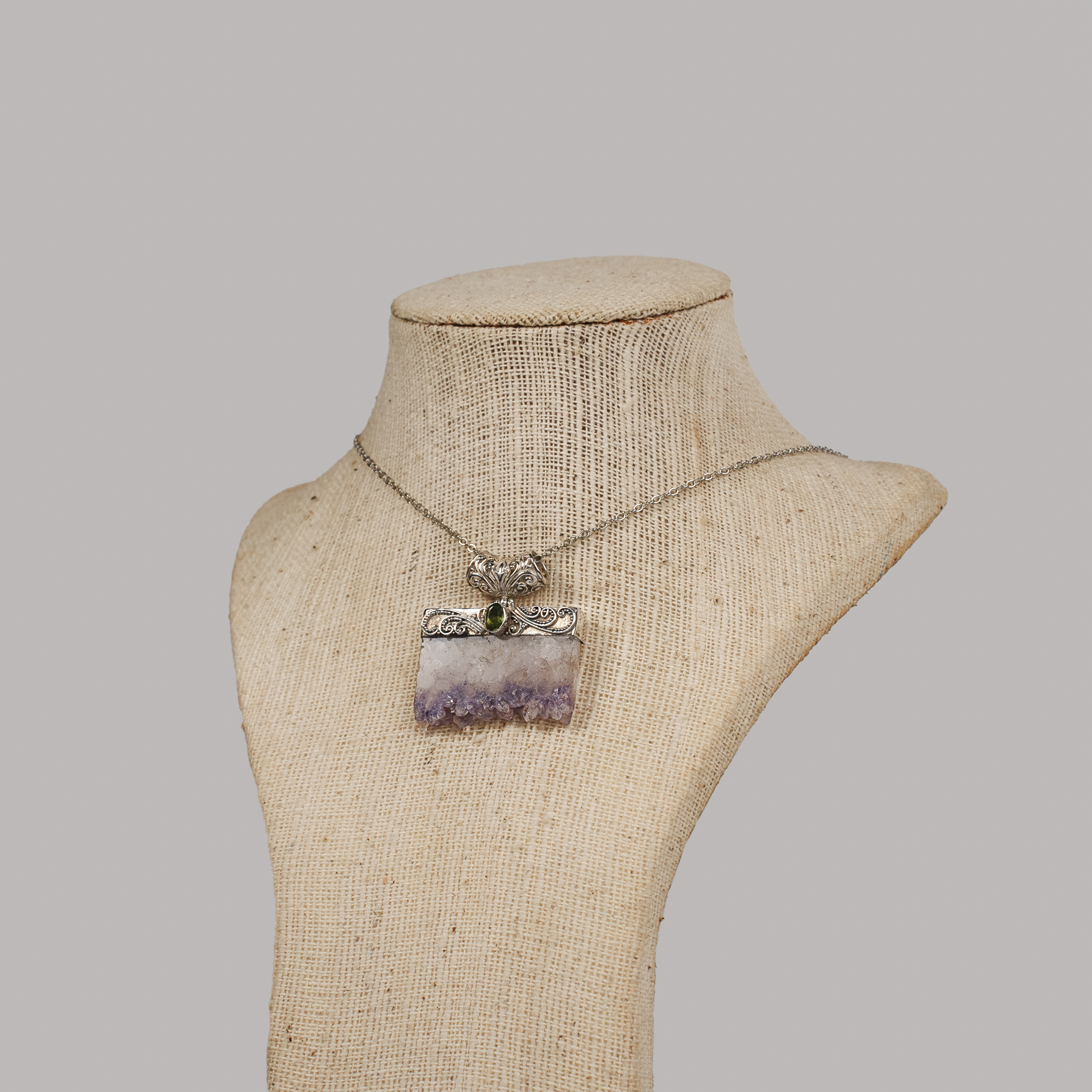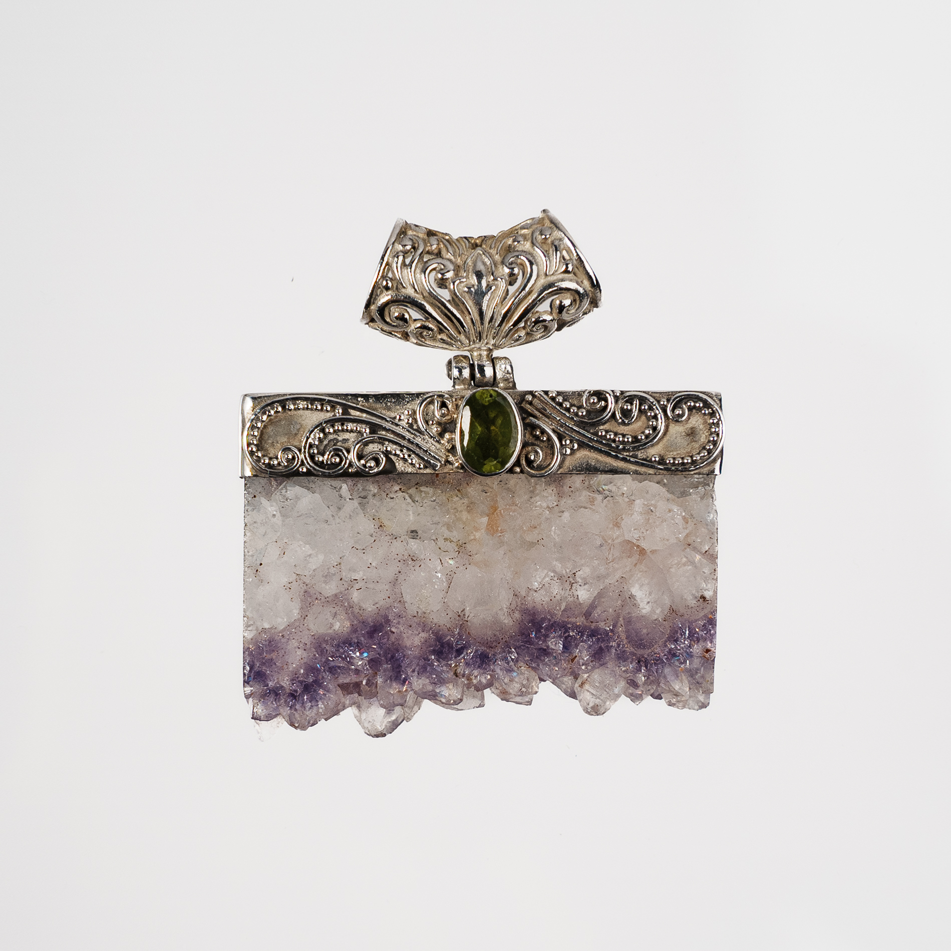 925銀紫晶簇(拓帕石)造型鑲框墜飾