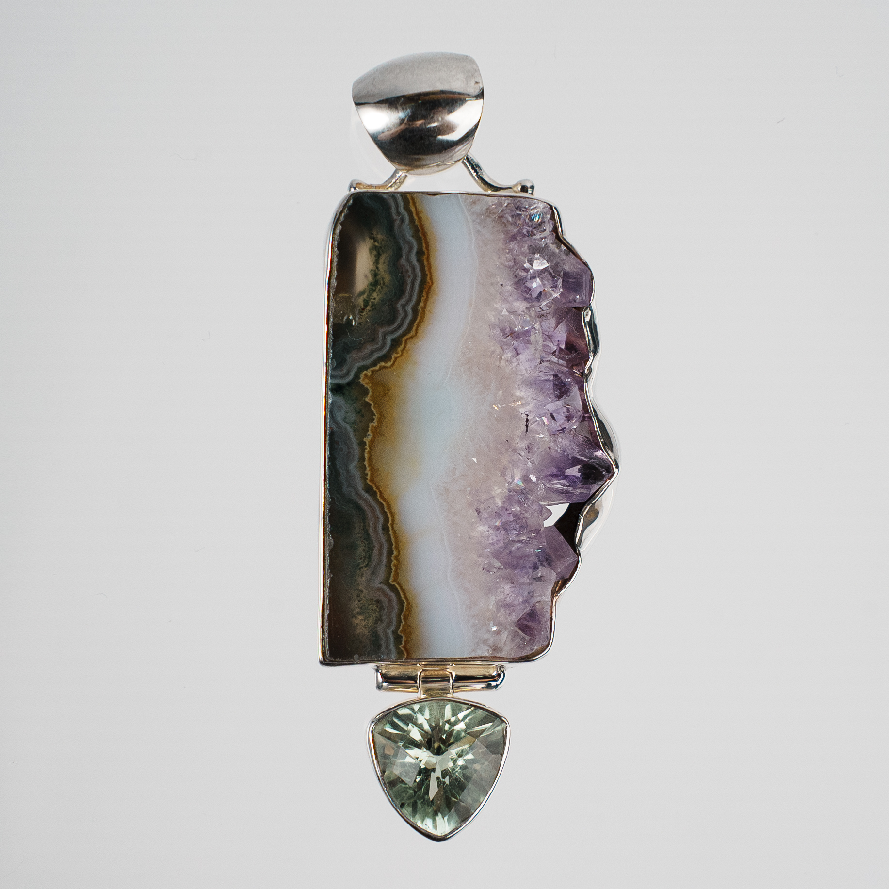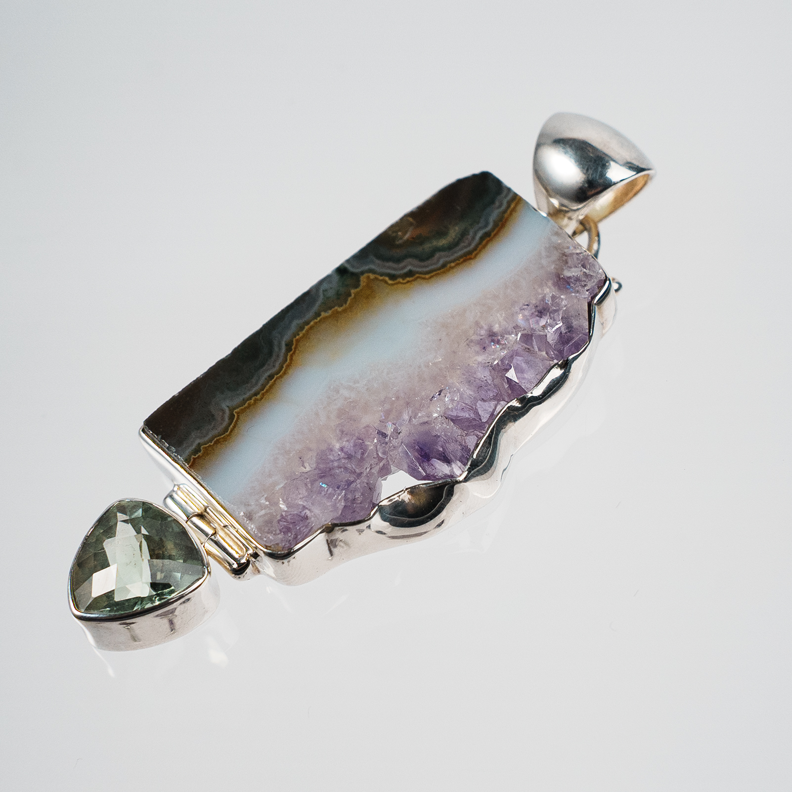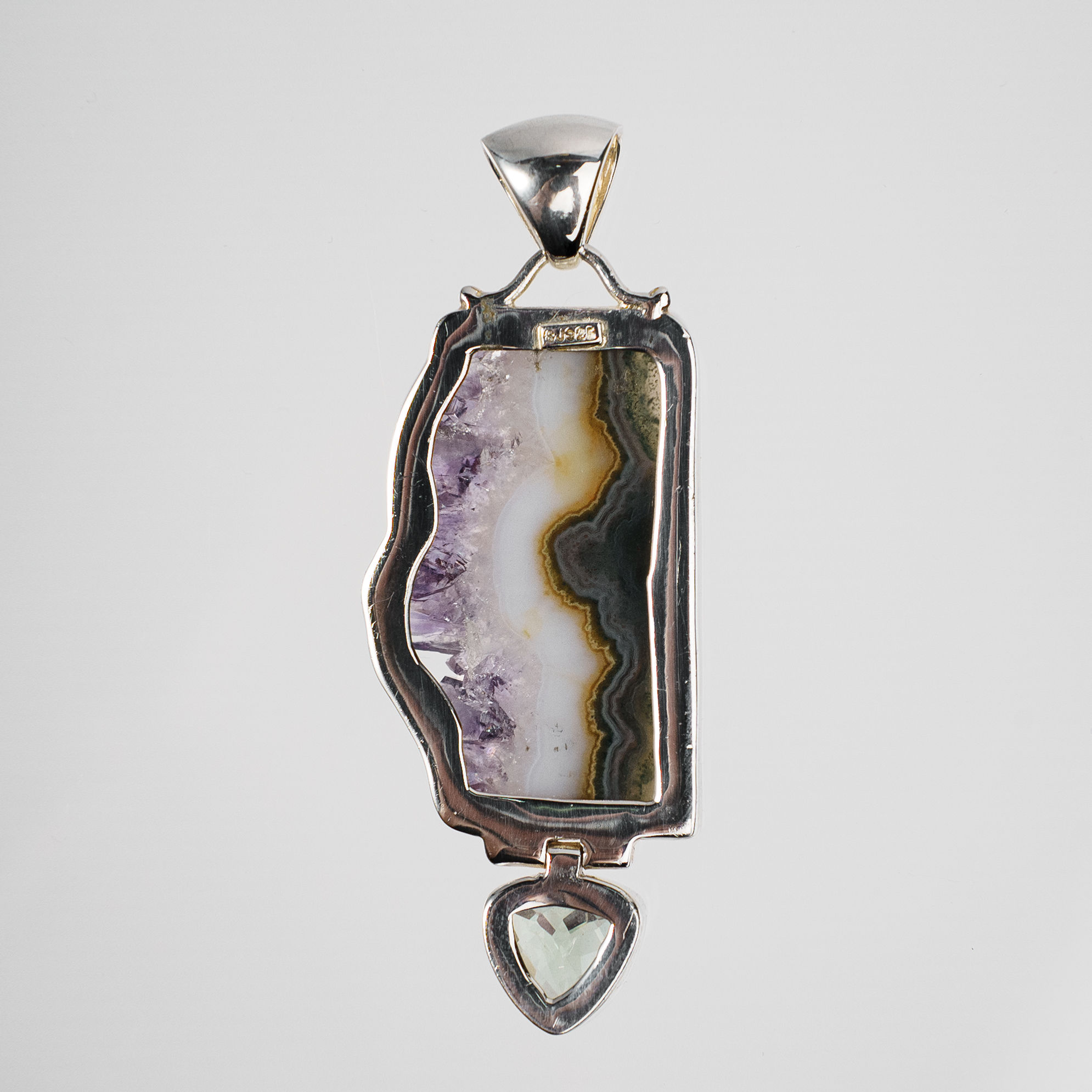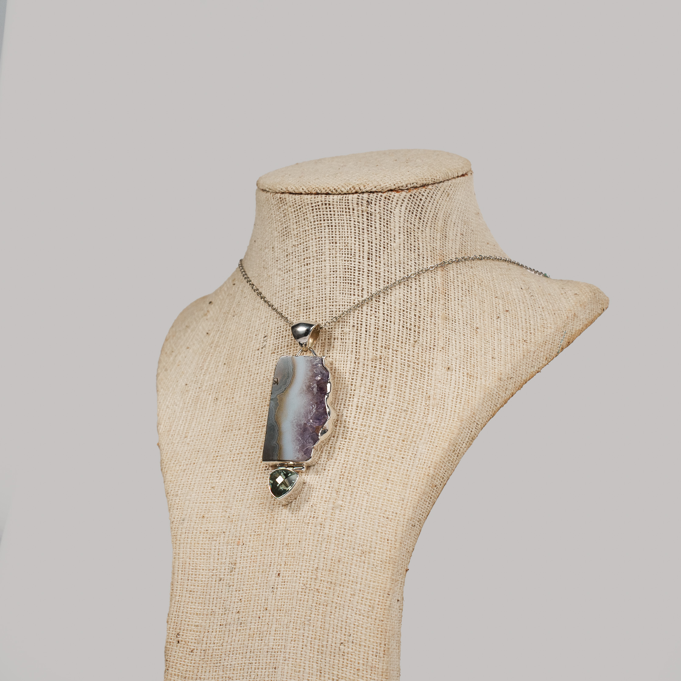 925銀紫晶簇(拓帕石)鑲框墜飾