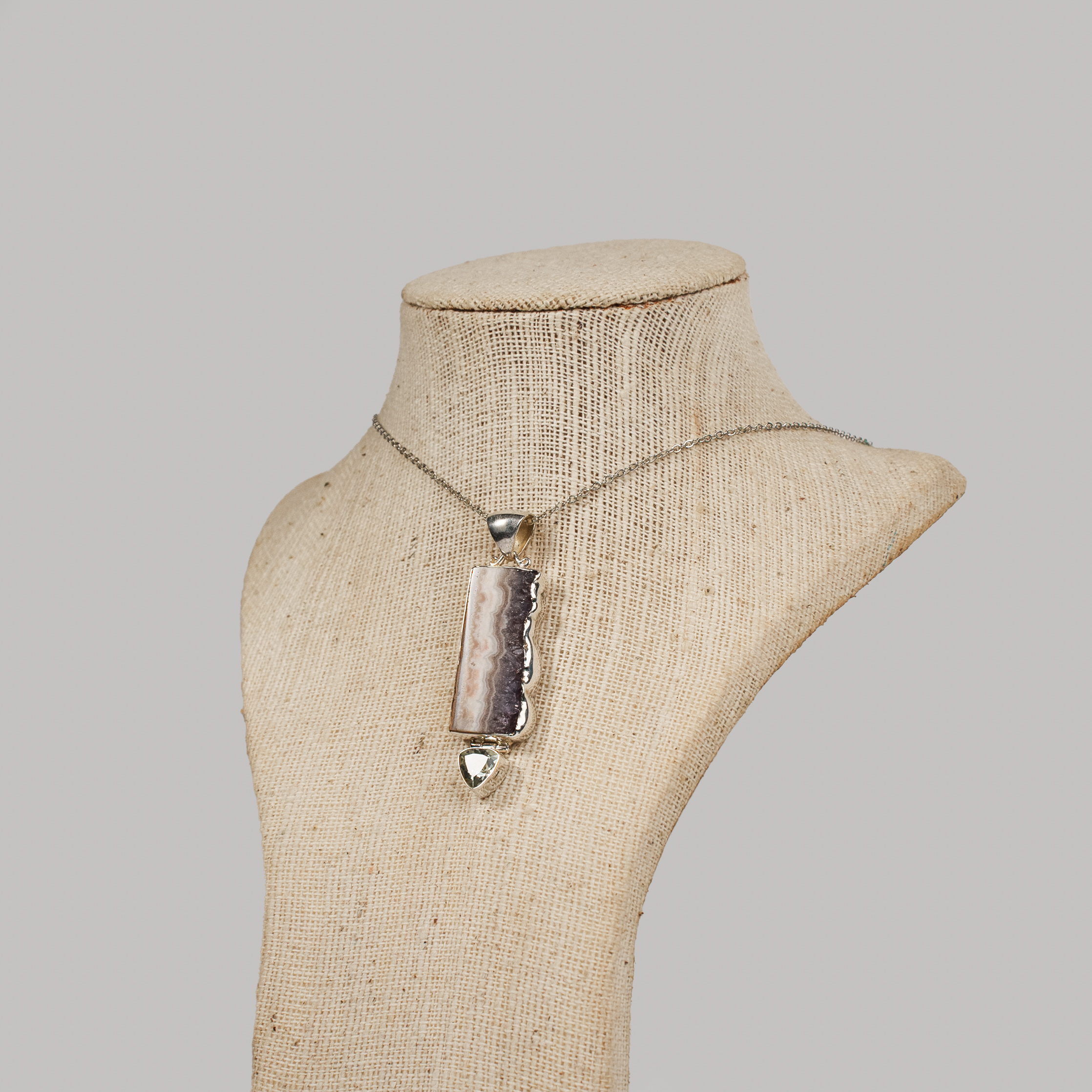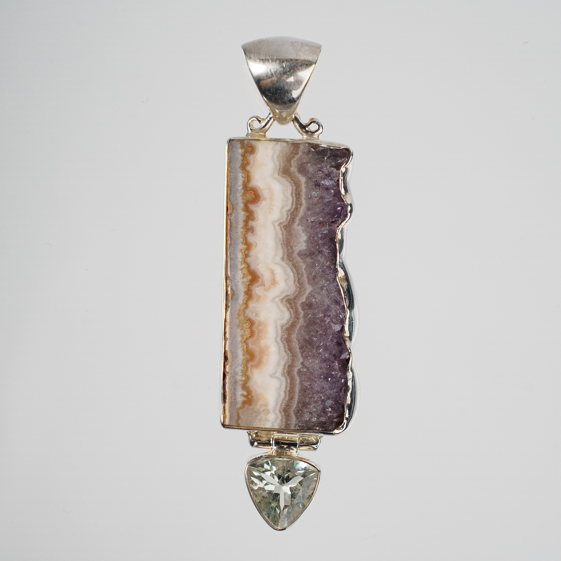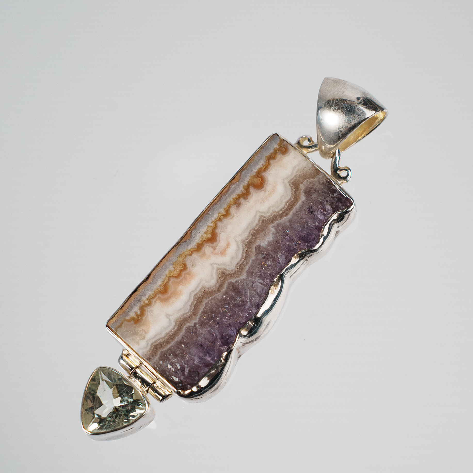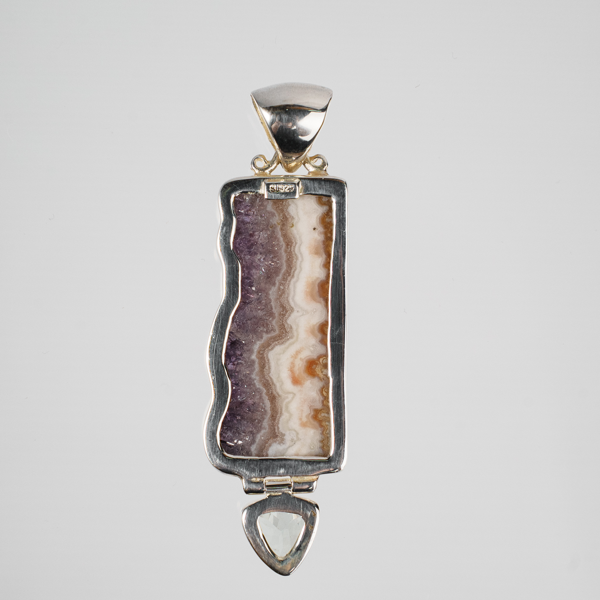 925銀紫晶簇(拓帕石)鑲框墜飾