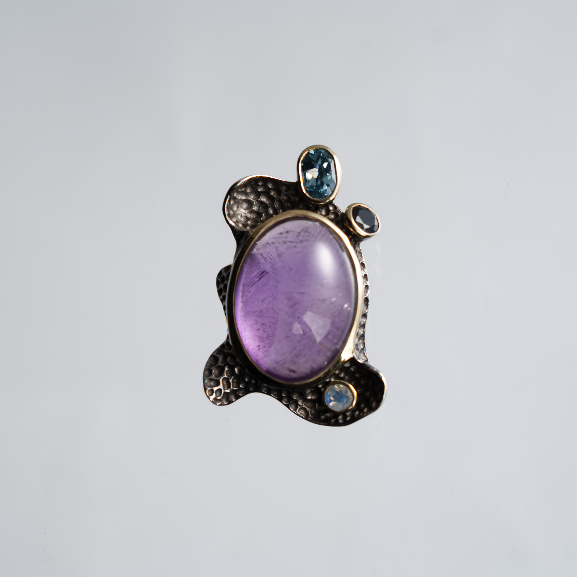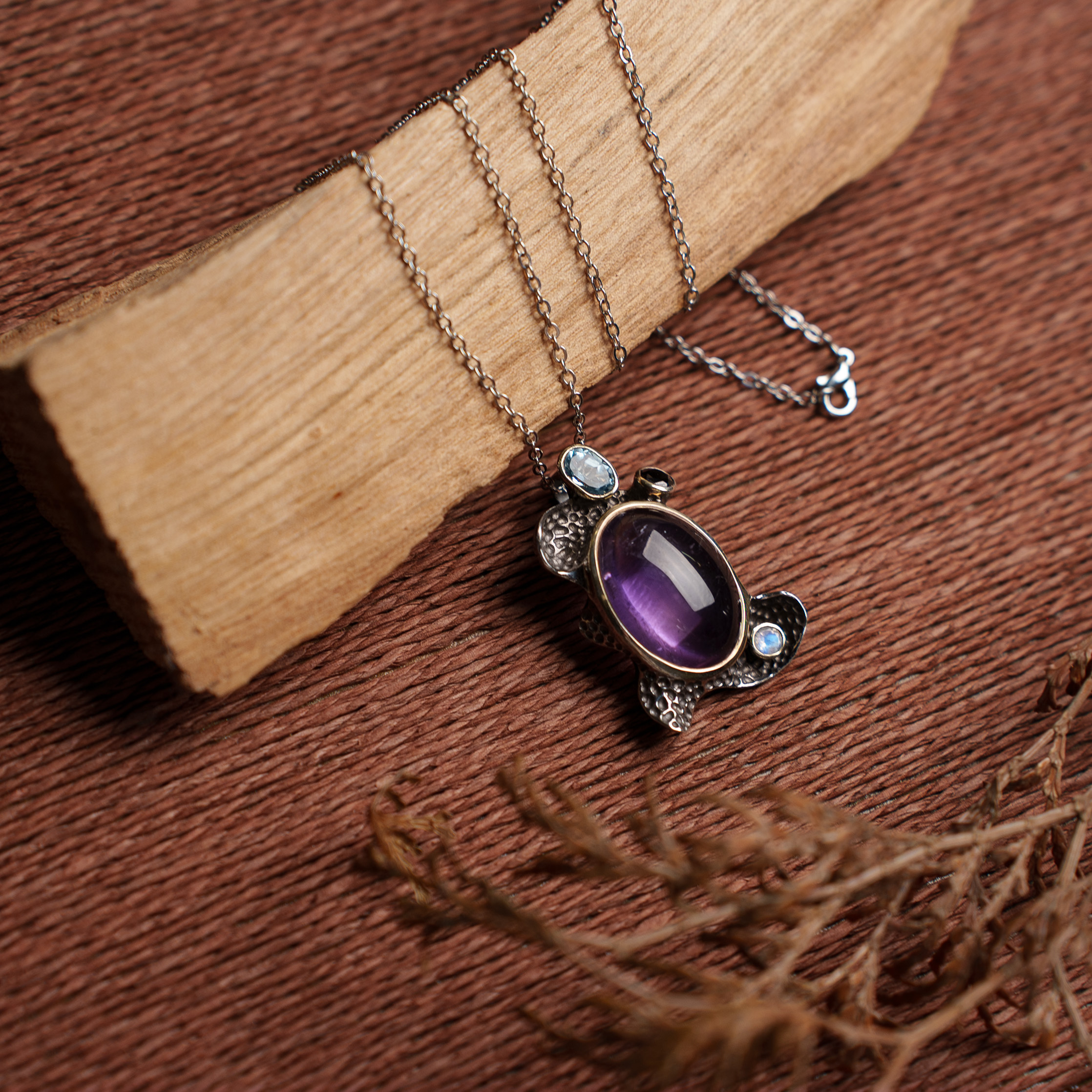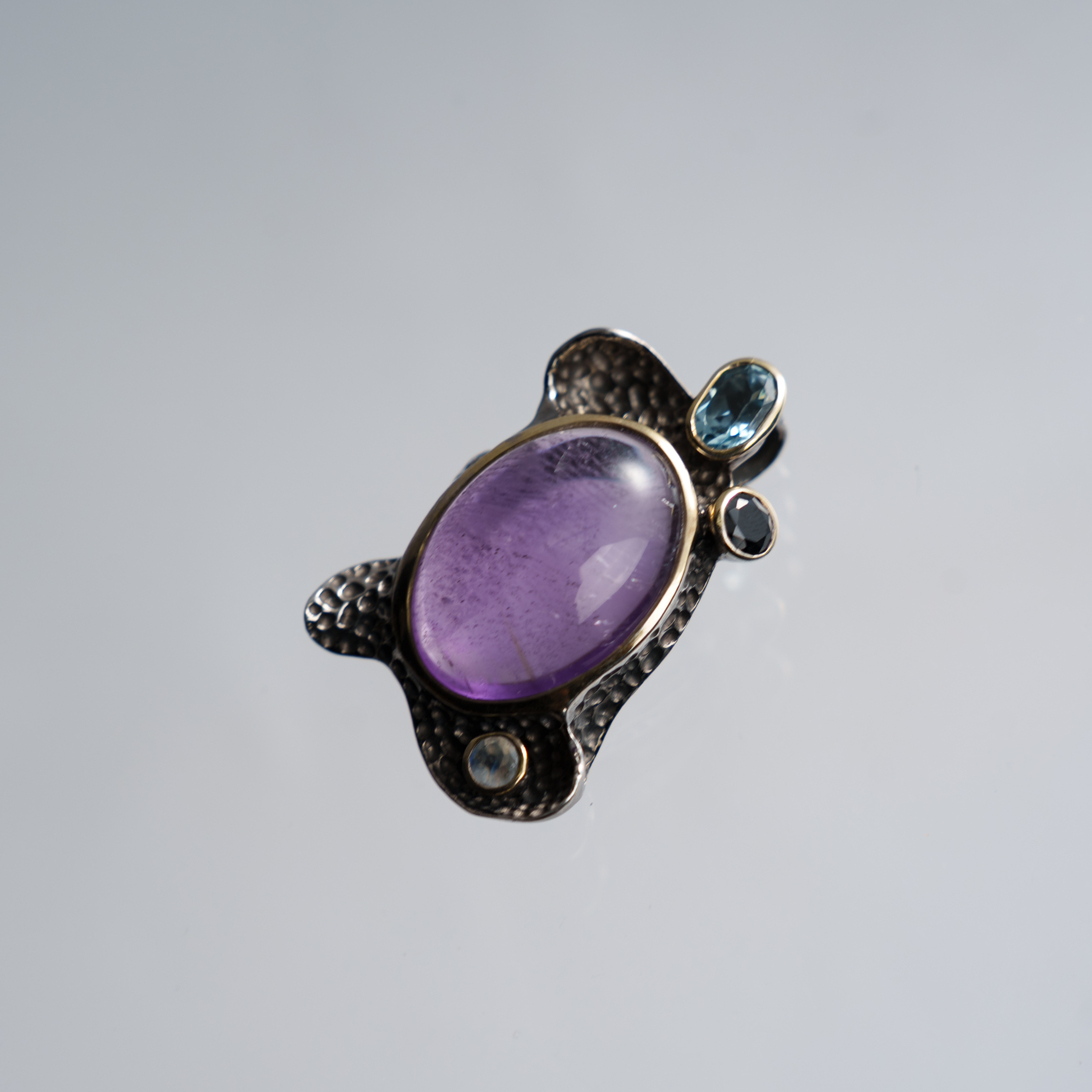 925銀紫水晶多寶石造型鑲嵌墜飾