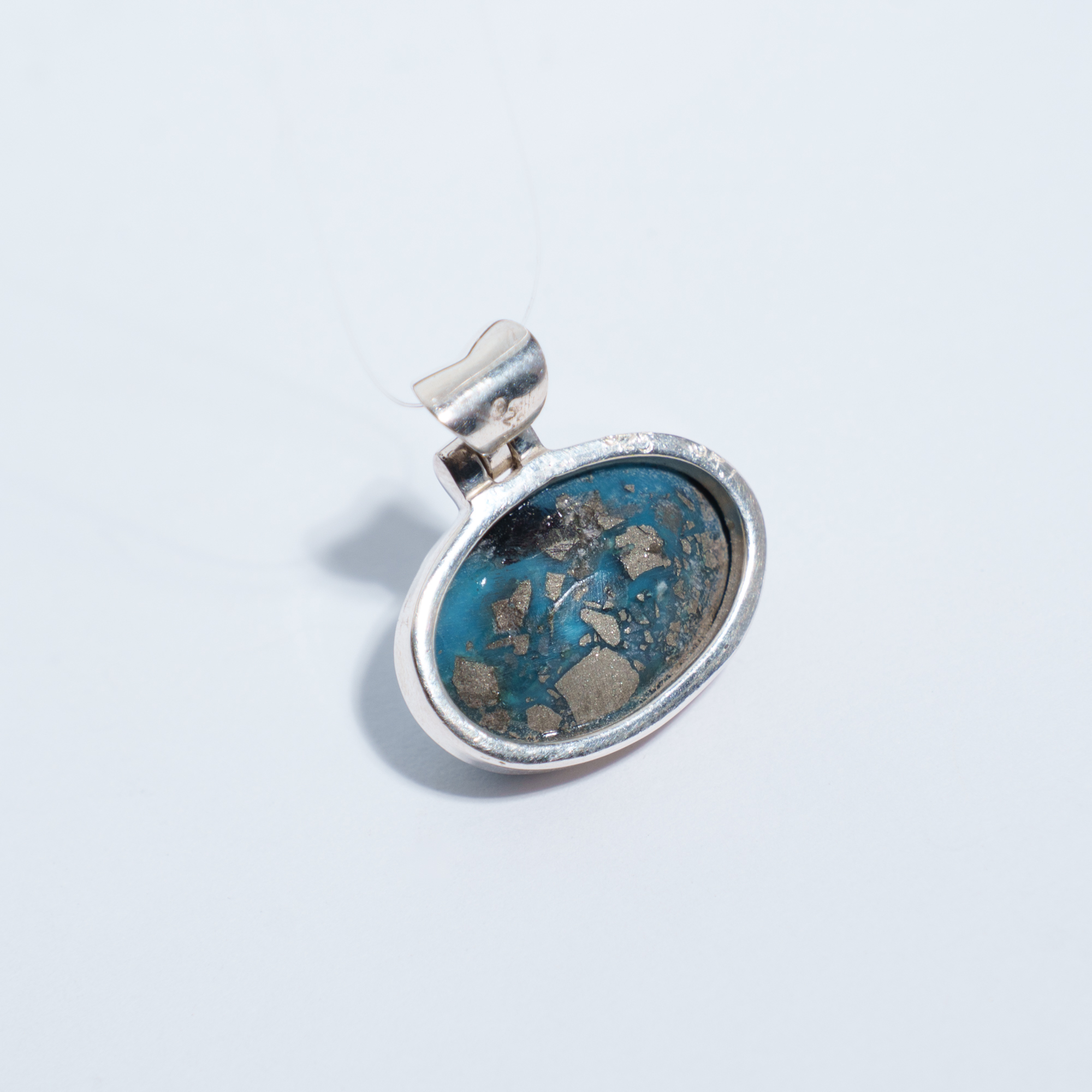 土耳其石925銀花邊鑲框墜飾