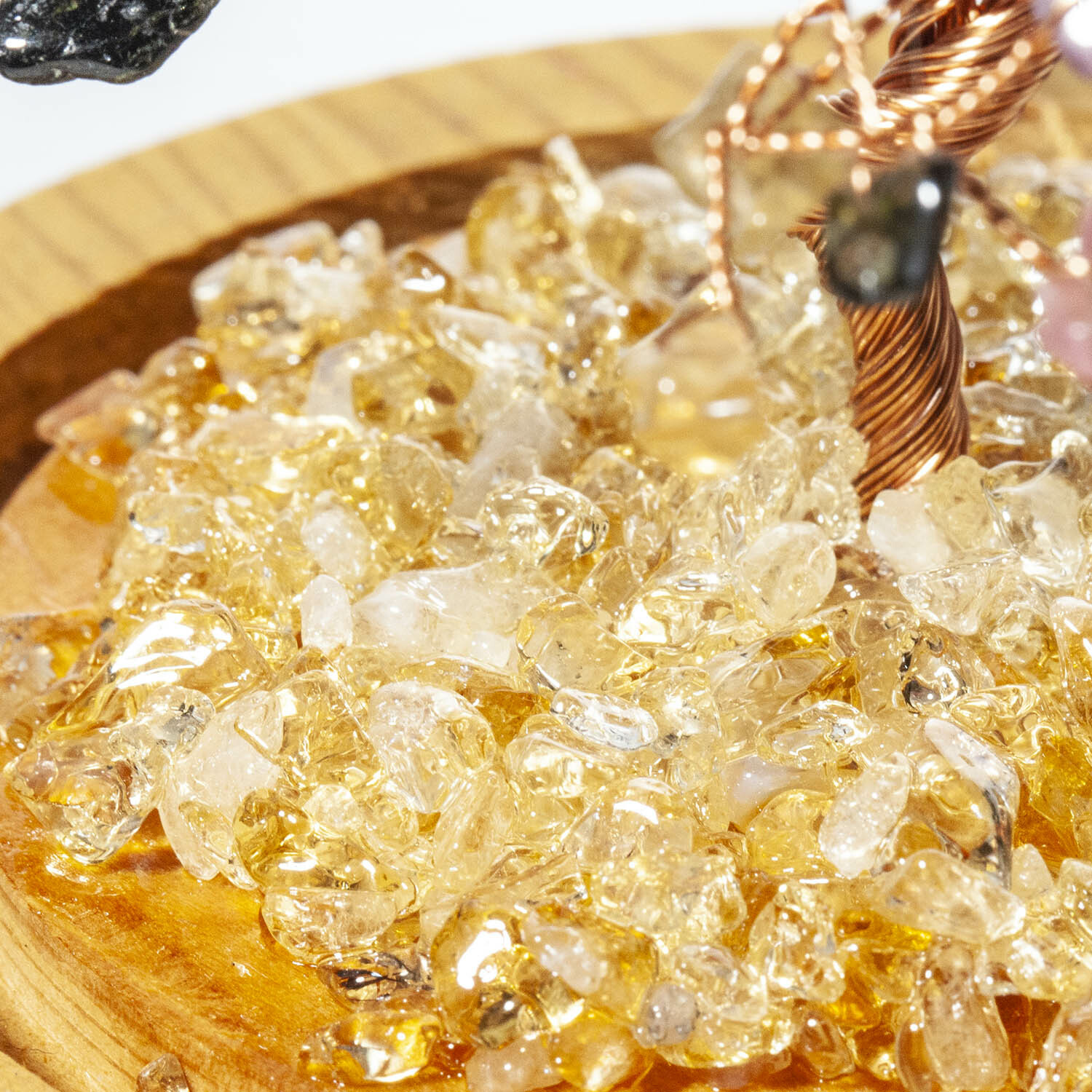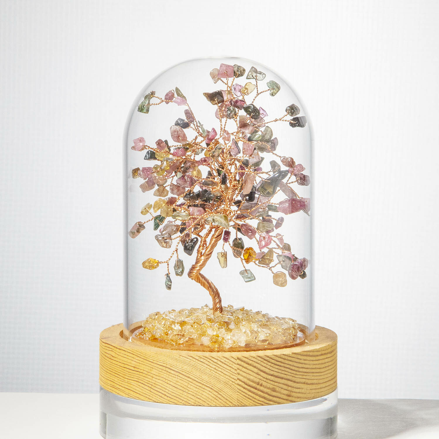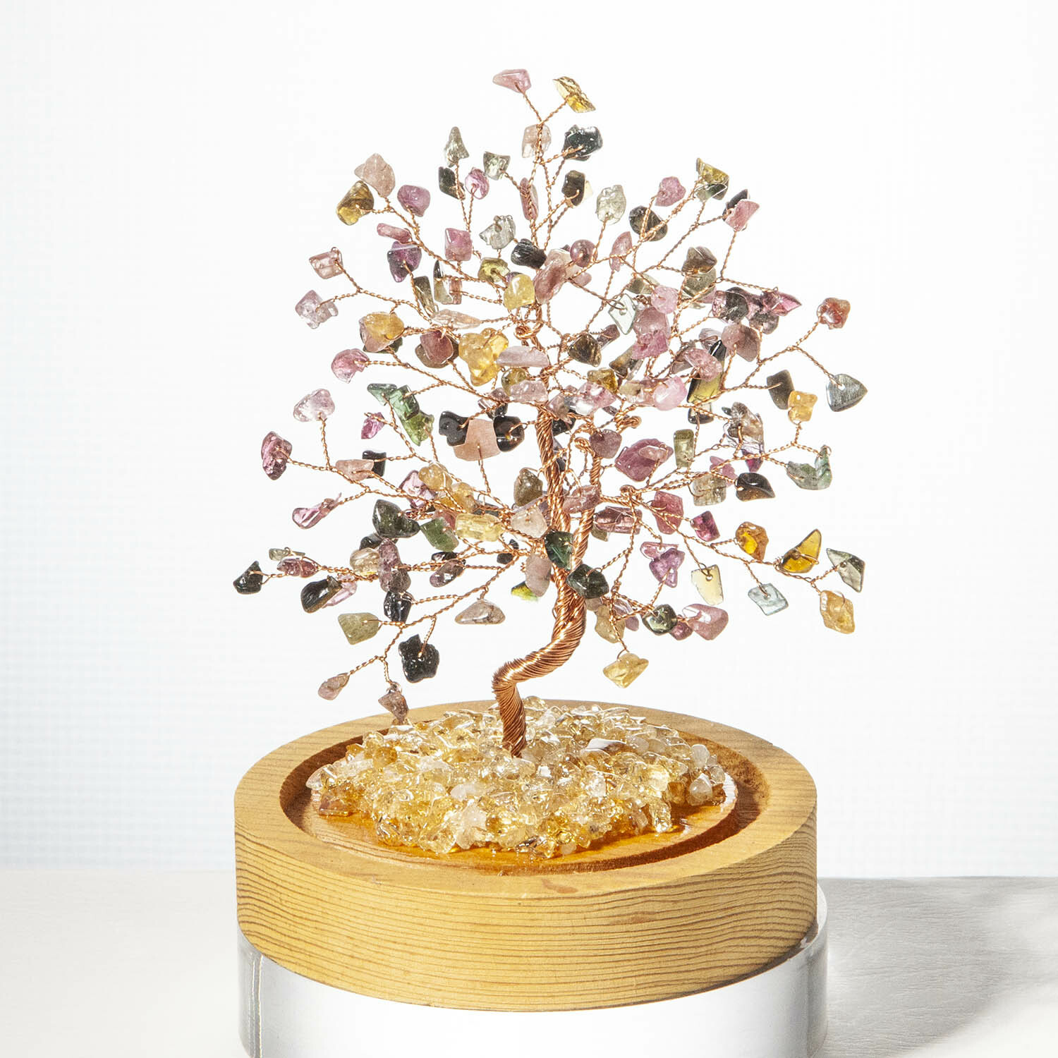 彩虹碧璽招財寶石樹,黃水晶碎石舖底