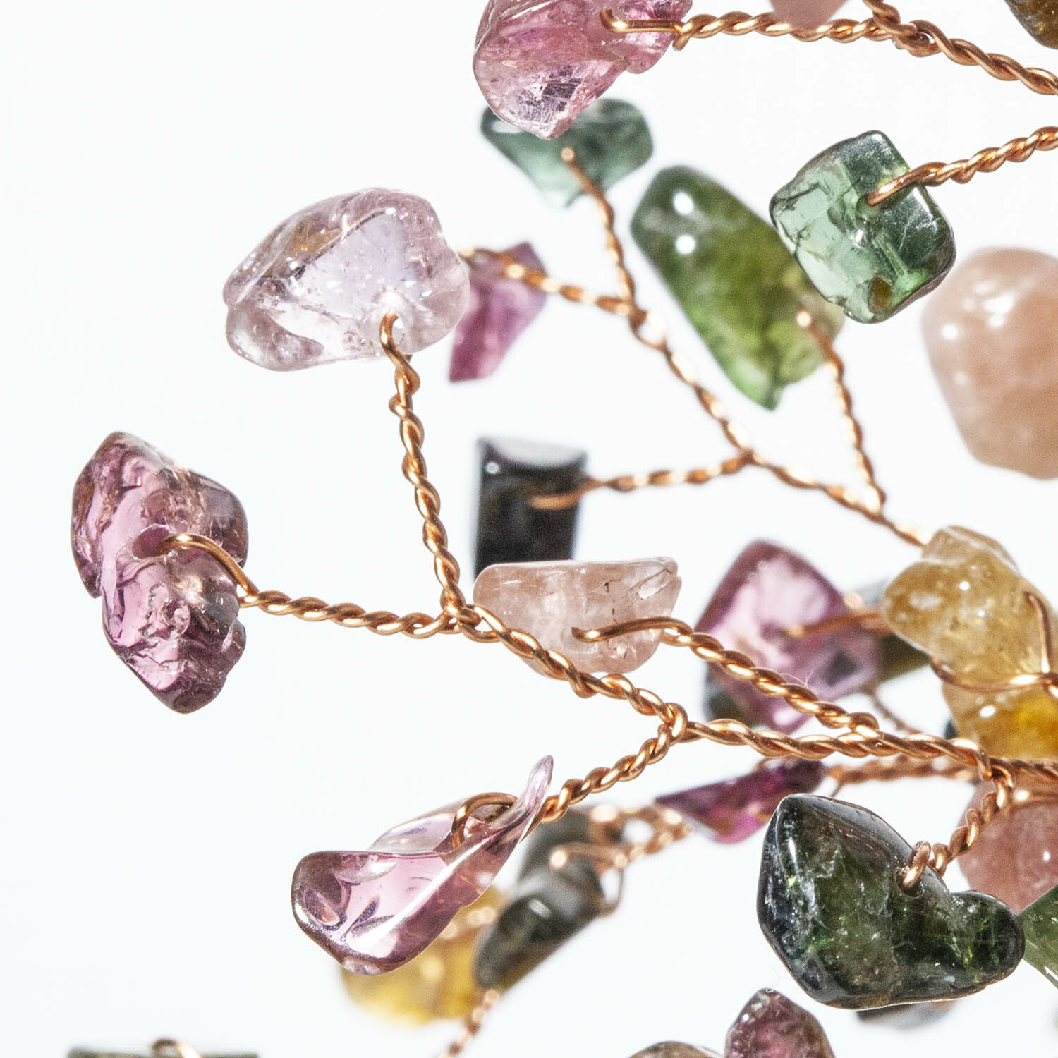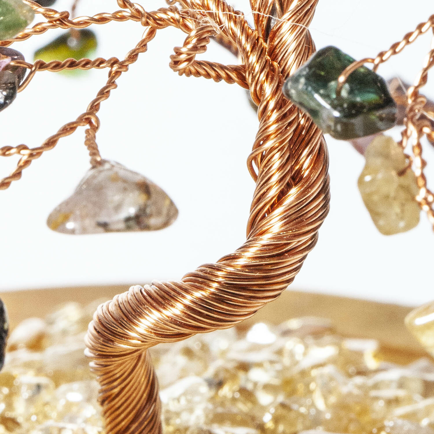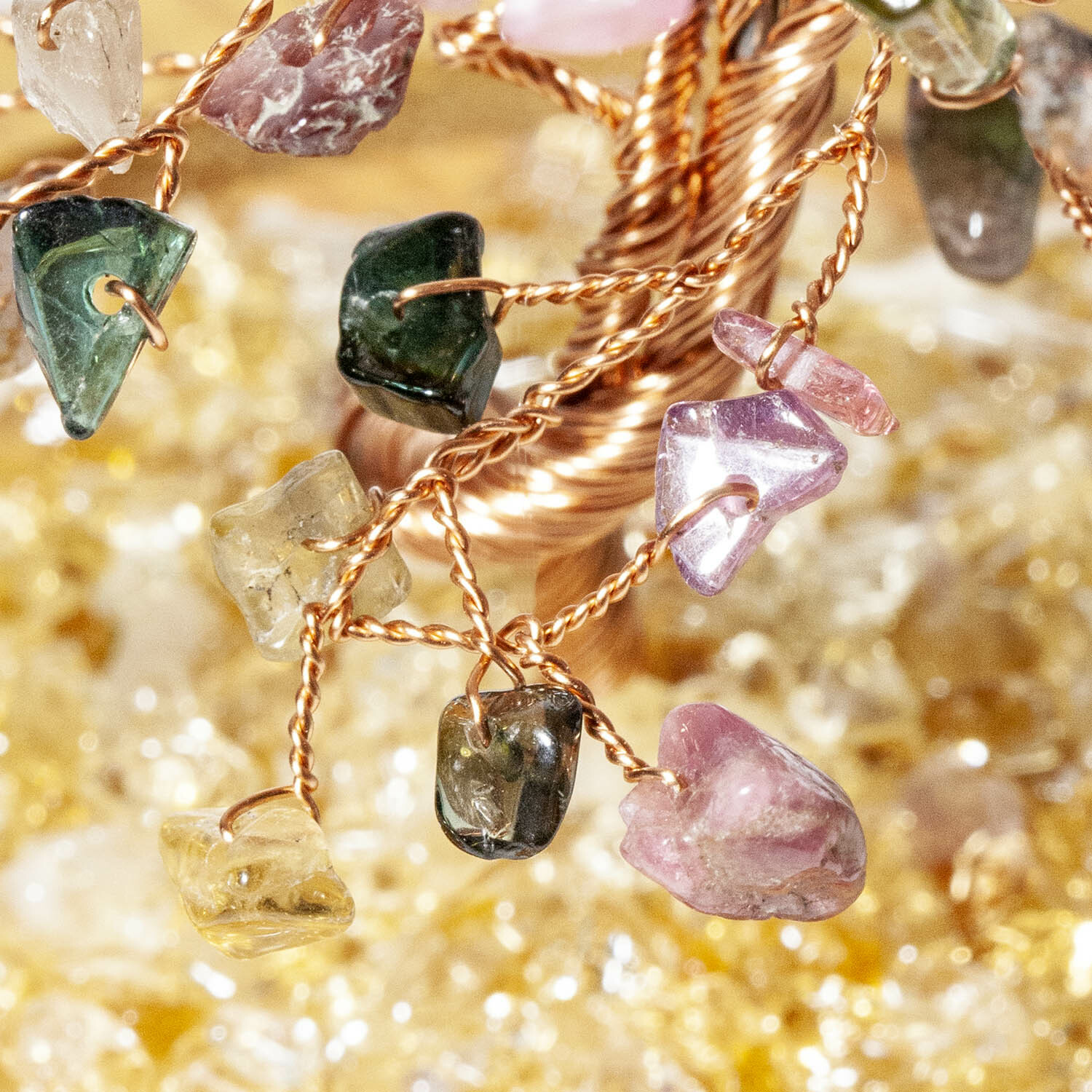 彩虹碧璽招財寶石樹,黃水晶碎石舖底