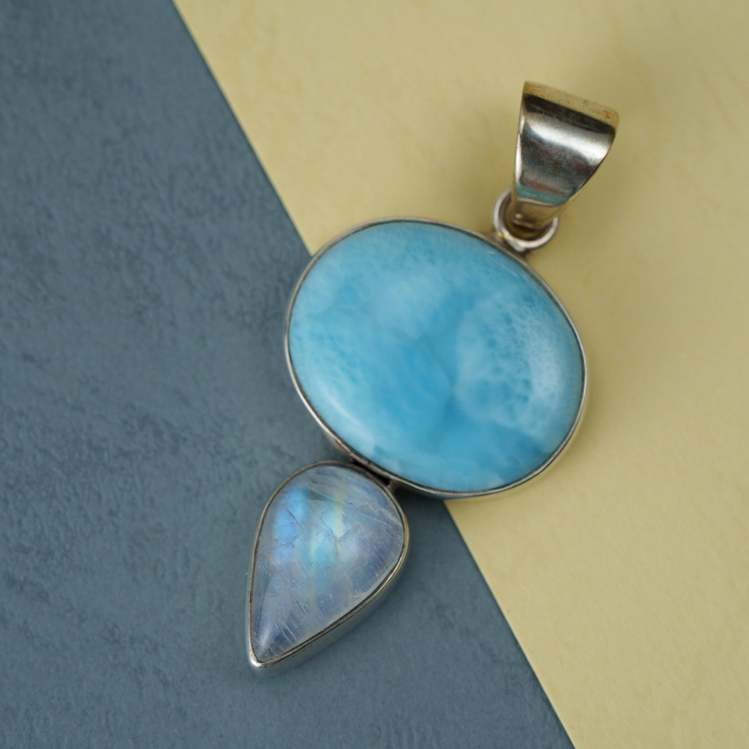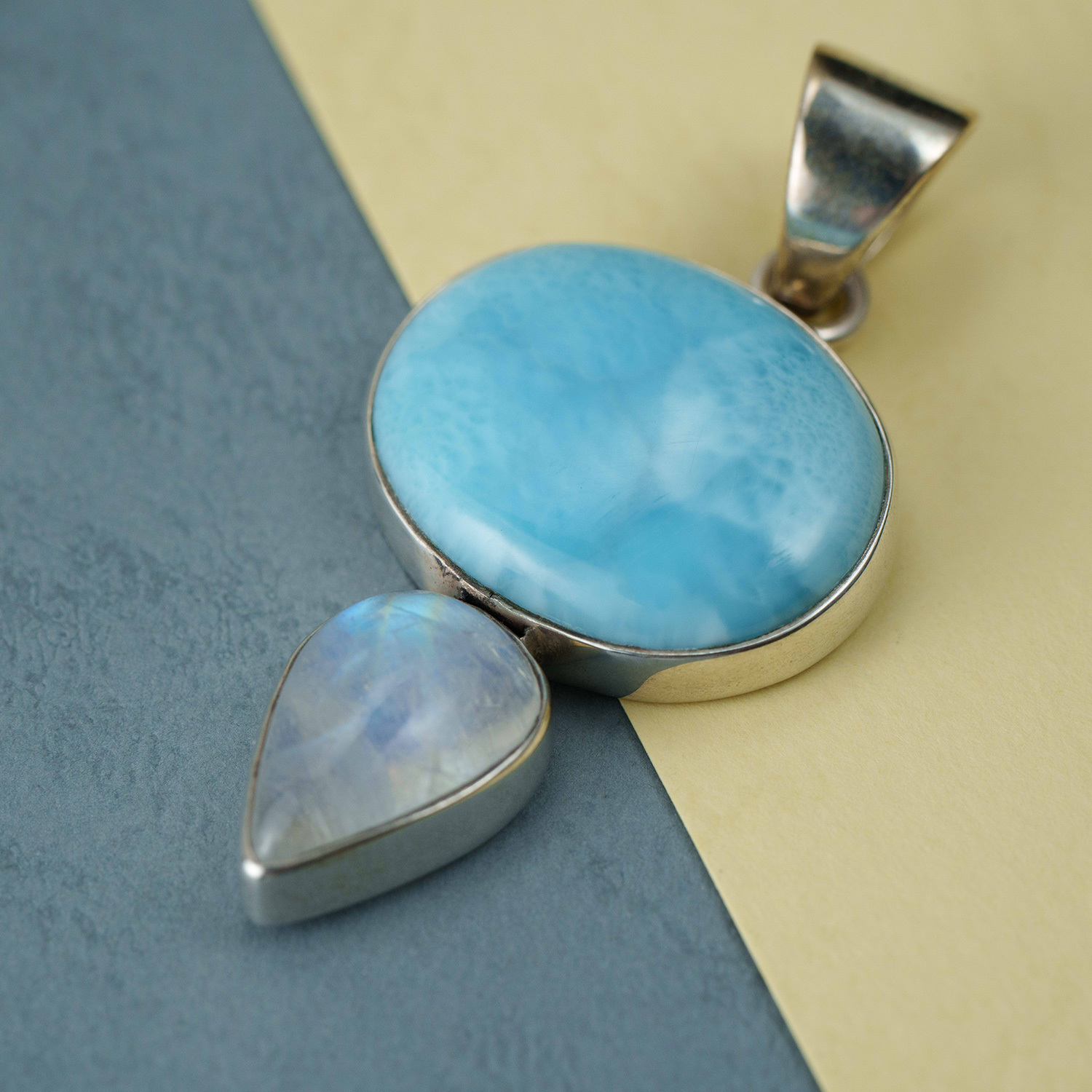 拉利瑪月光石鑲框墜飾