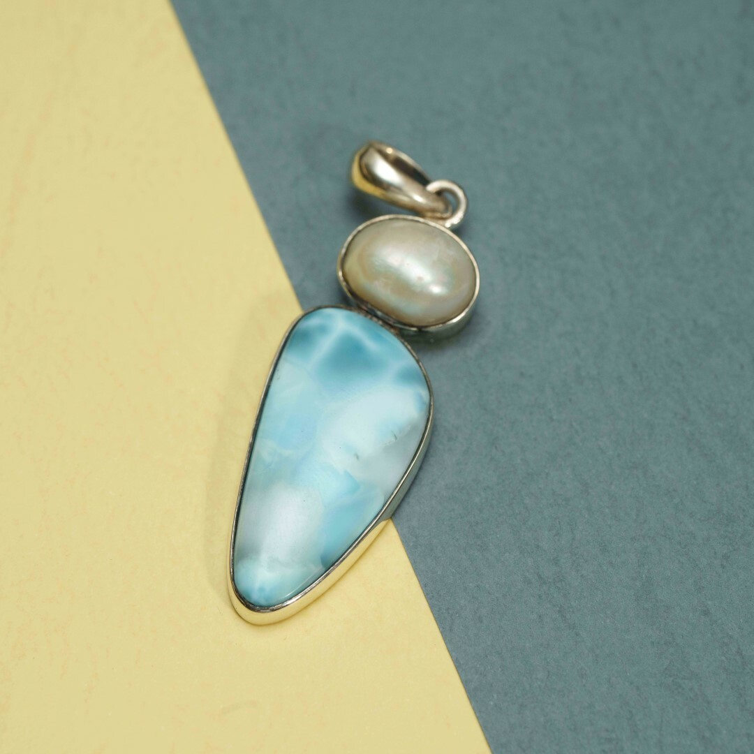 拉利瑪珍珠鑲框墜飾