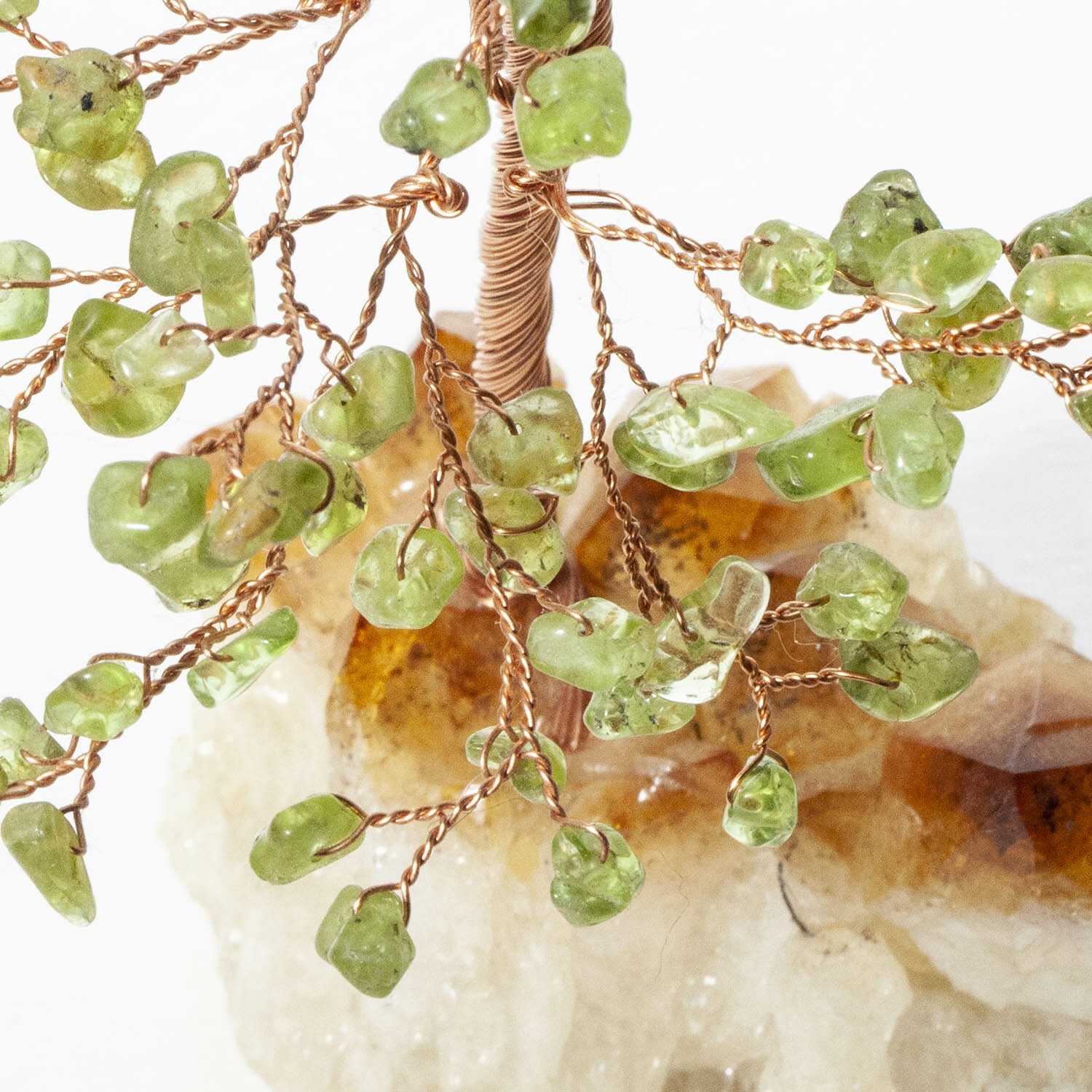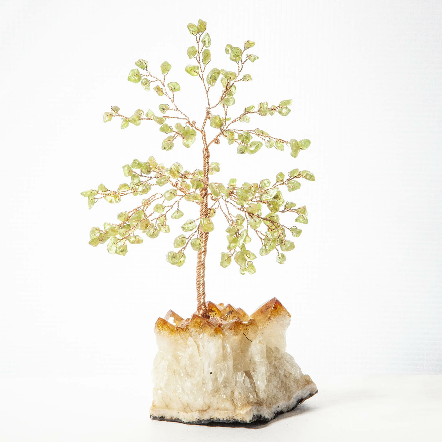 橄欖石招財寶石樹,底座黃水晶晶簇