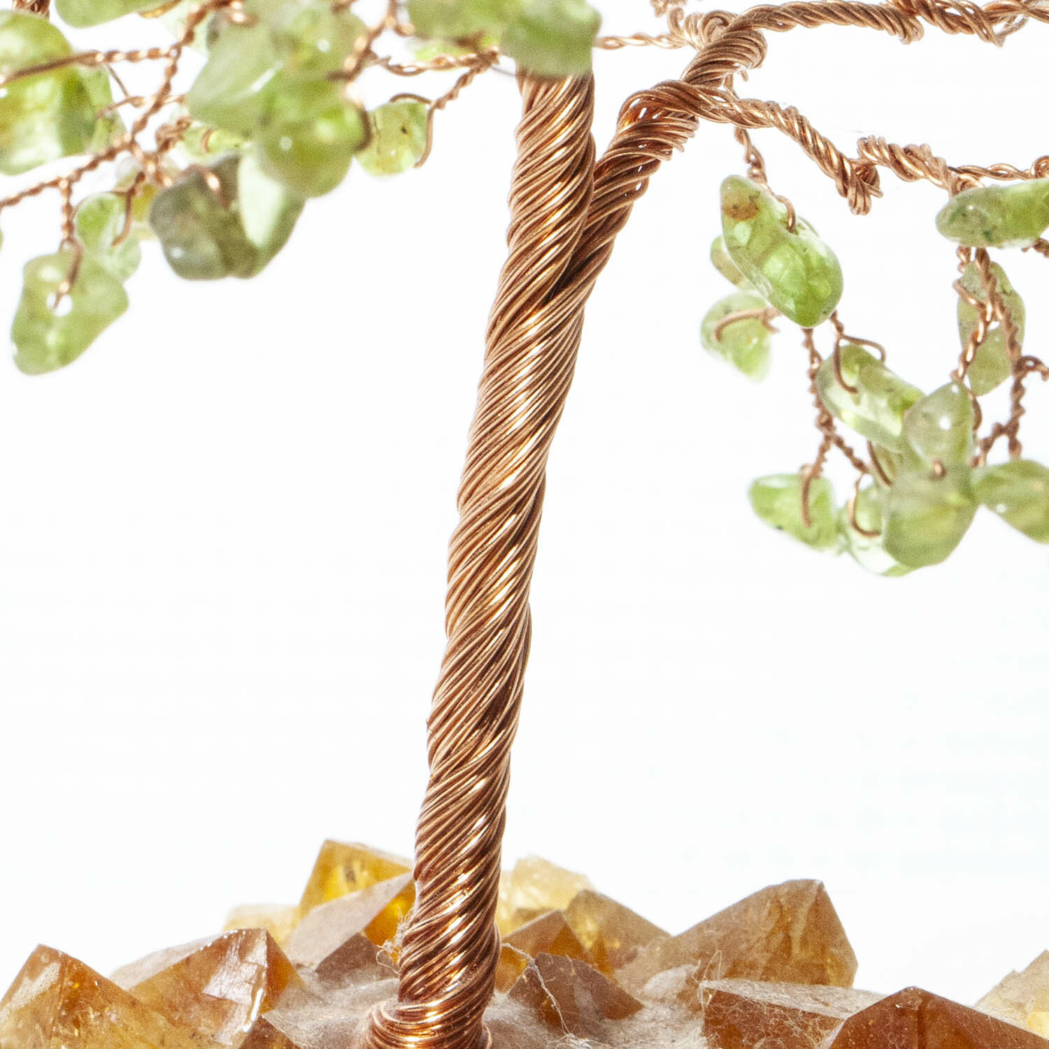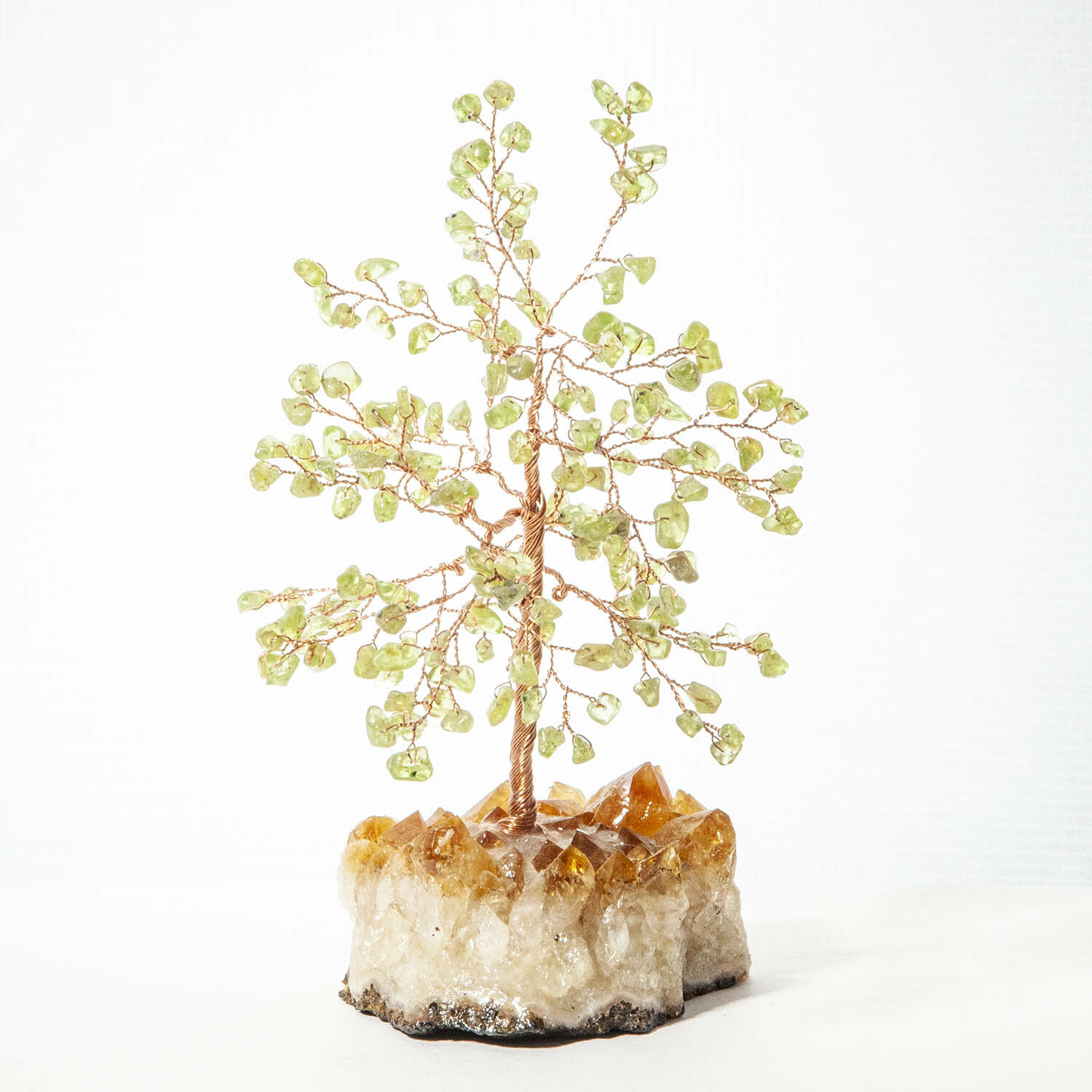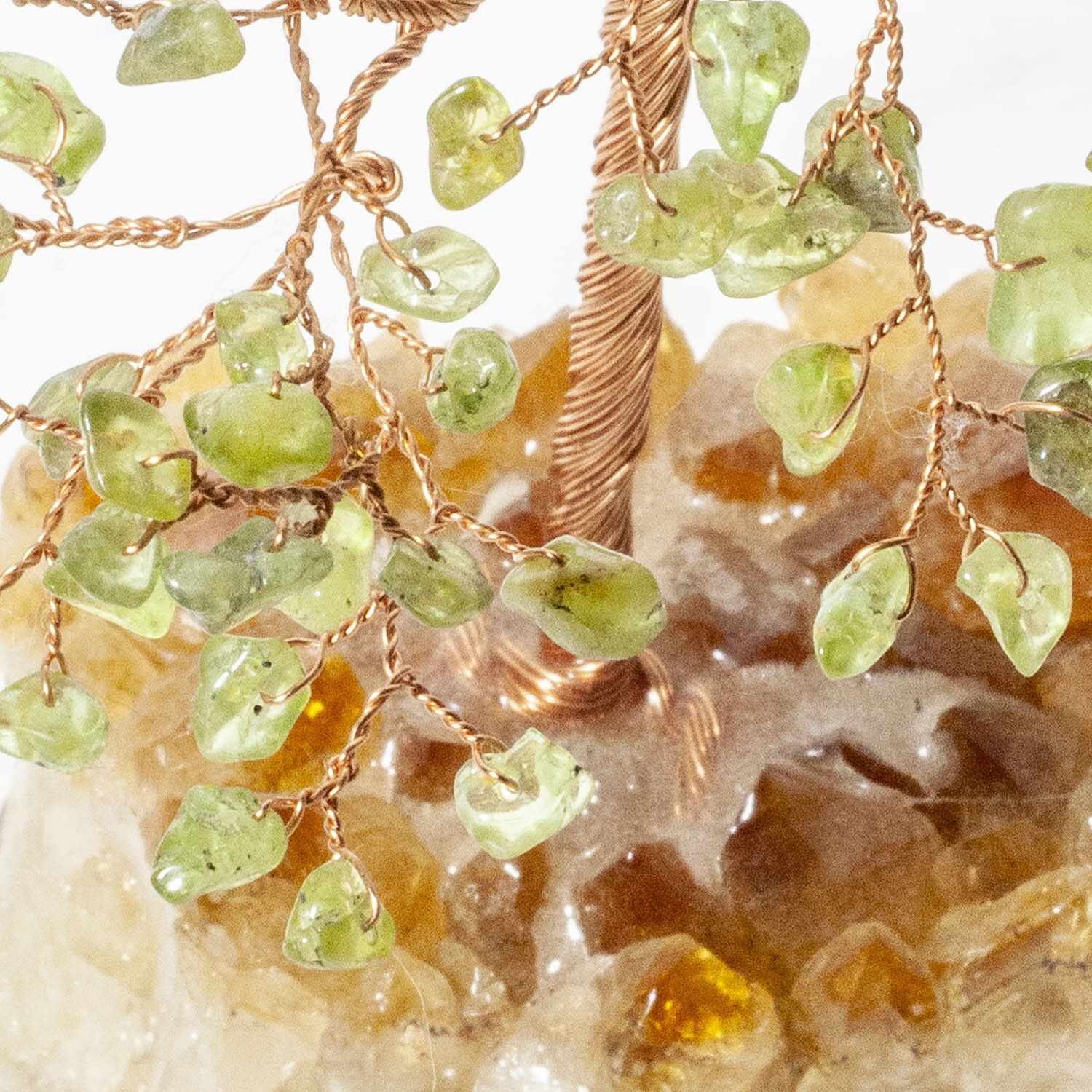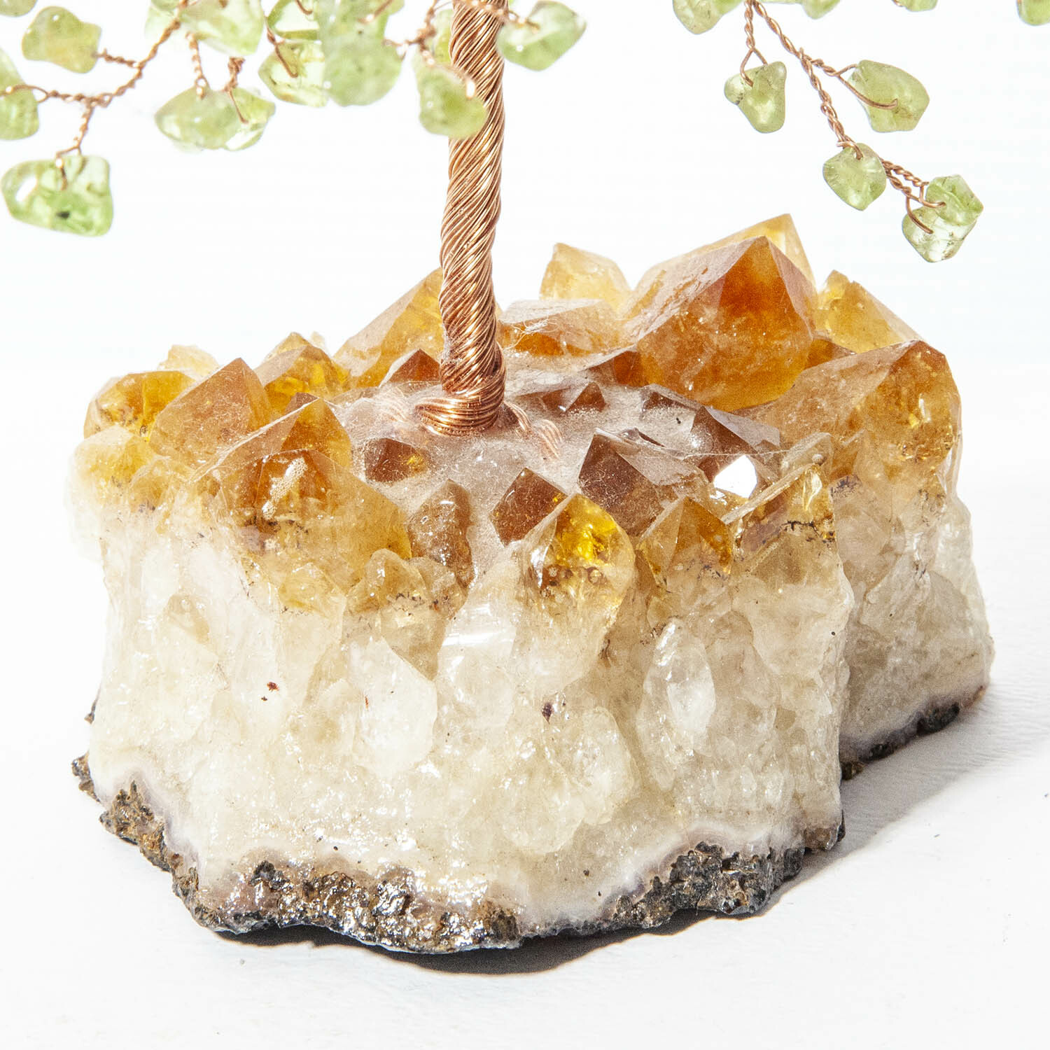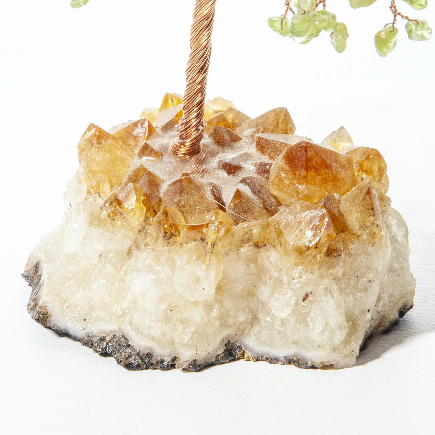 橄欖石招財寶石樹,底座黃水晶晶簇