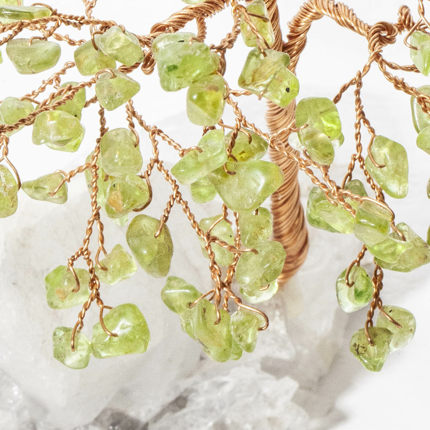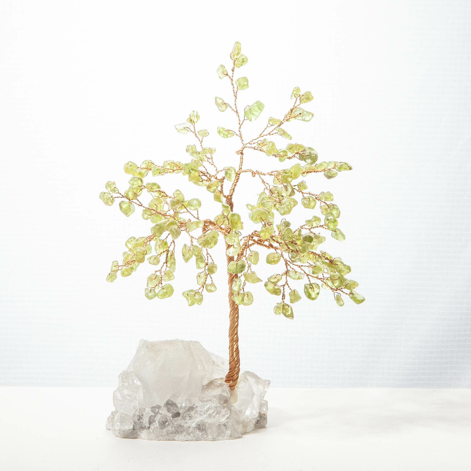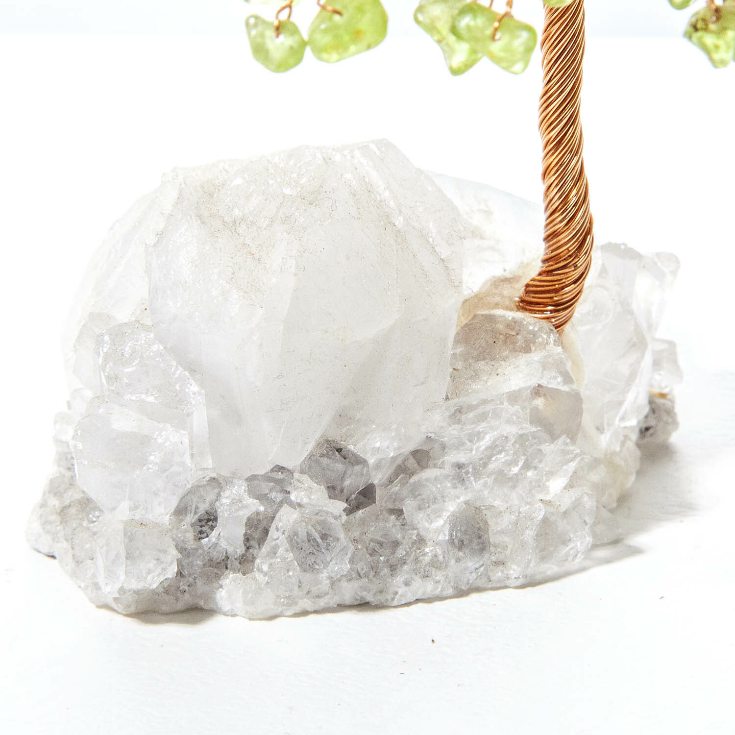 橄欖石招財寶石樹,底座白水晶原礦