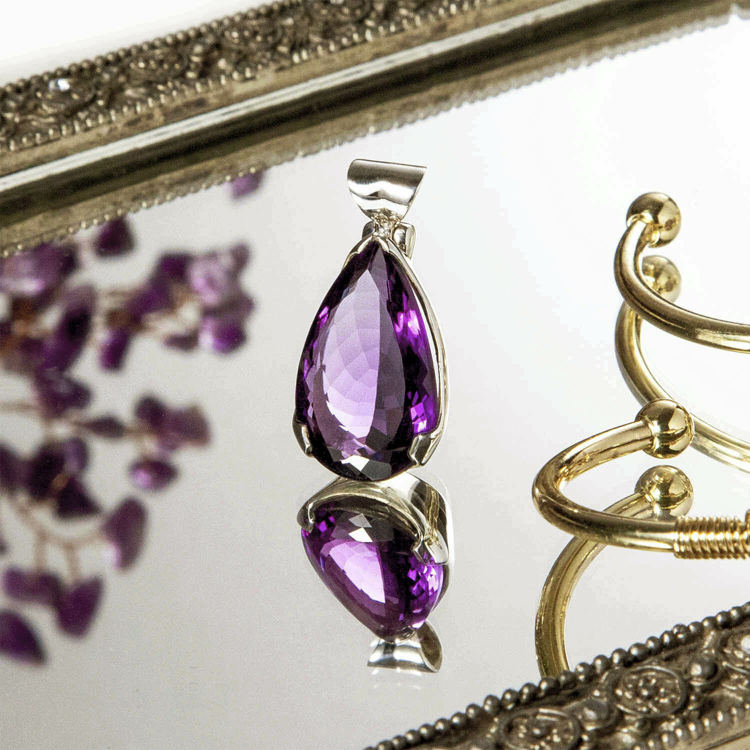 天然紫水晶切割面鑲嵌墜飾