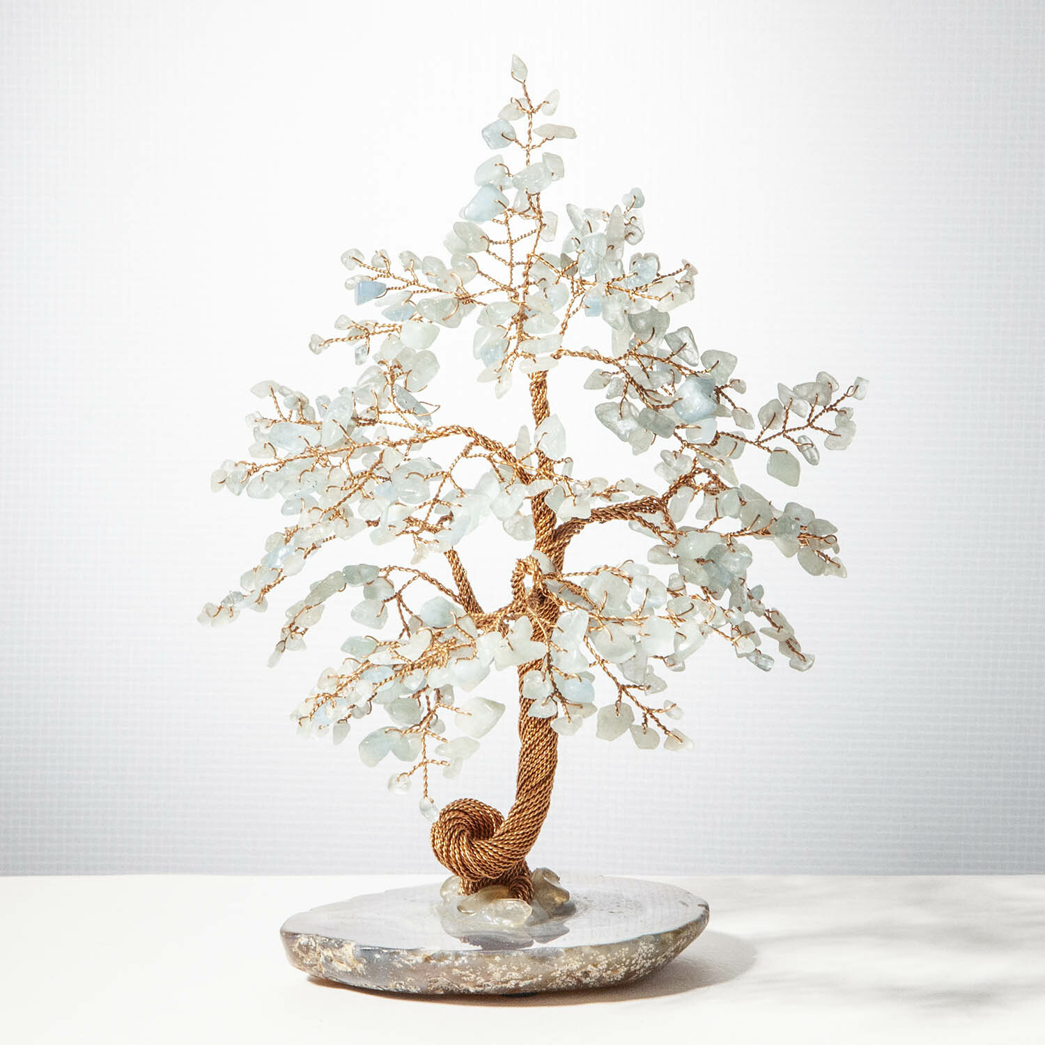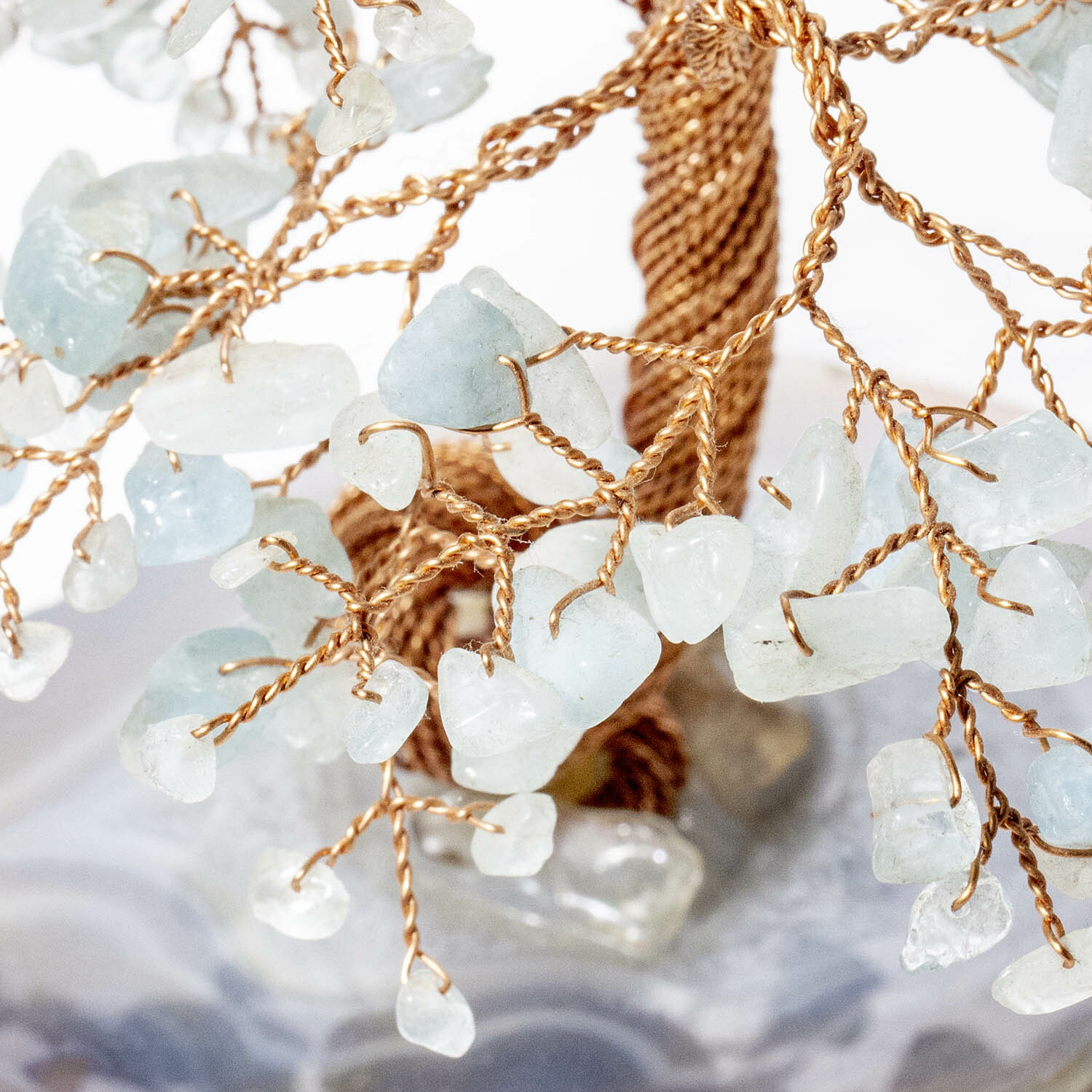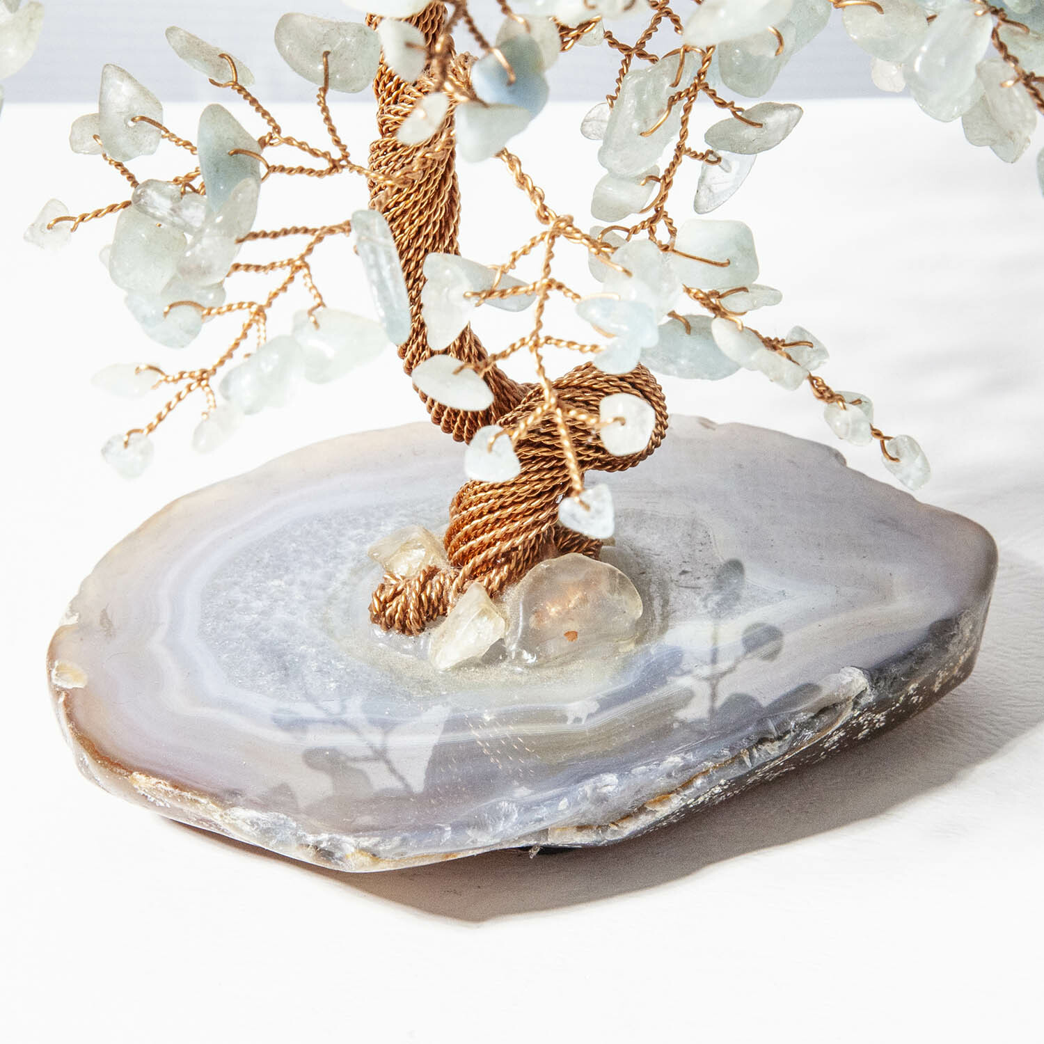 海水藍寶招財寶石樹,底座瑪瑙切片
