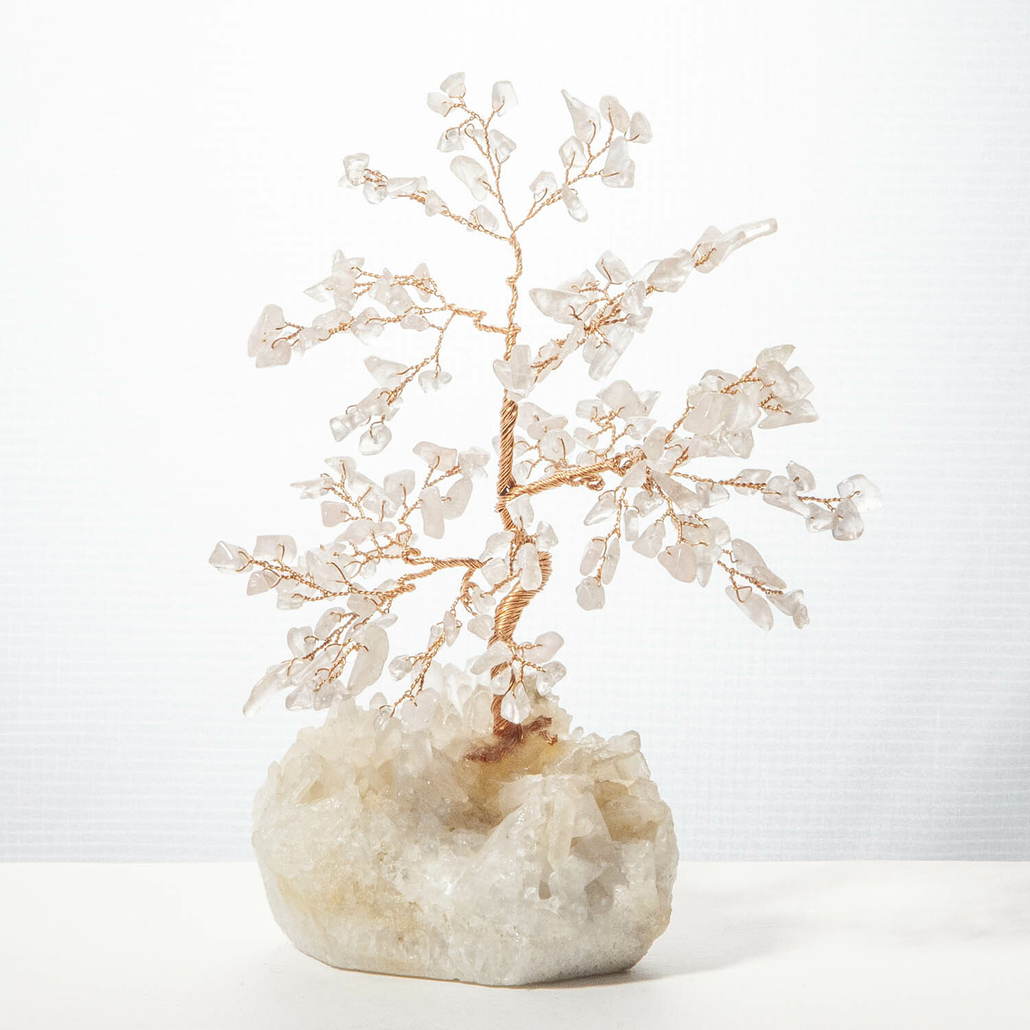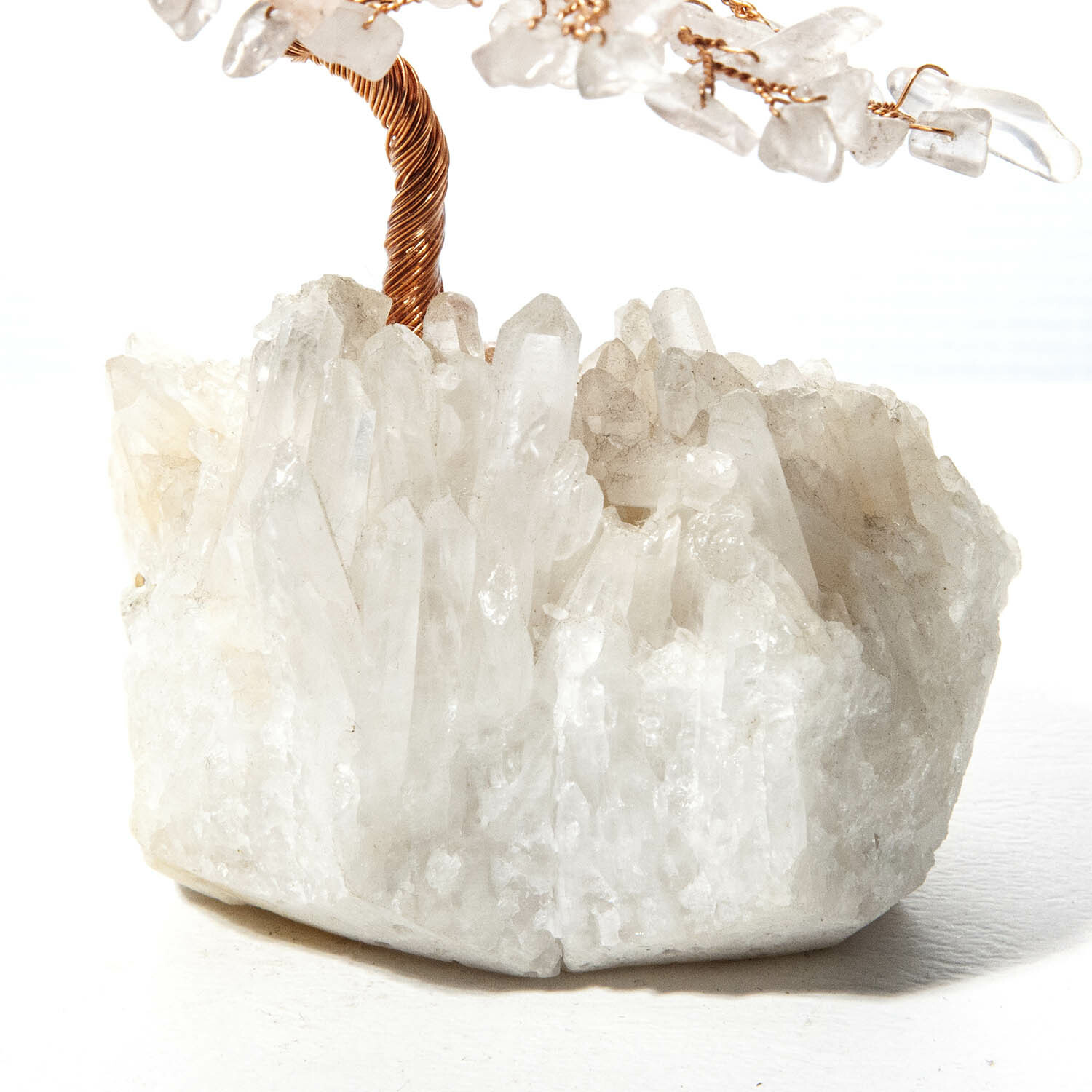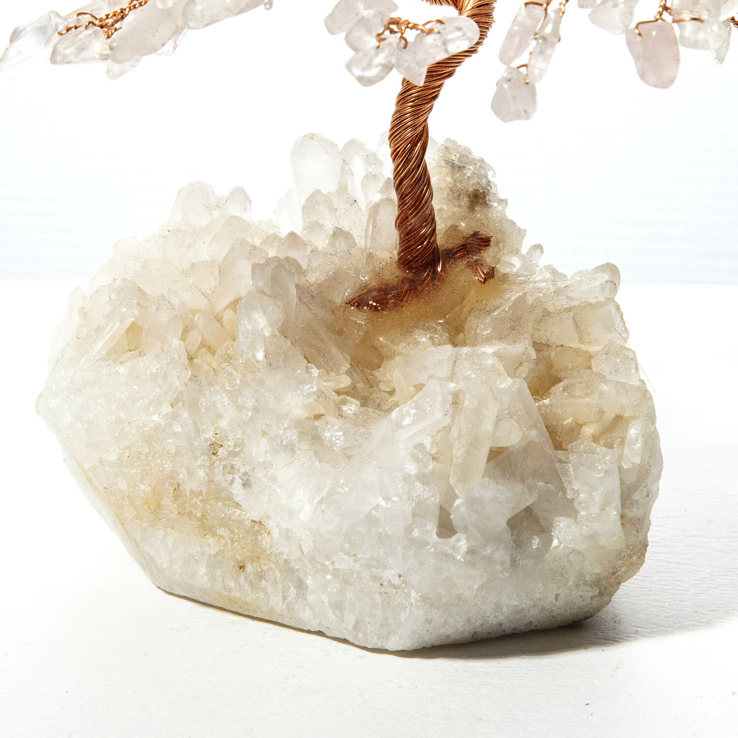 粉晶招財寶石樹,底座白水晶原礦鑲嵌