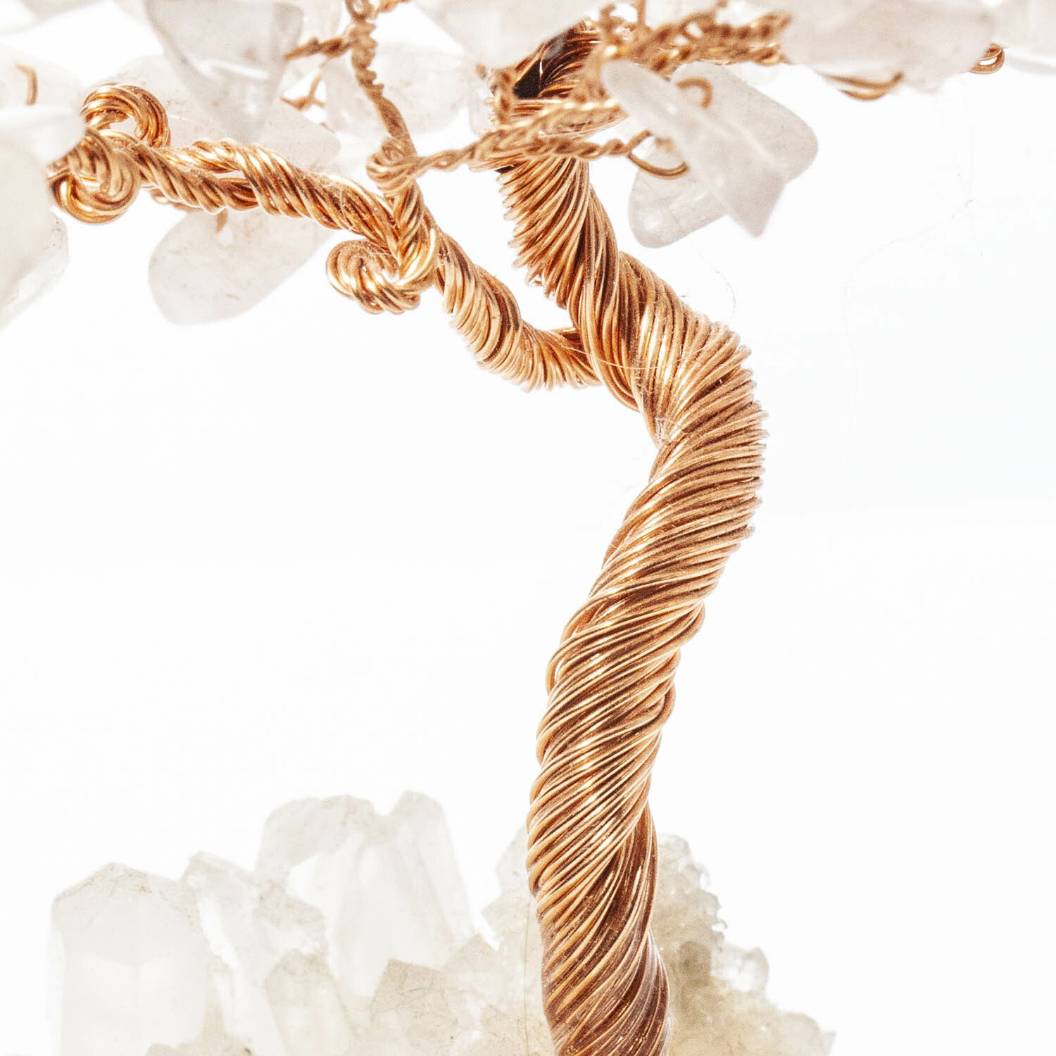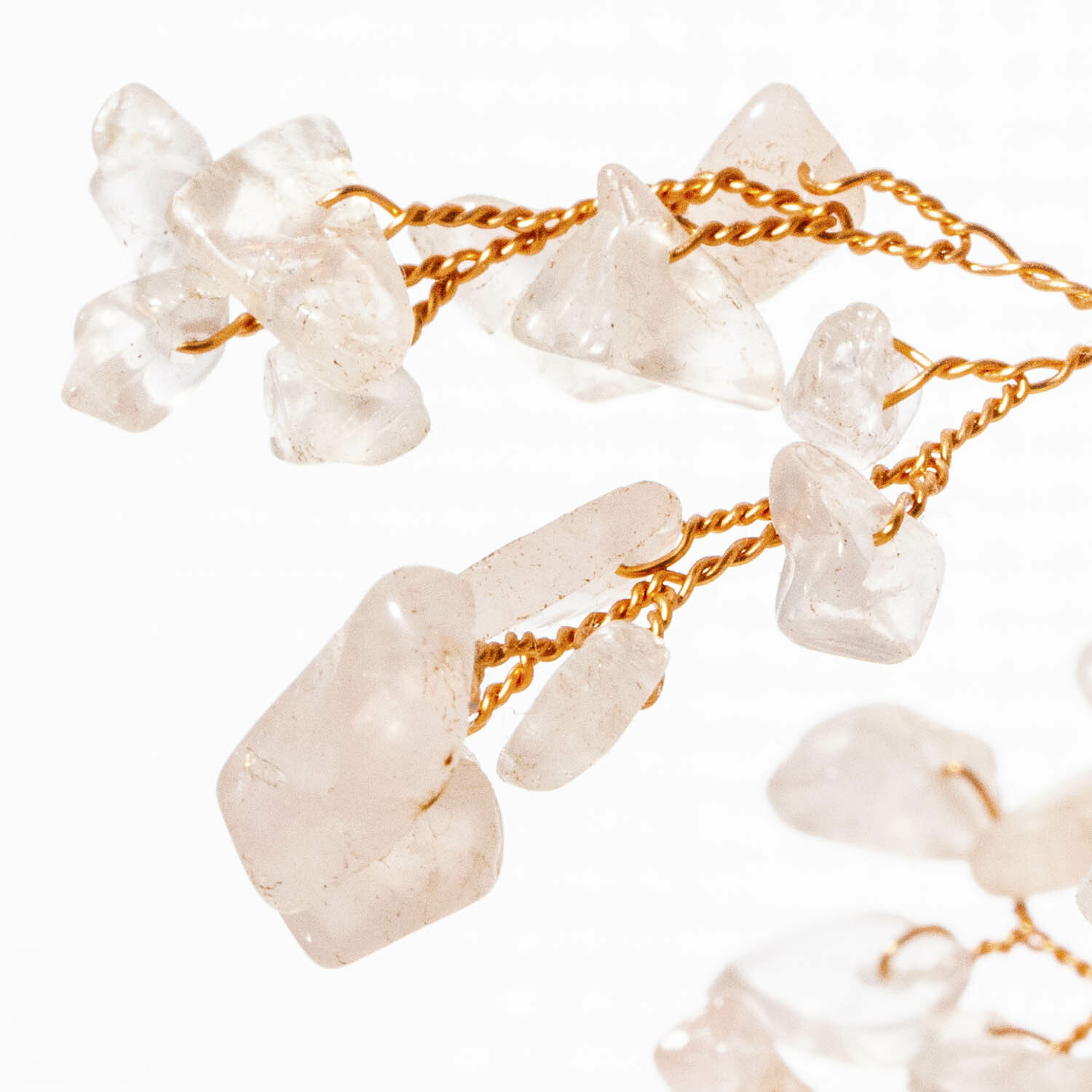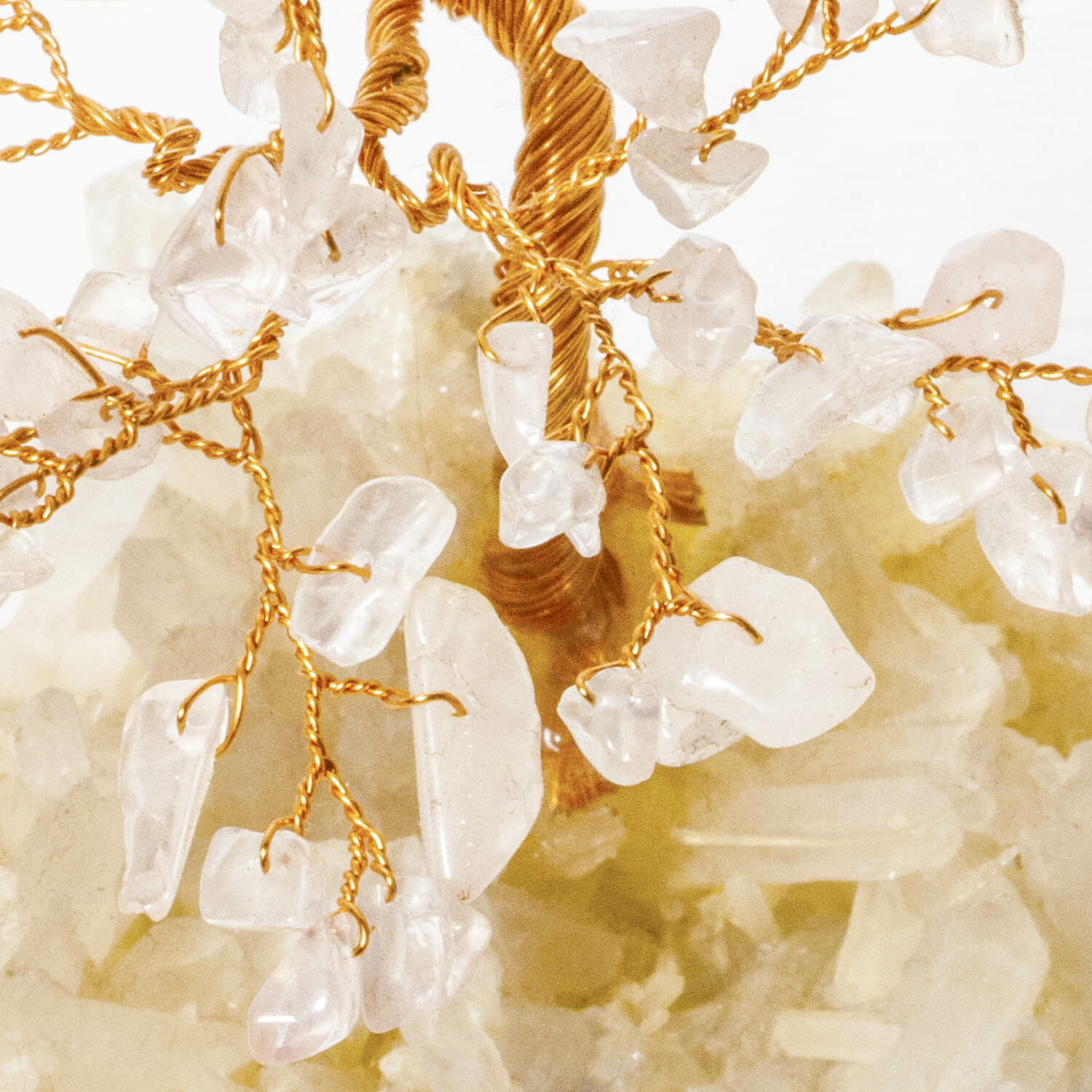 粉晶招財寶石樹,底座白水晶原礦鑲嵌