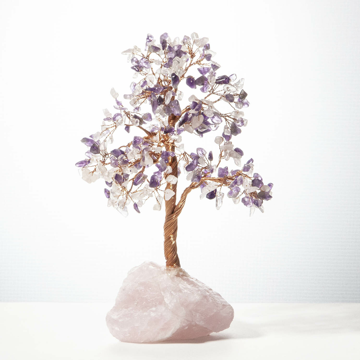 紫水晶&粉晶招財寶石樹,底座粉晶原礦
