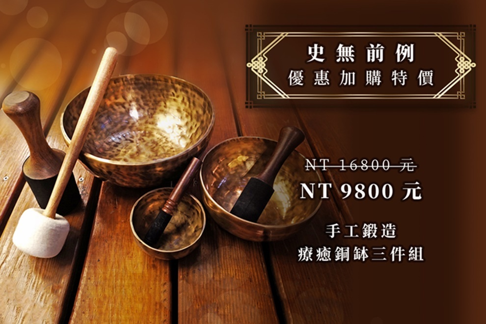 超特價加購療癒頌缽組 | NT 9800 元(大中小三件手工缽組,門市原價逾2萬,每位學員限購一組)