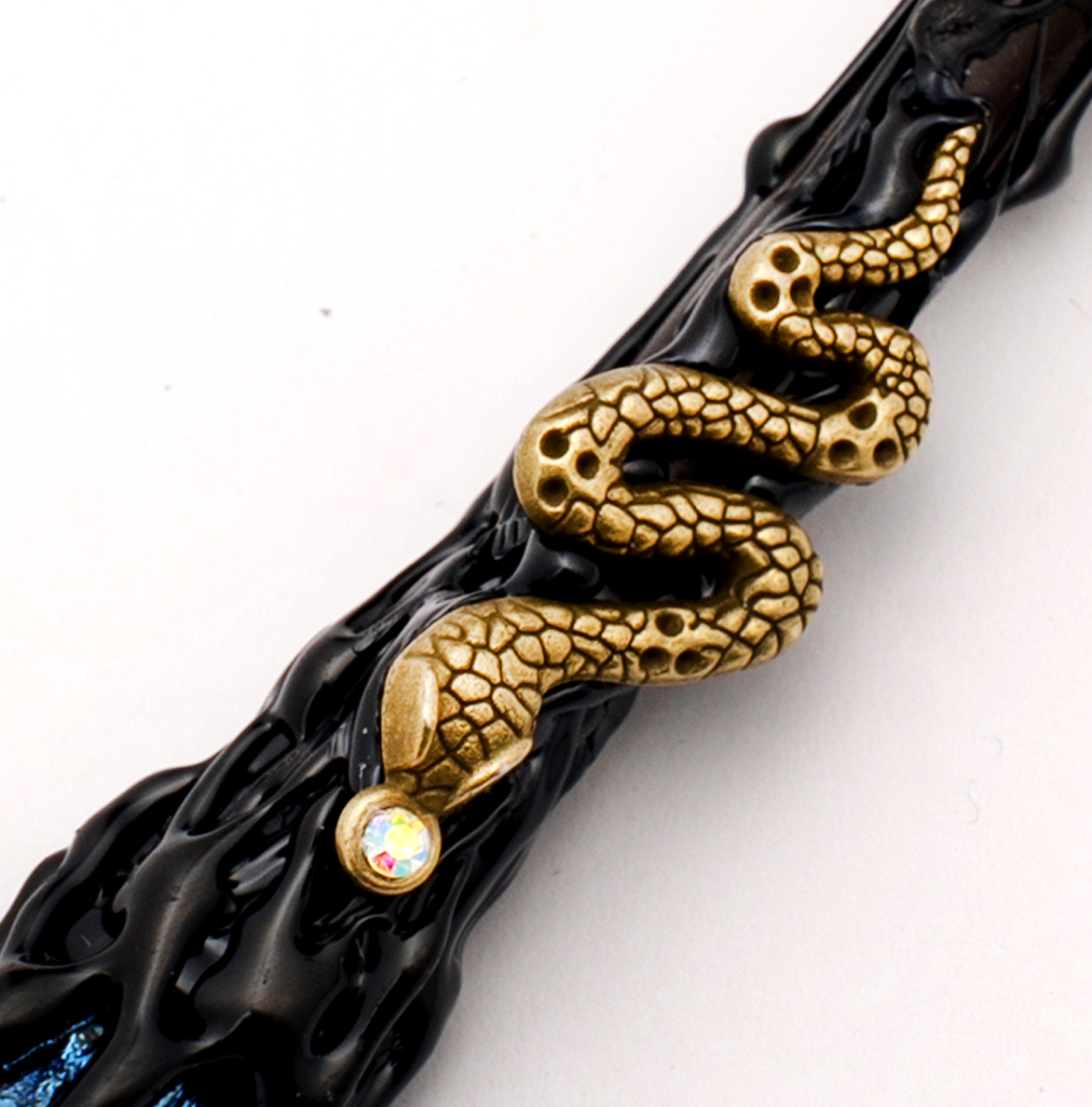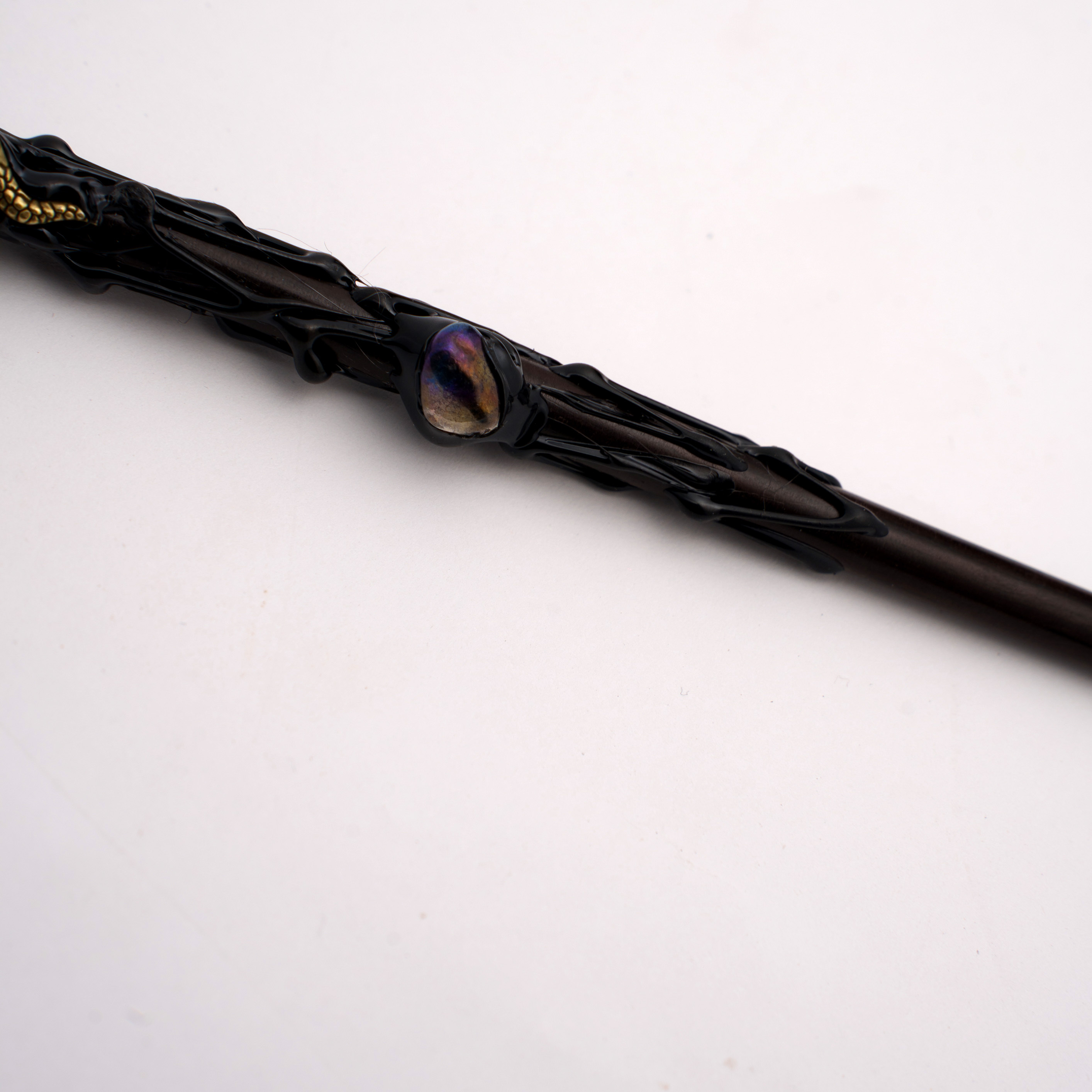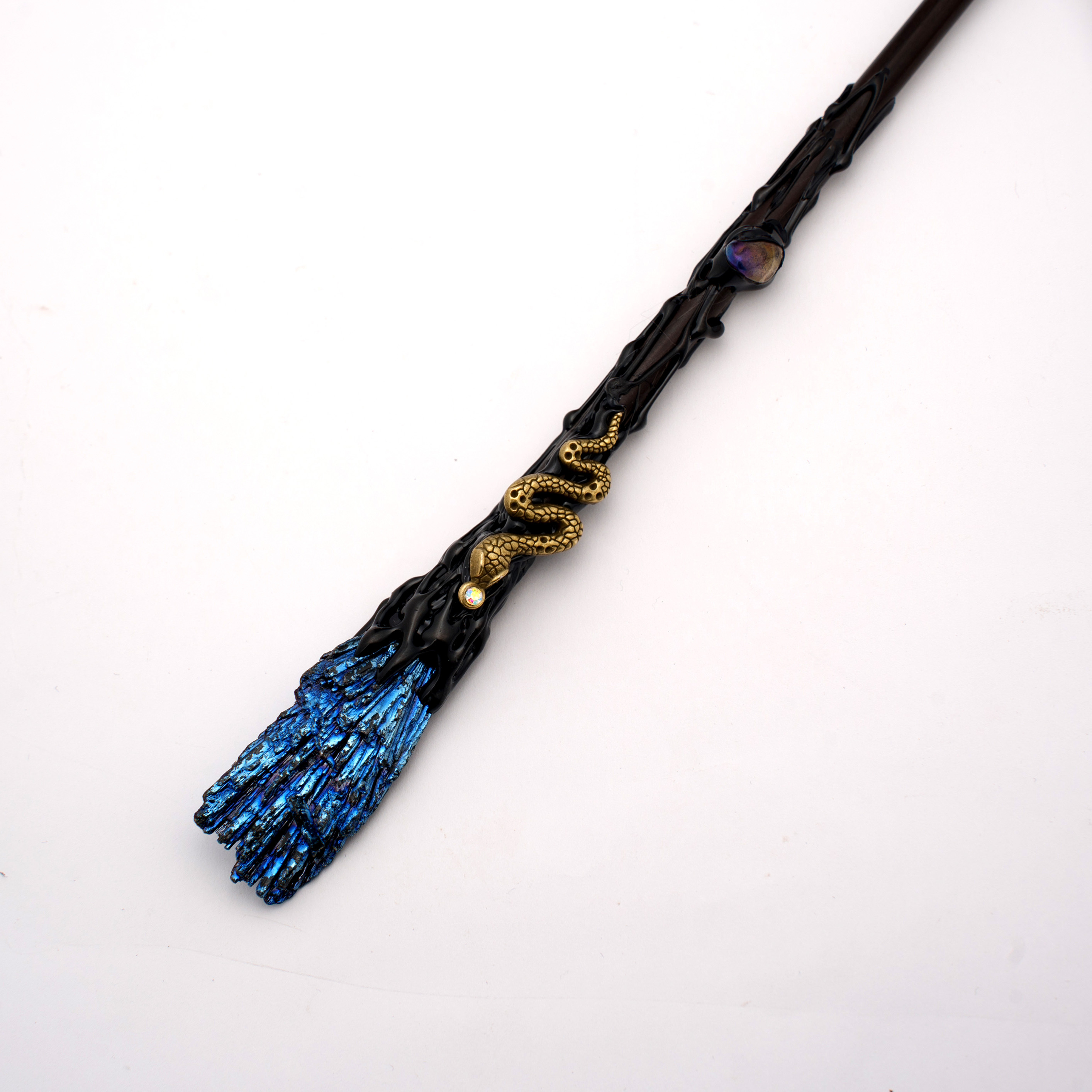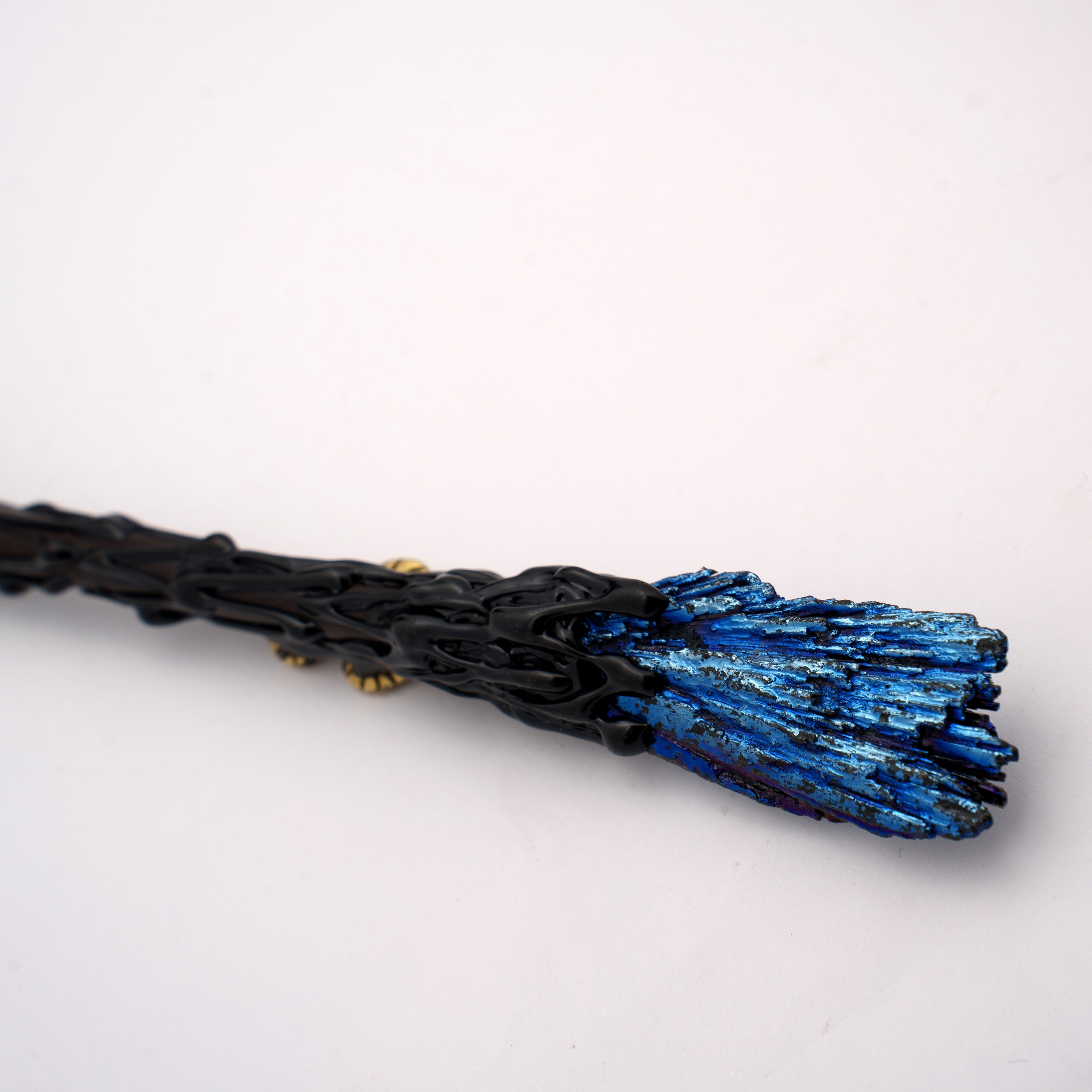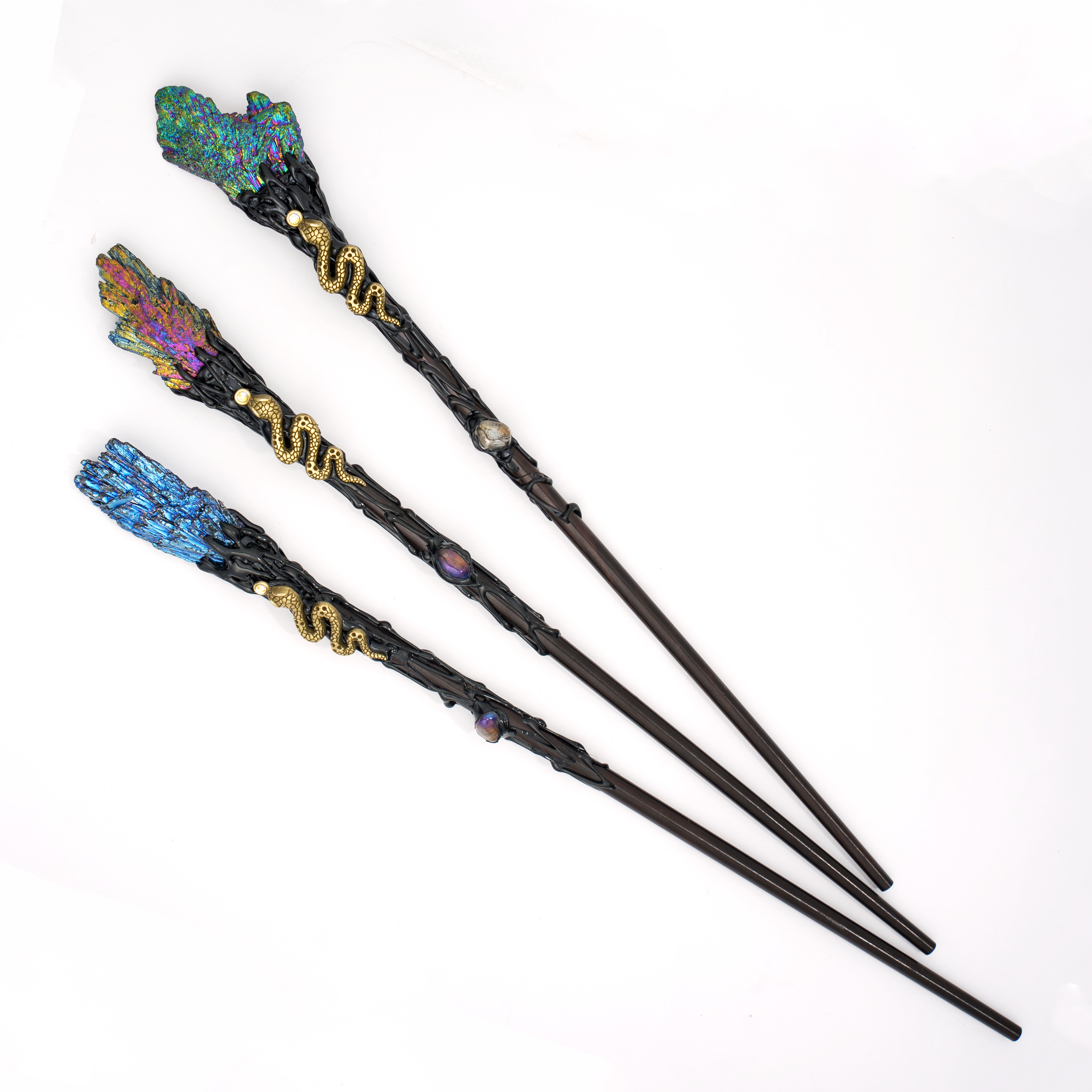 羽毛碧璽鍍虹彩、鑲嵌水晶礦石、黑檀木棒