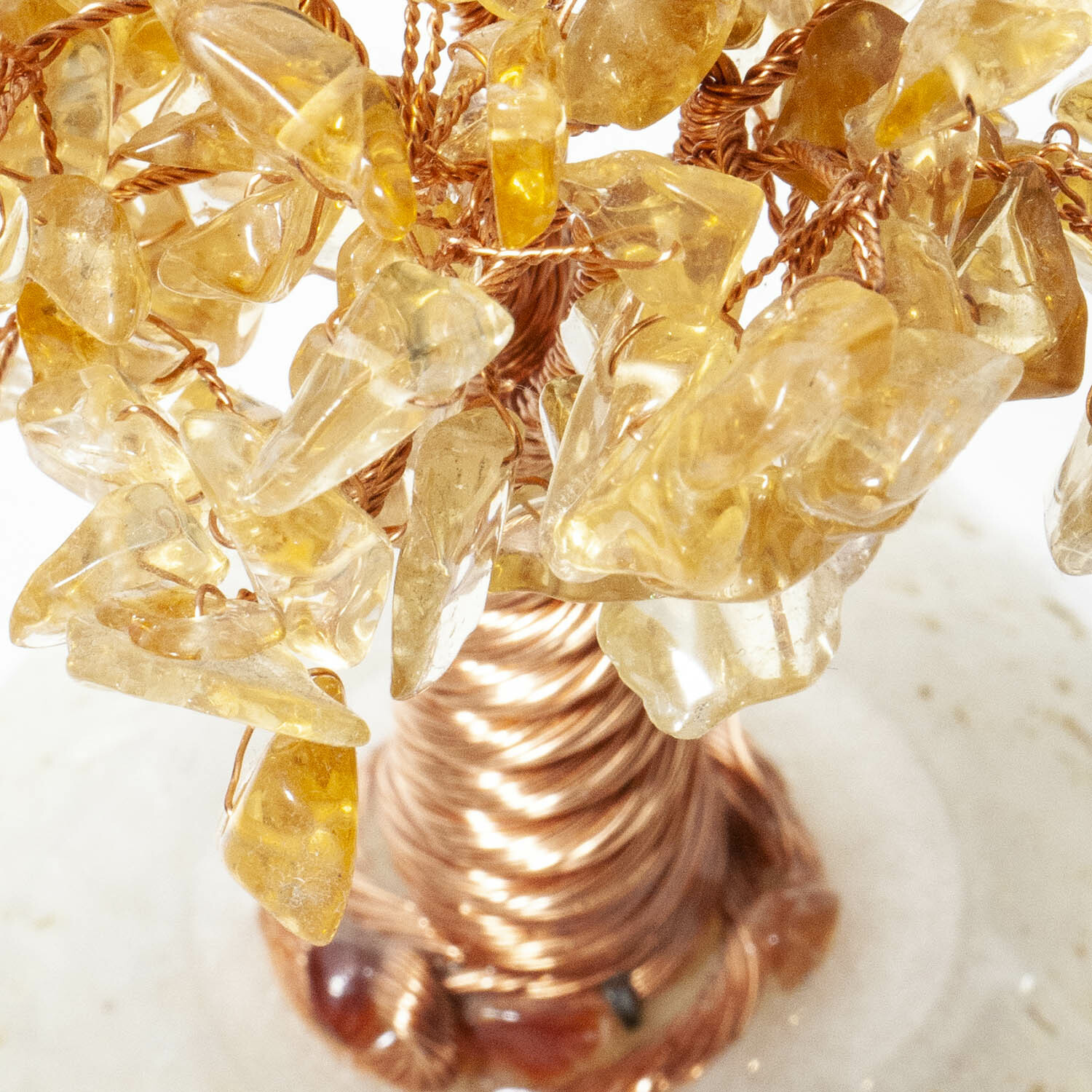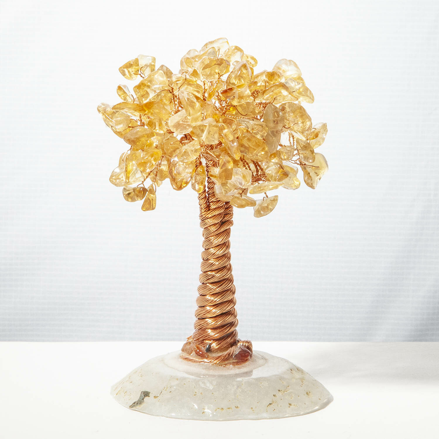 黃水晶招財寶石樹,底座瑪瑙切片鑲嵌